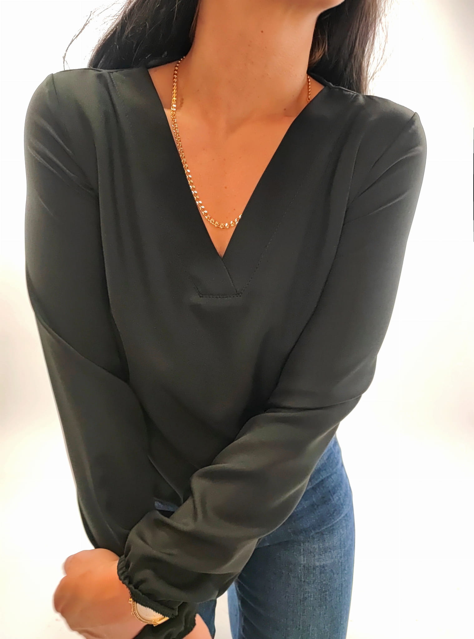 Bluzka/koszula na długi rękaw to idealna propozycja dla kobiet, które cenią sobie wyjątkowy wygląd i elegancję. Model z dekoltem w serek, pasuję do eleganckich kreacji jak i jeansowych . Dzianina delikatnie uciągliwa, miła w dotyku . Dostępna w dużych rozmiarach.Dostępna w dwóch wariantach kolorystycznych