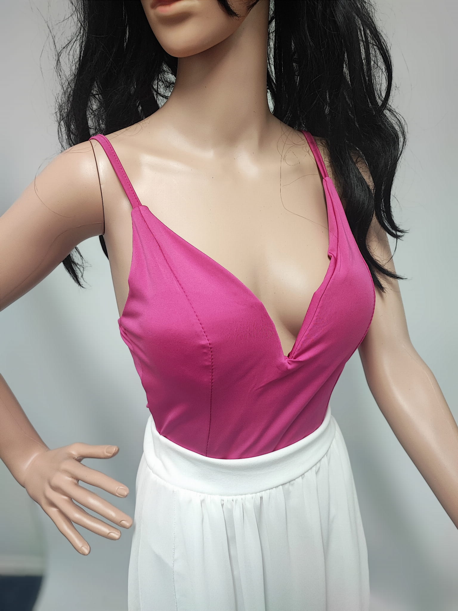 Dopasowany krój , materiał elastyczny, z tyłu wszyta gumeczka co sprawia, że body dopasowują się i przylegają do ciała.