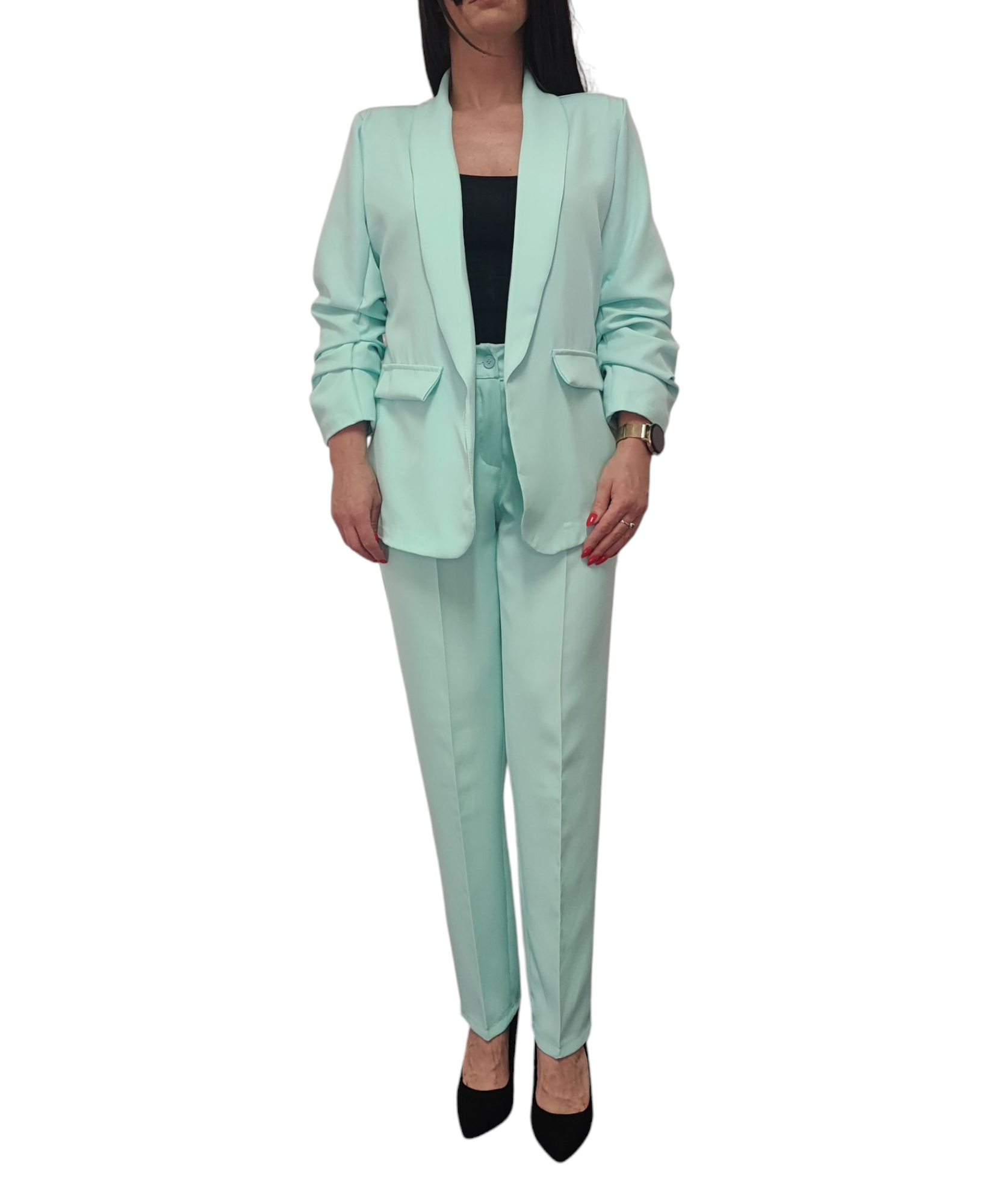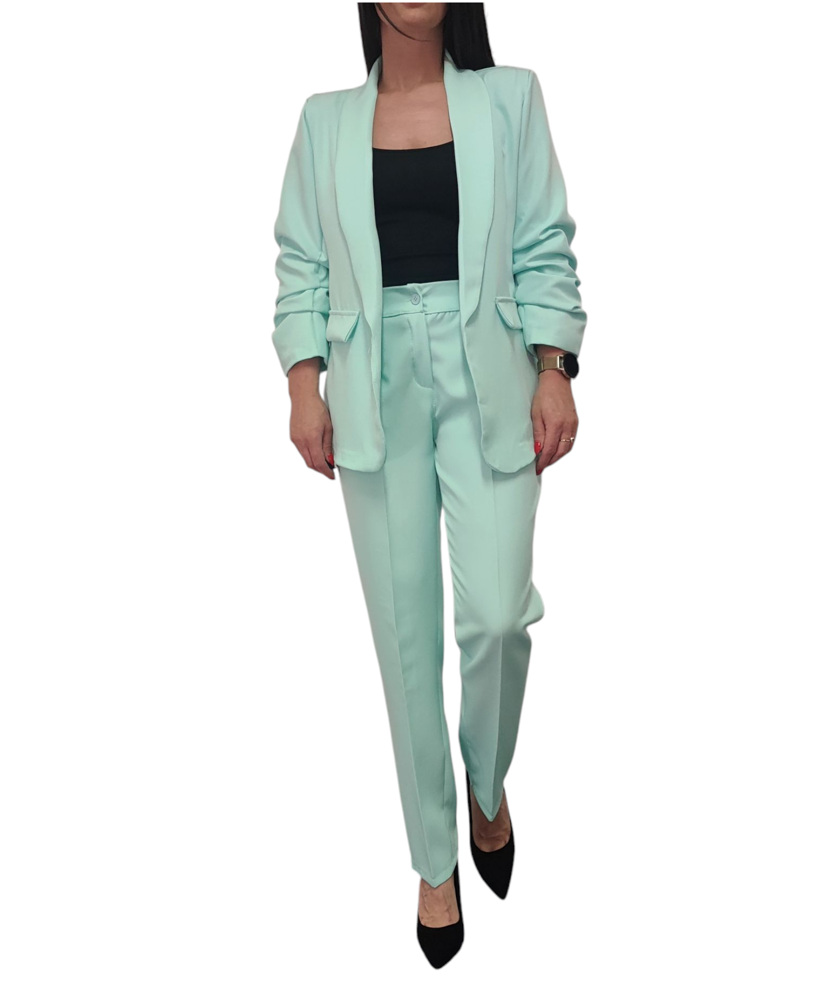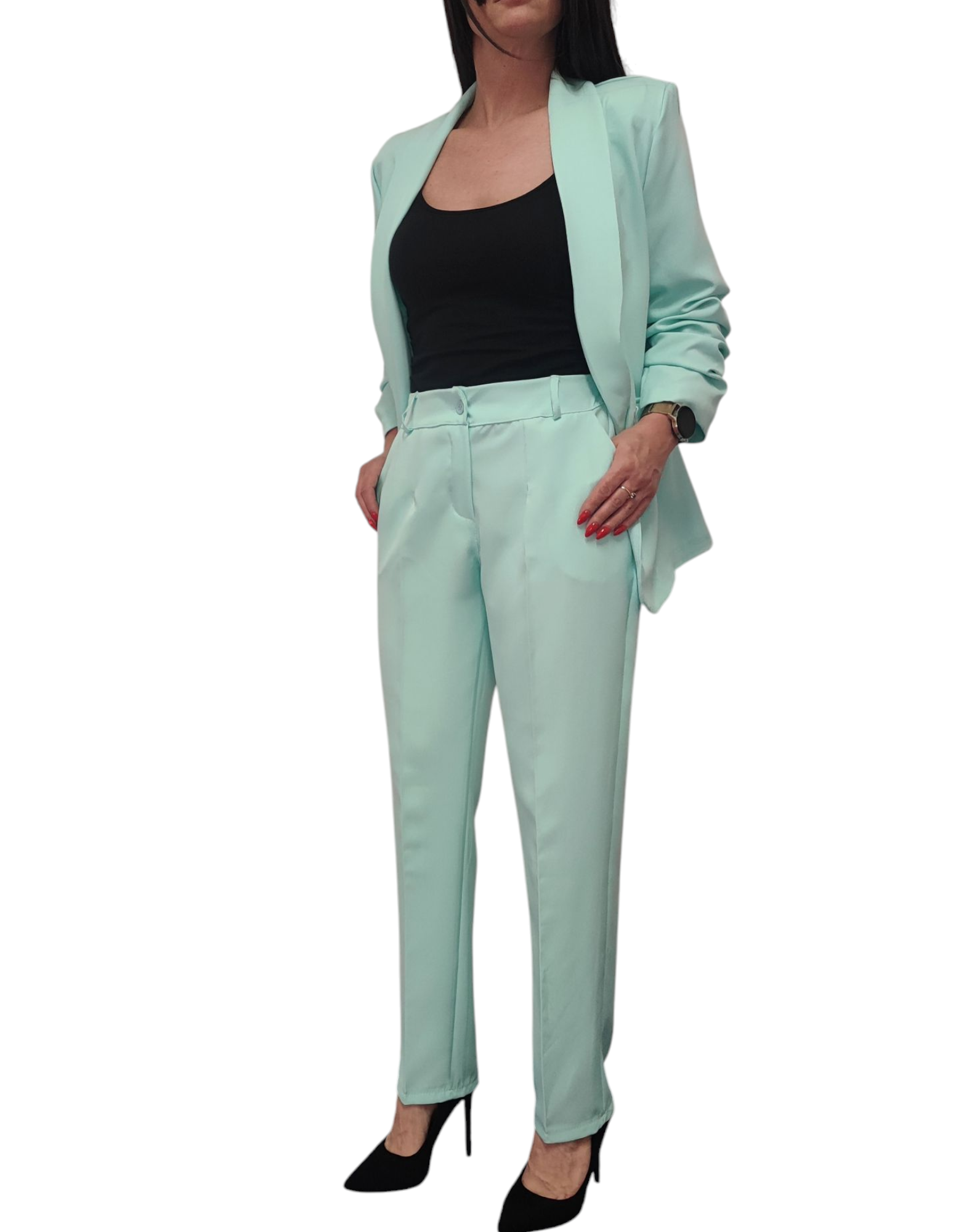 Garnitur Damski Komplet Elegancki Marynarka i Spodnie Miętowy