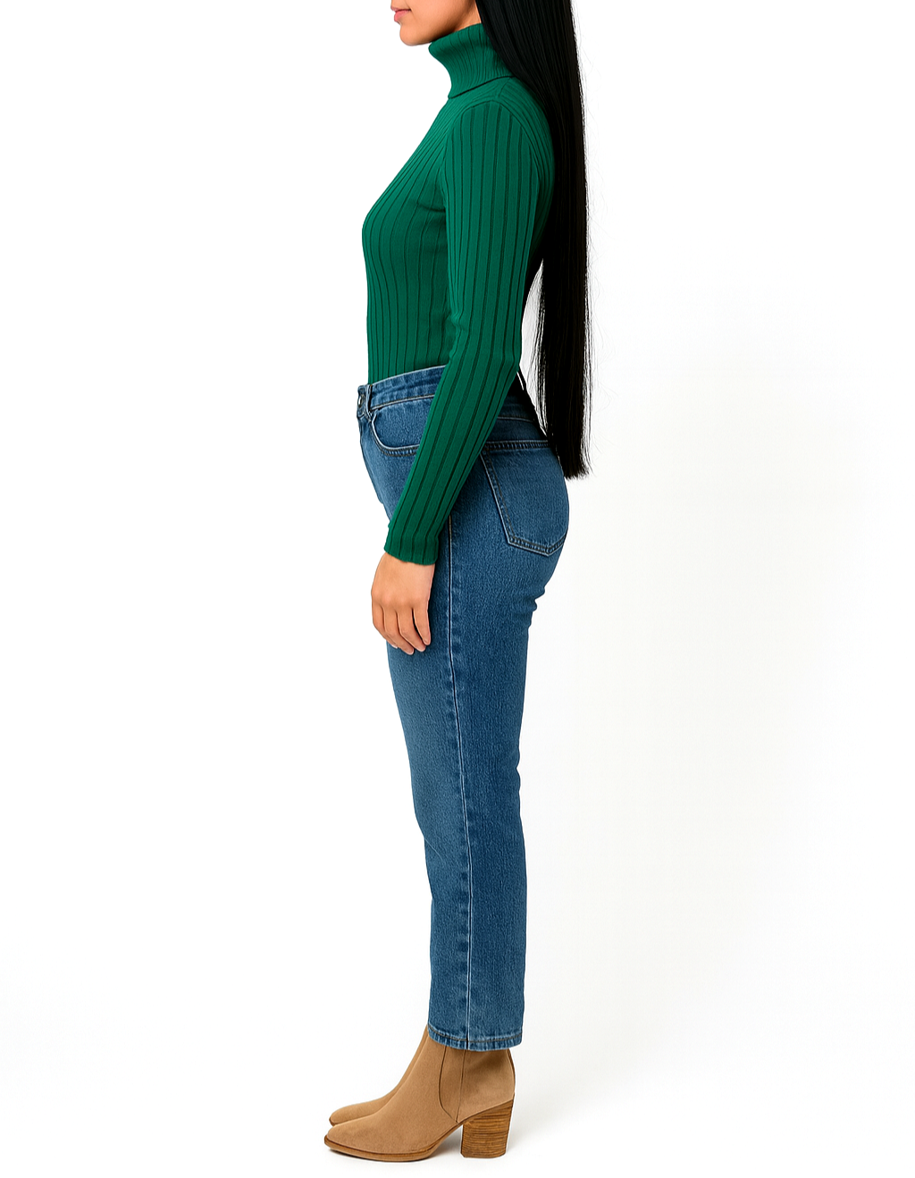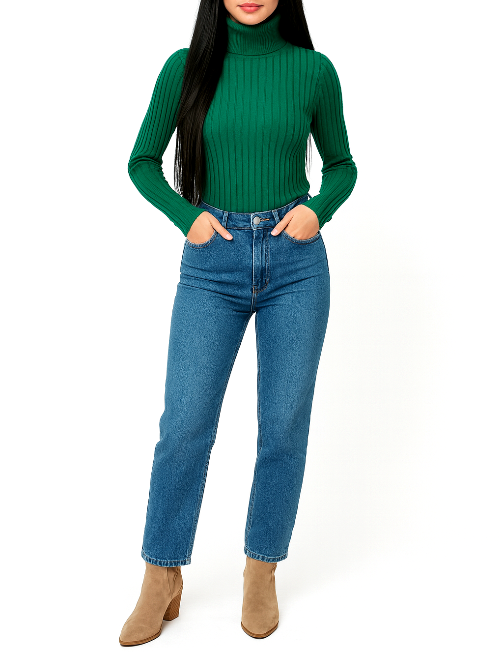 Golf Damski Klasyczny Elastyczny Prążkowany Na Prezent Wiskoza Zielony