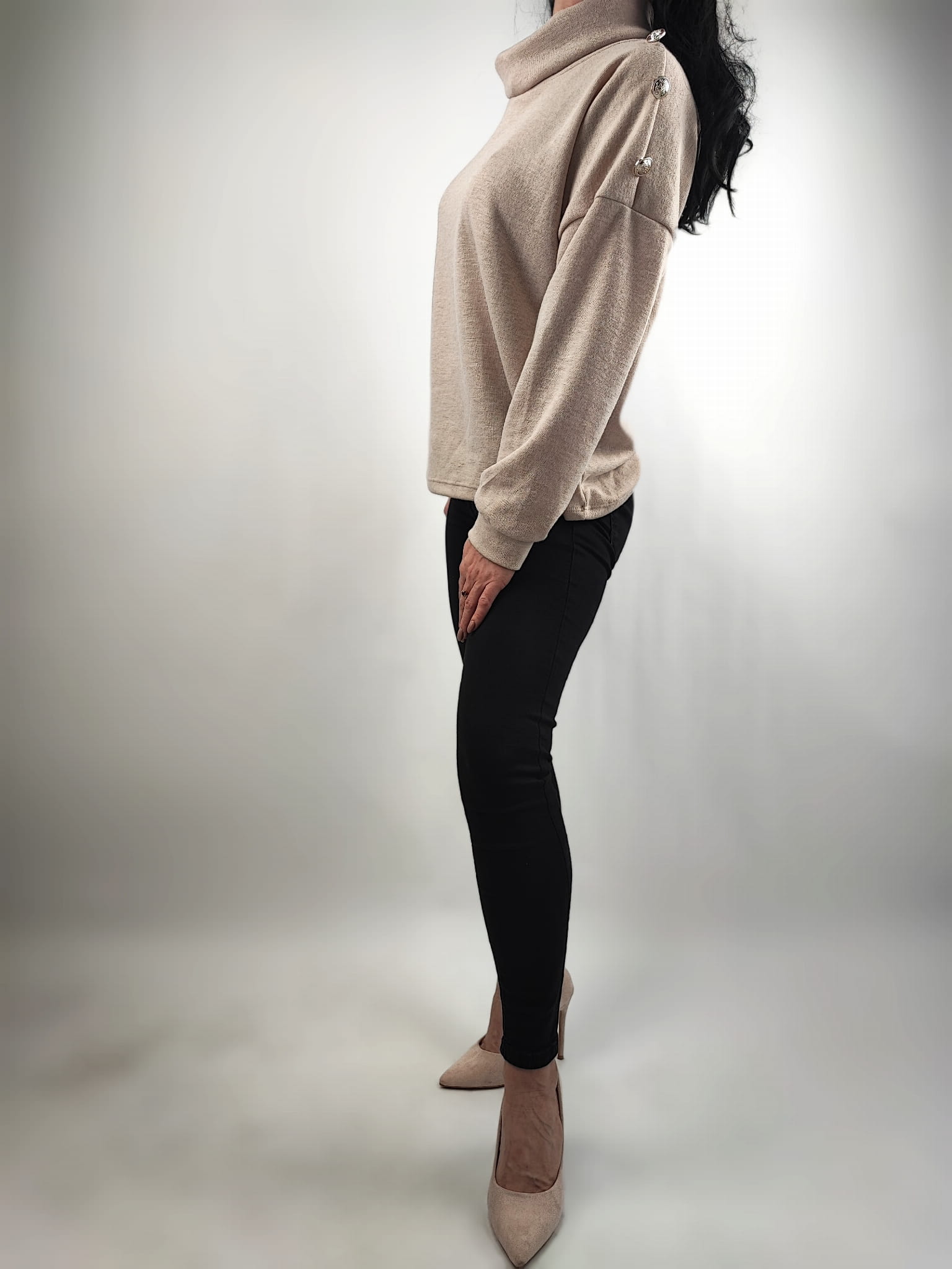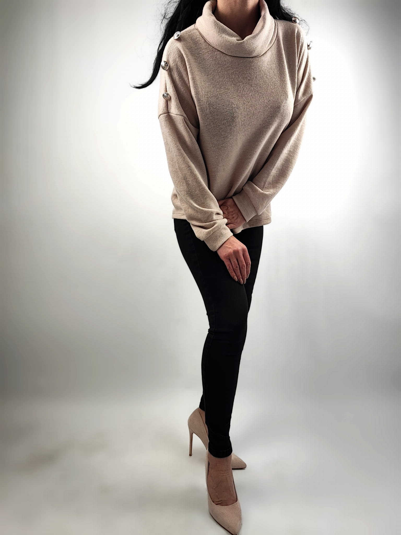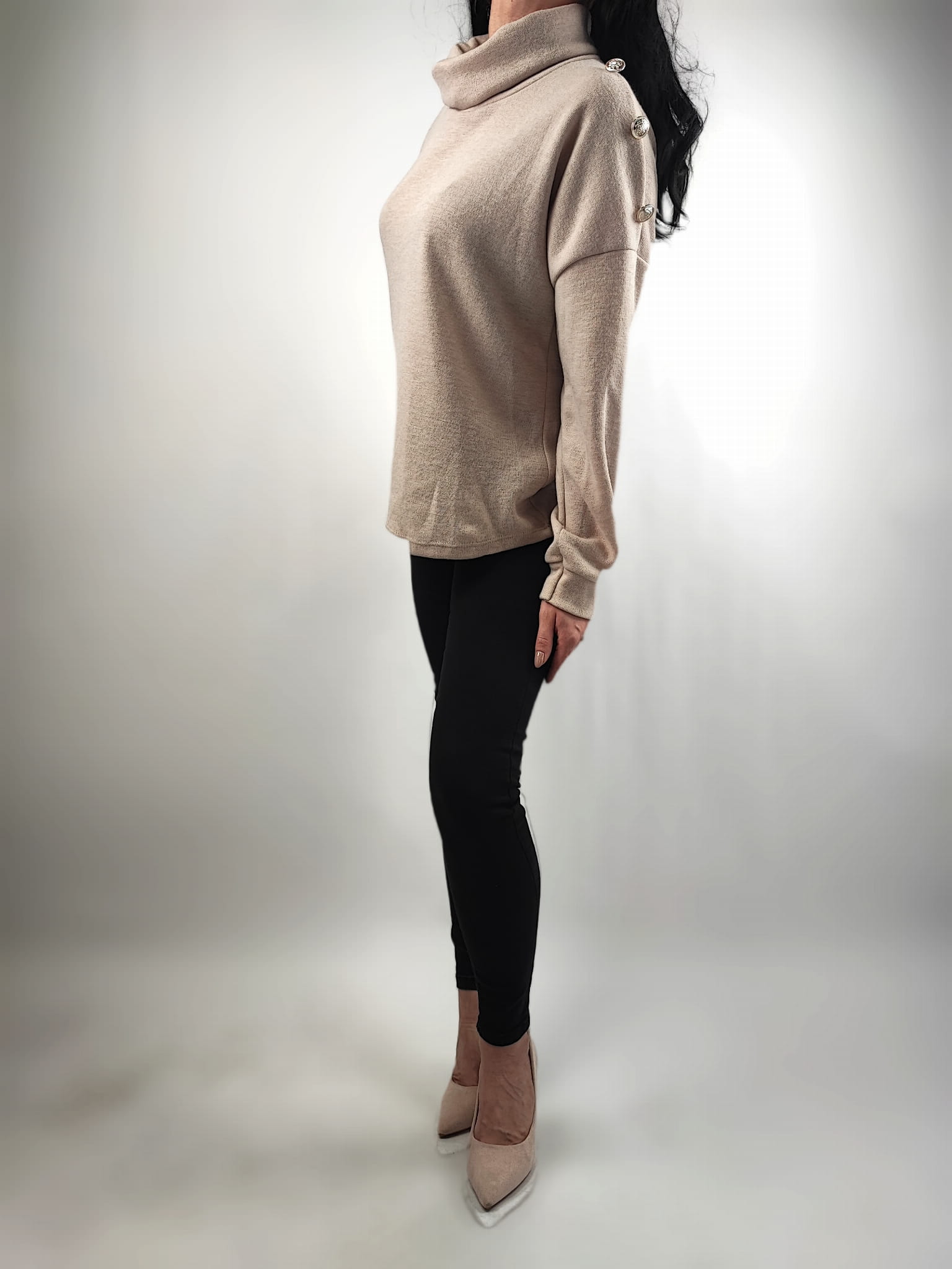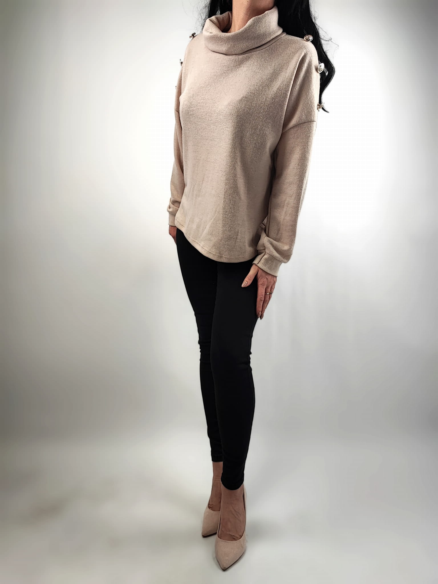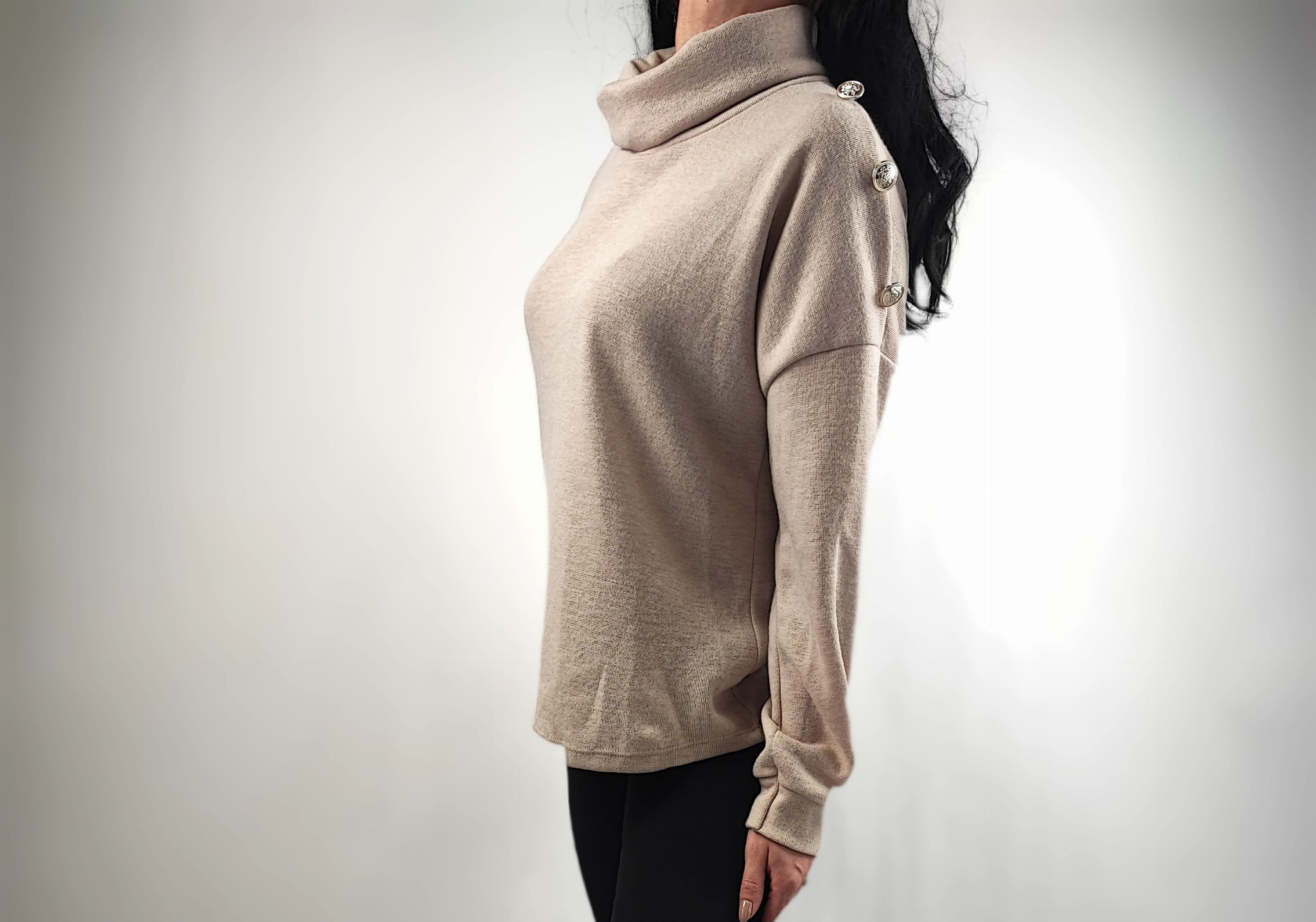Golf Dmski Bluzka Szeroki z guziczkami Italy Beż Uniwersalny