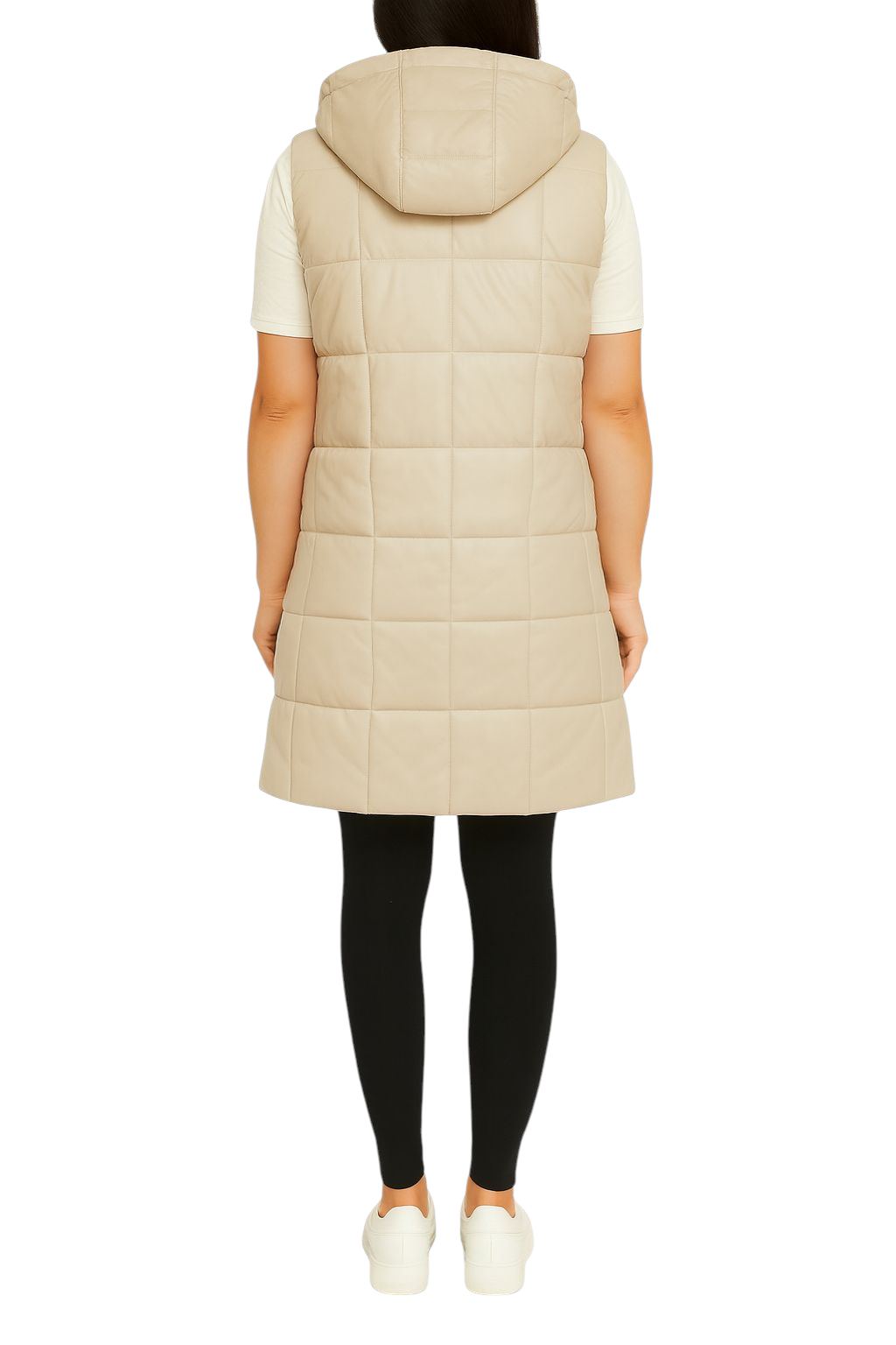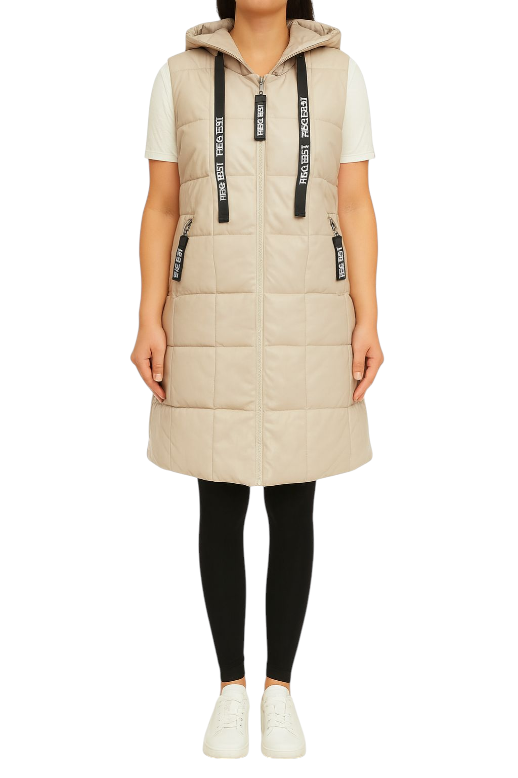 Kamizelka Pikowana Ocieplana Bezrękawnik Kaptur Eko Skóra Jesień Beżowa