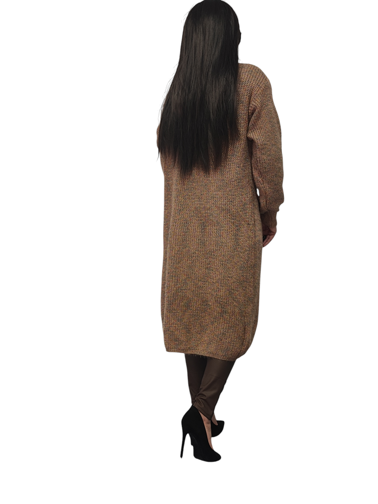 Kardigan Damski Sweter Długi Narzutka Ciepły Na Prezent Camel Melanż