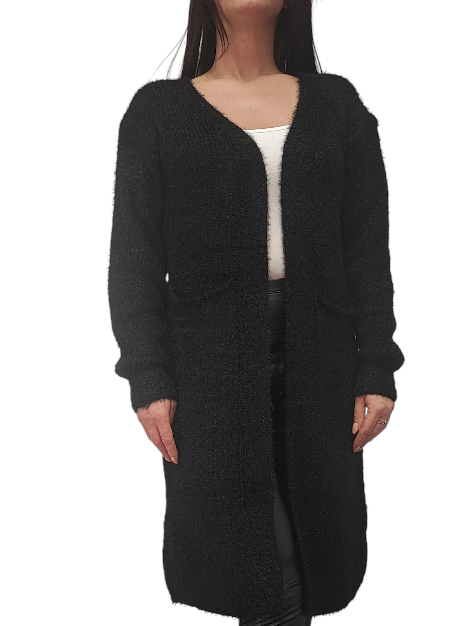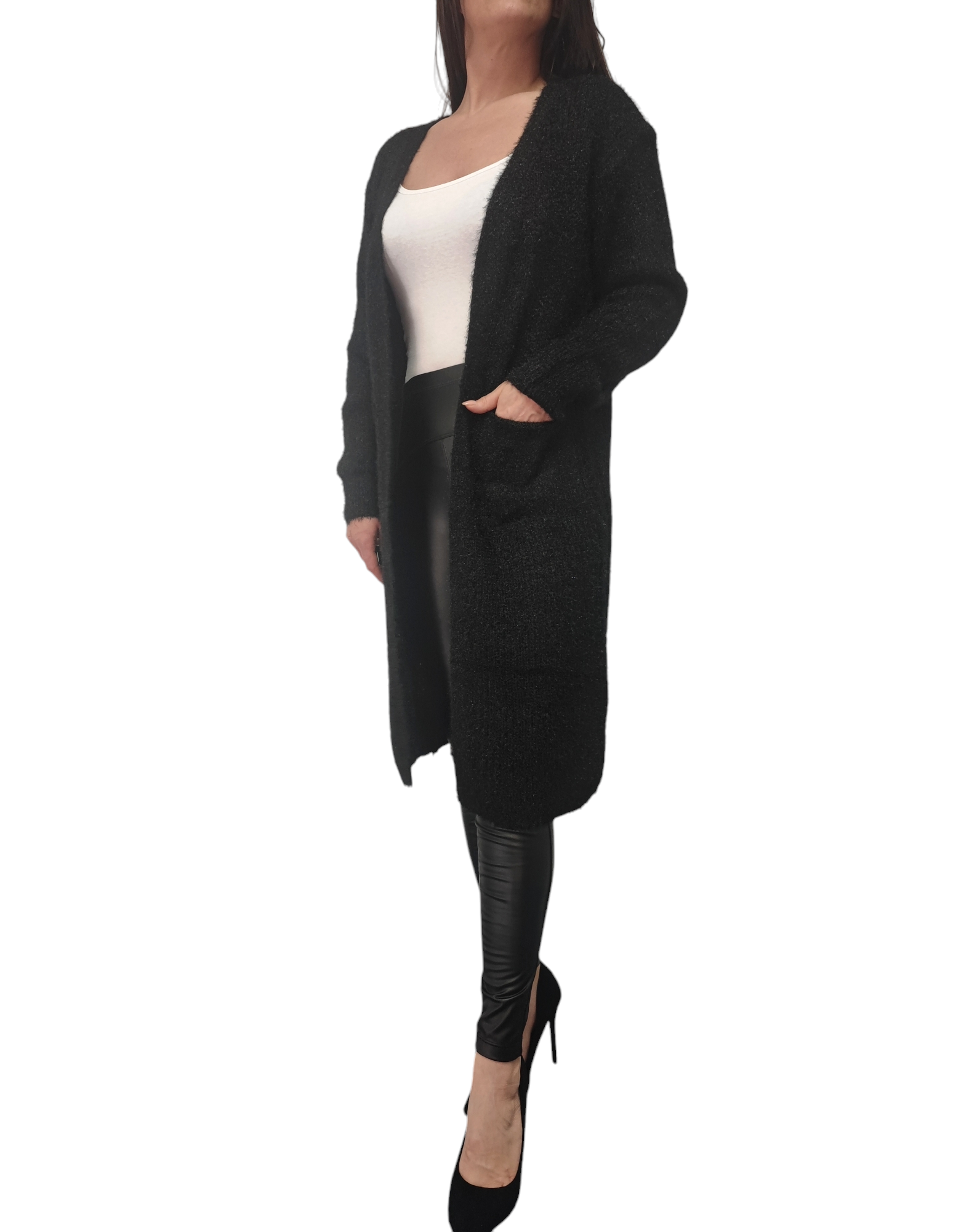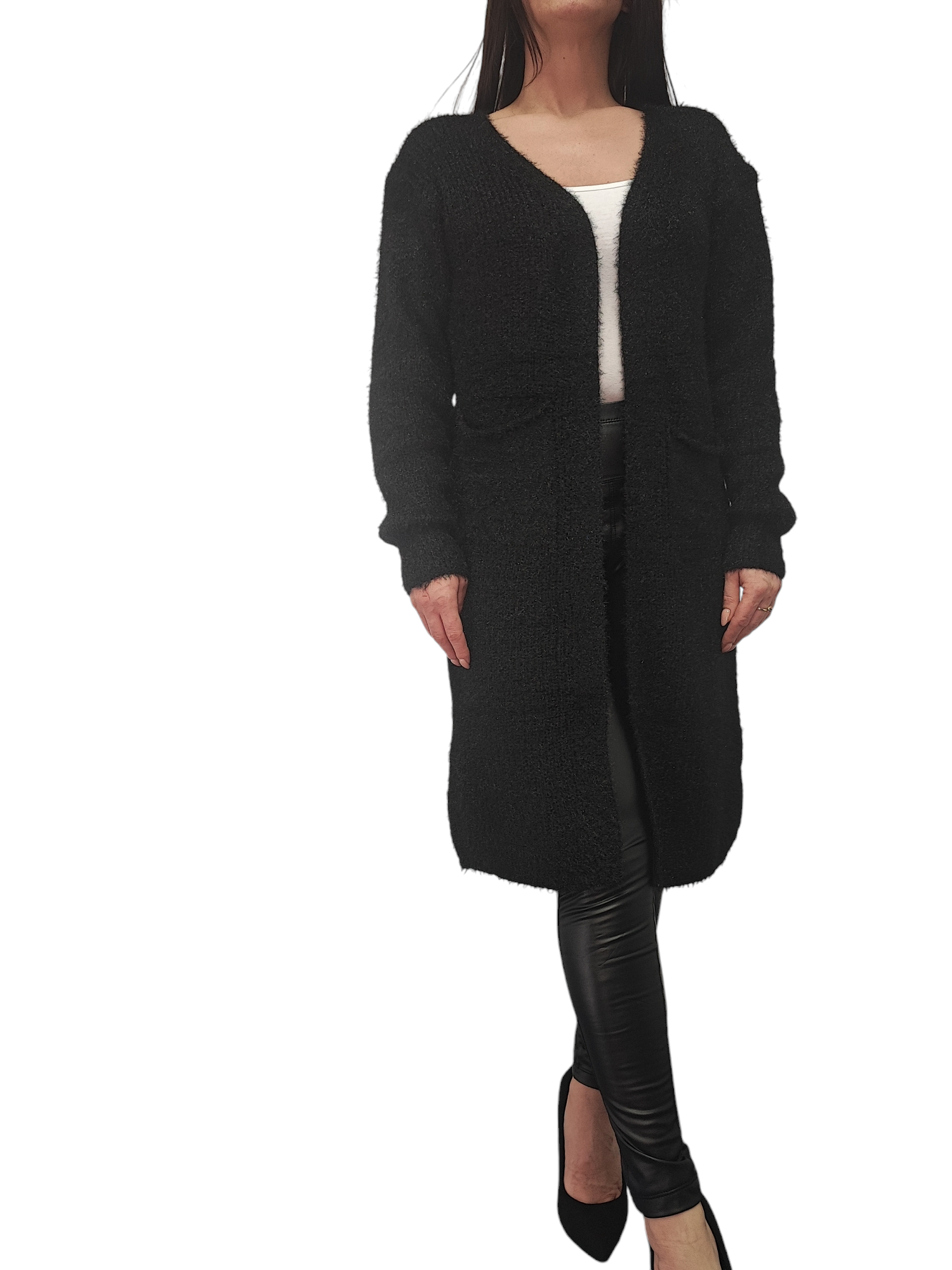 Kardigan Damski Sweter Długi Narzutka Ciepły Na Prezent Czarny