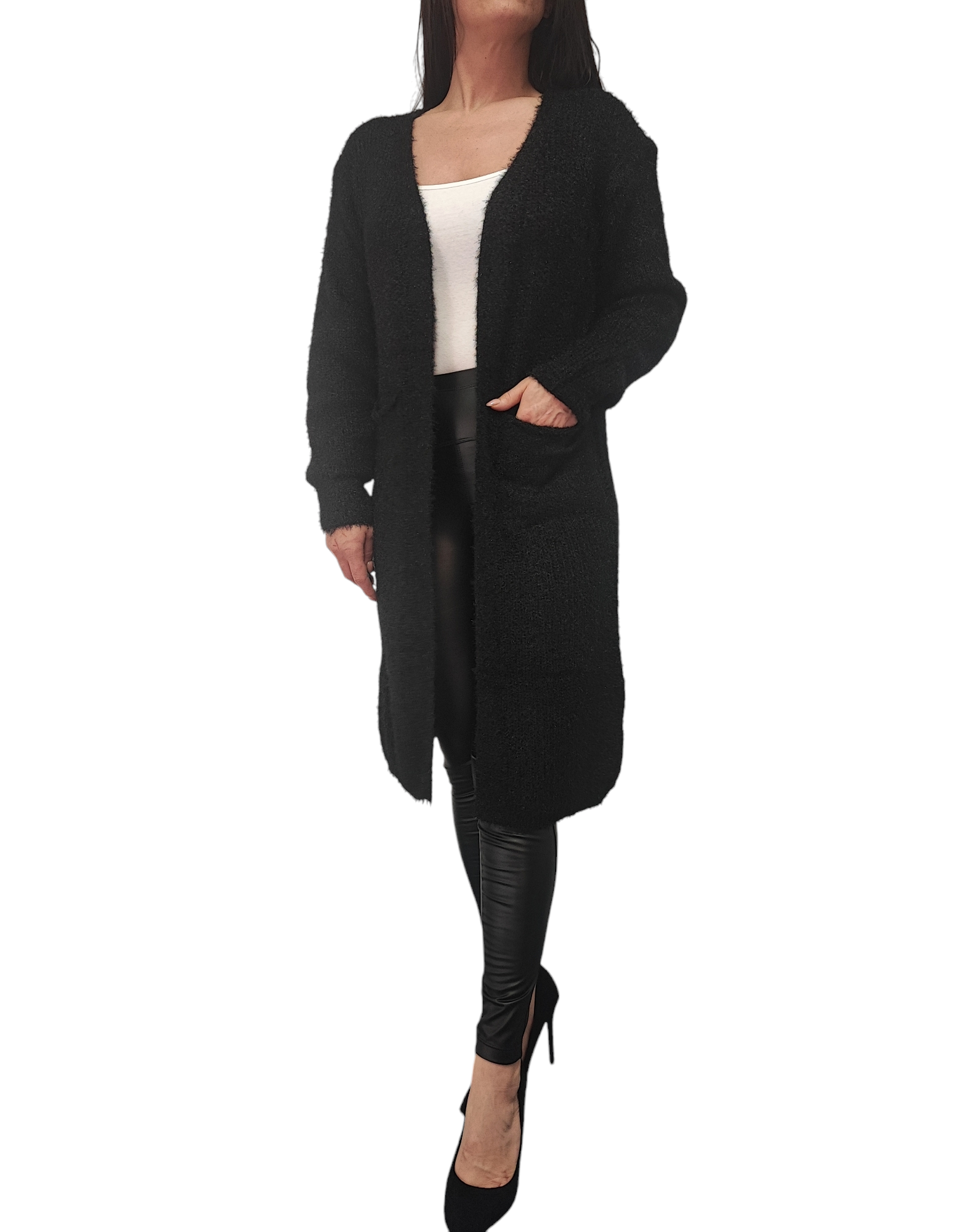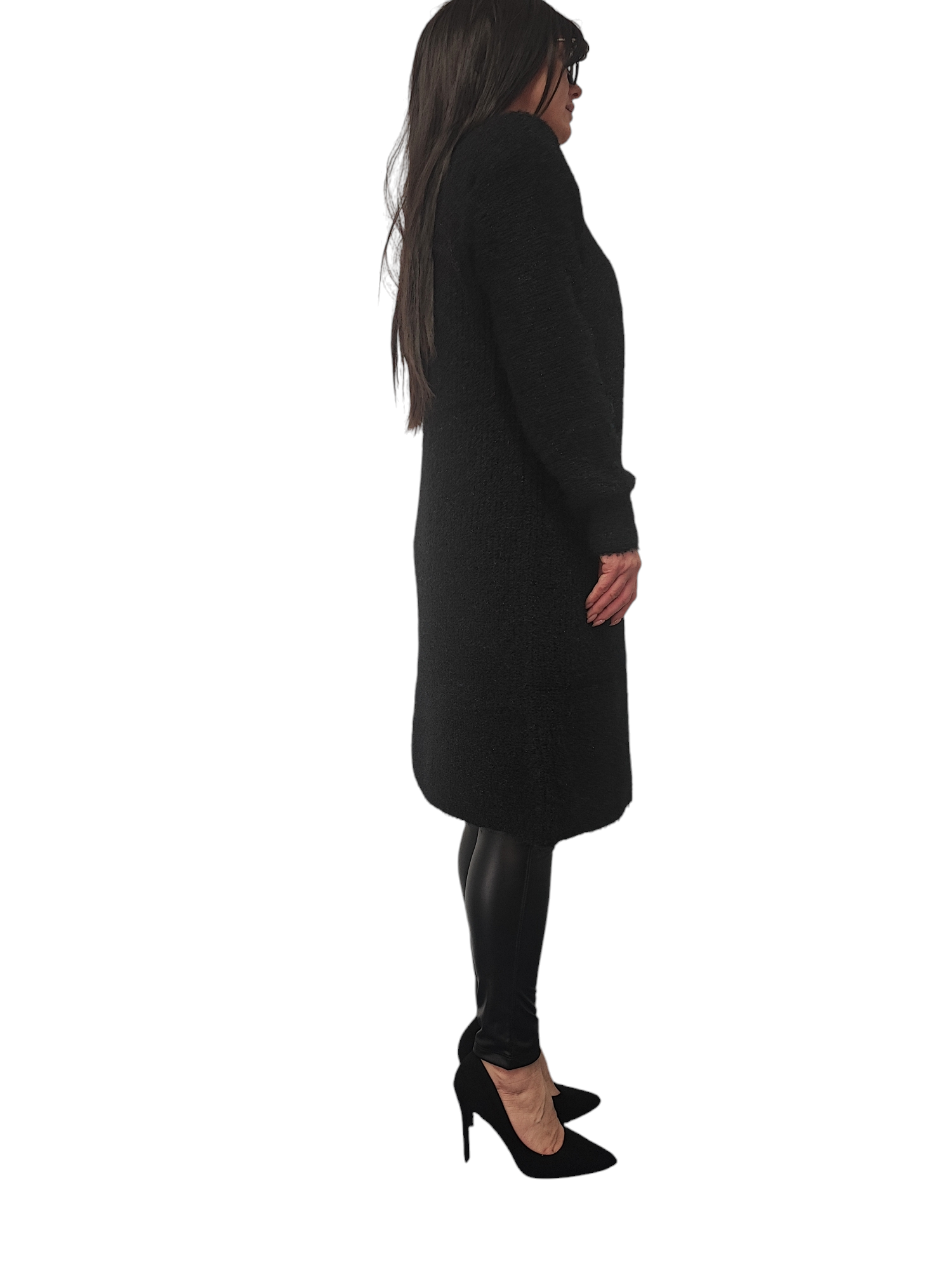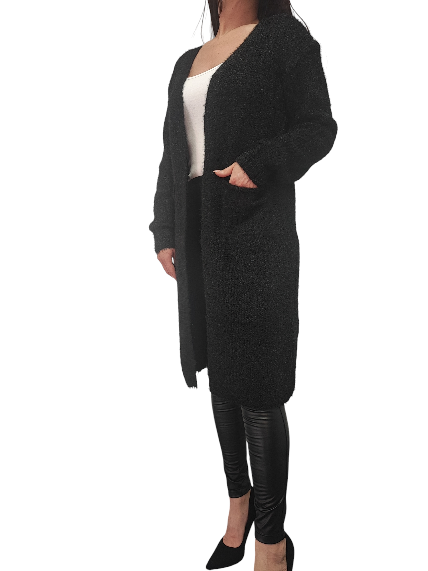 Kardigan Damski Sweter Długi Narzutka Ciepły Na Prezent Czarny