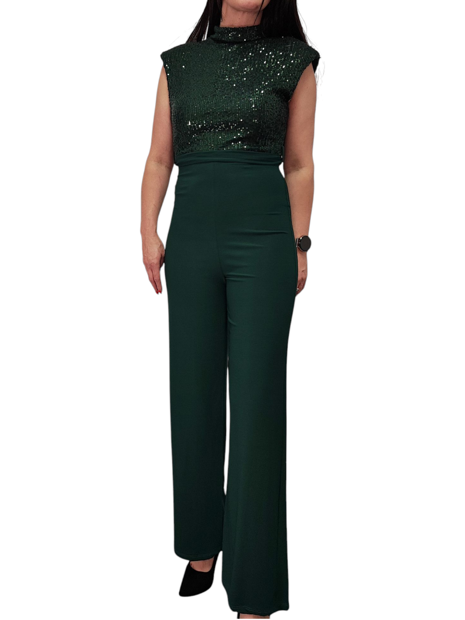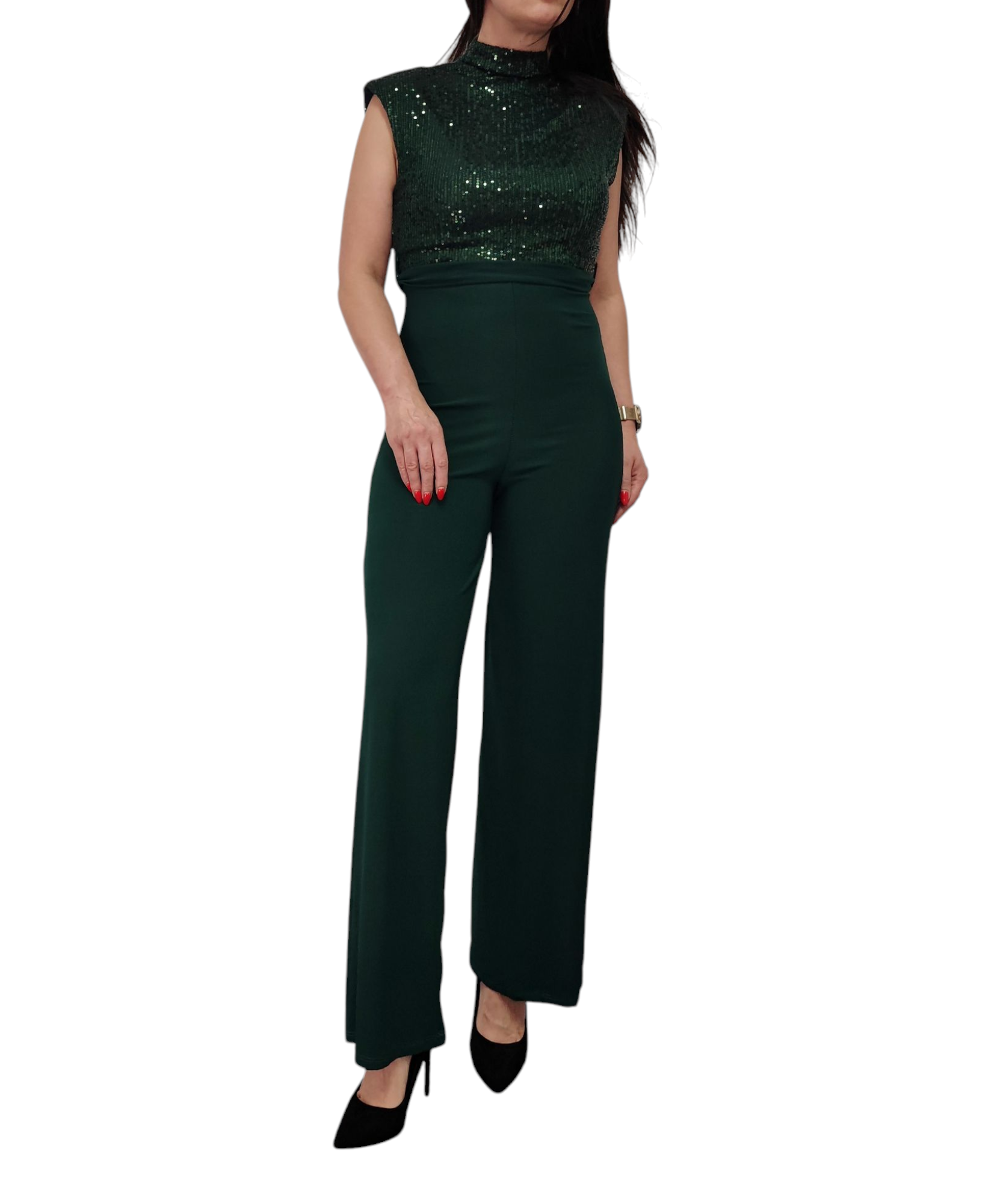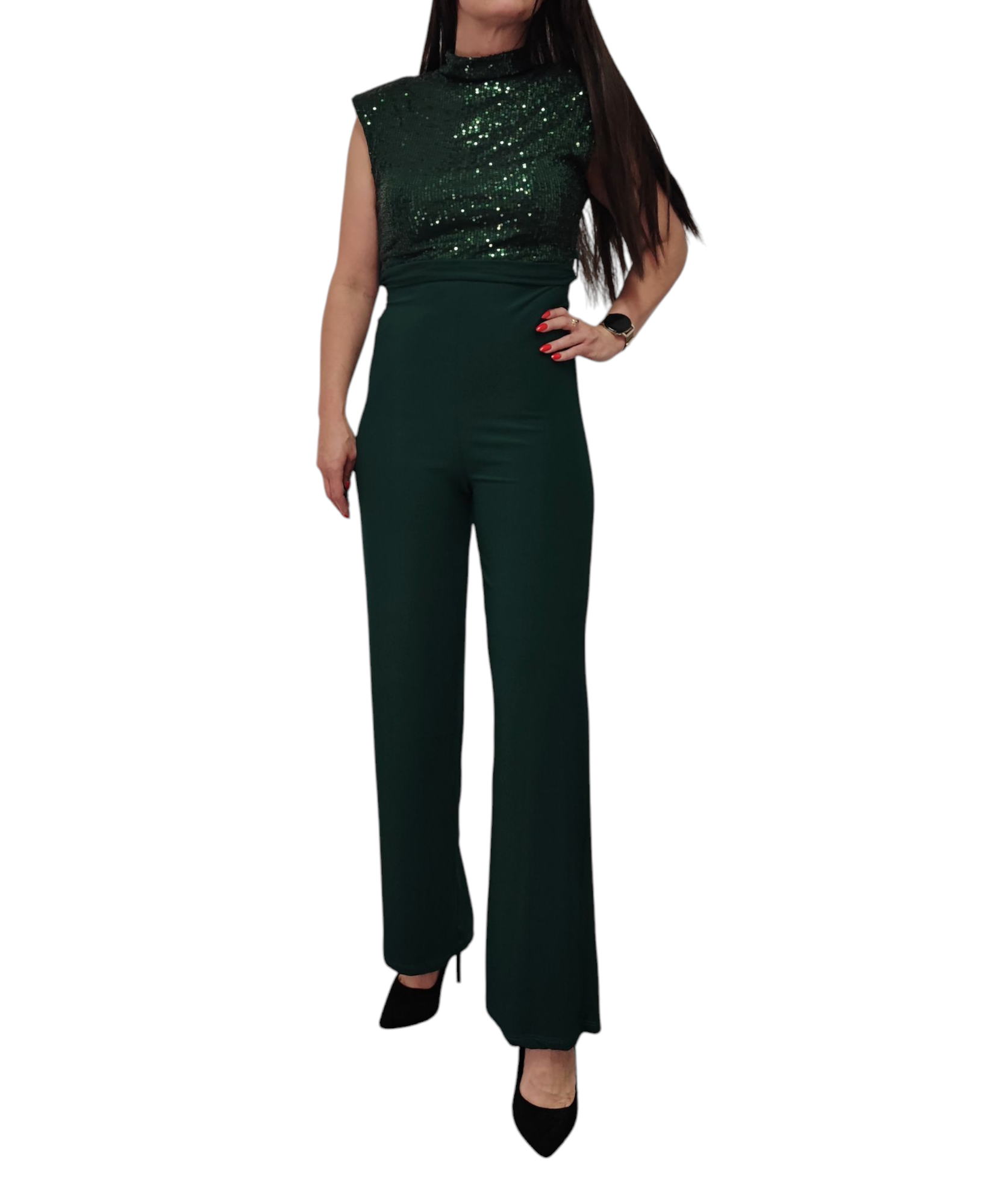 Kombinezon Elegancki Długie Spodnie Włoski Cekiny Wiosna Lato Zielony S M
