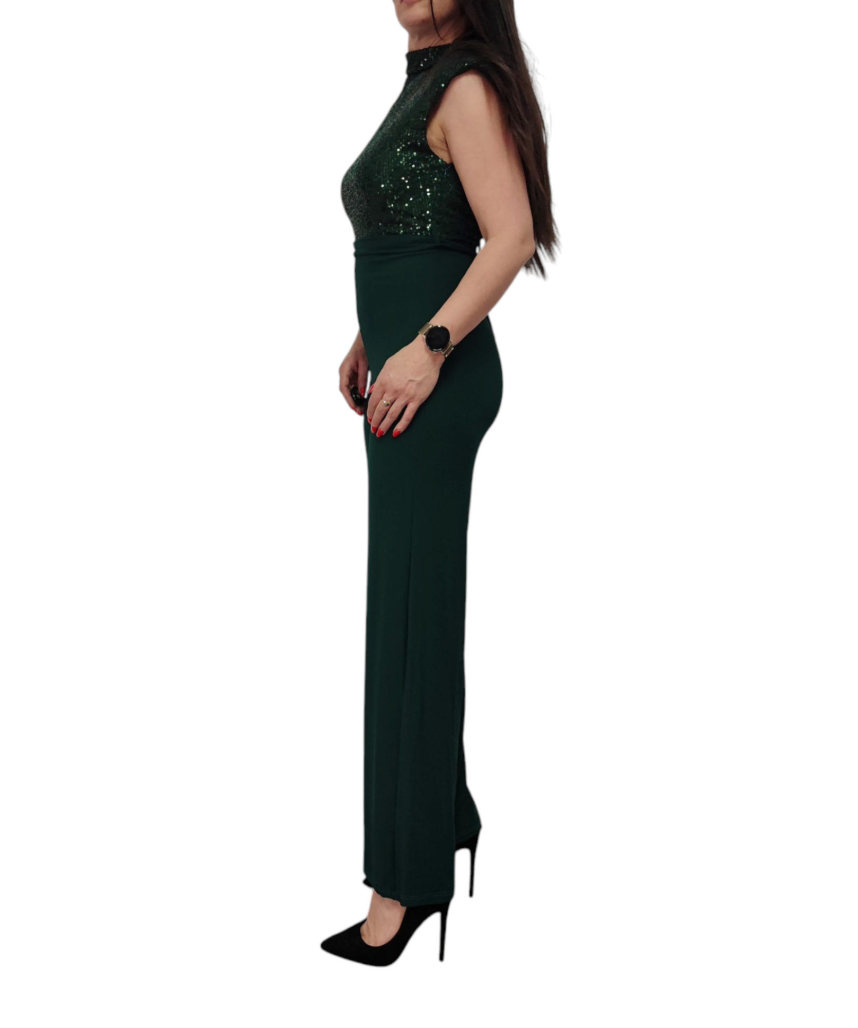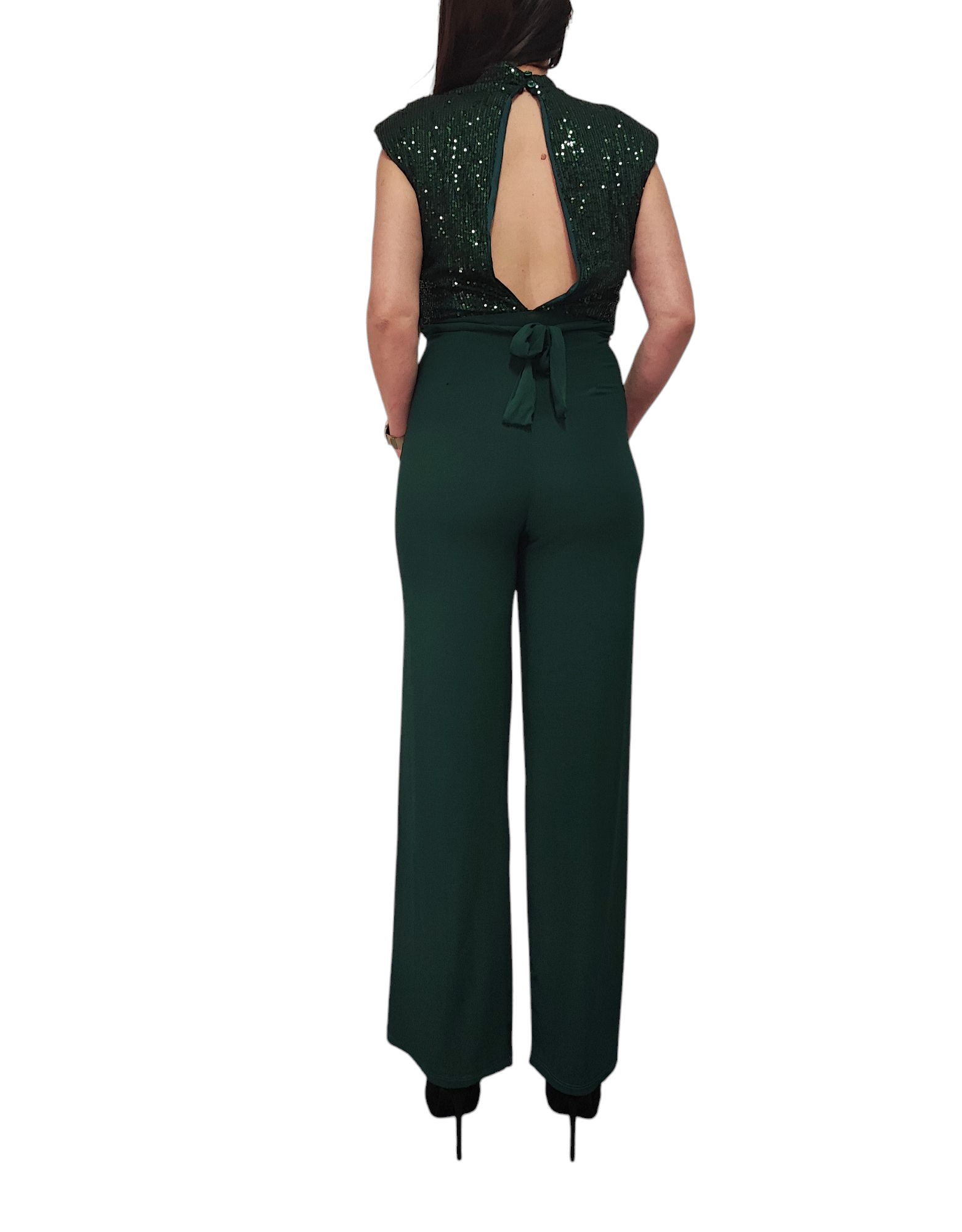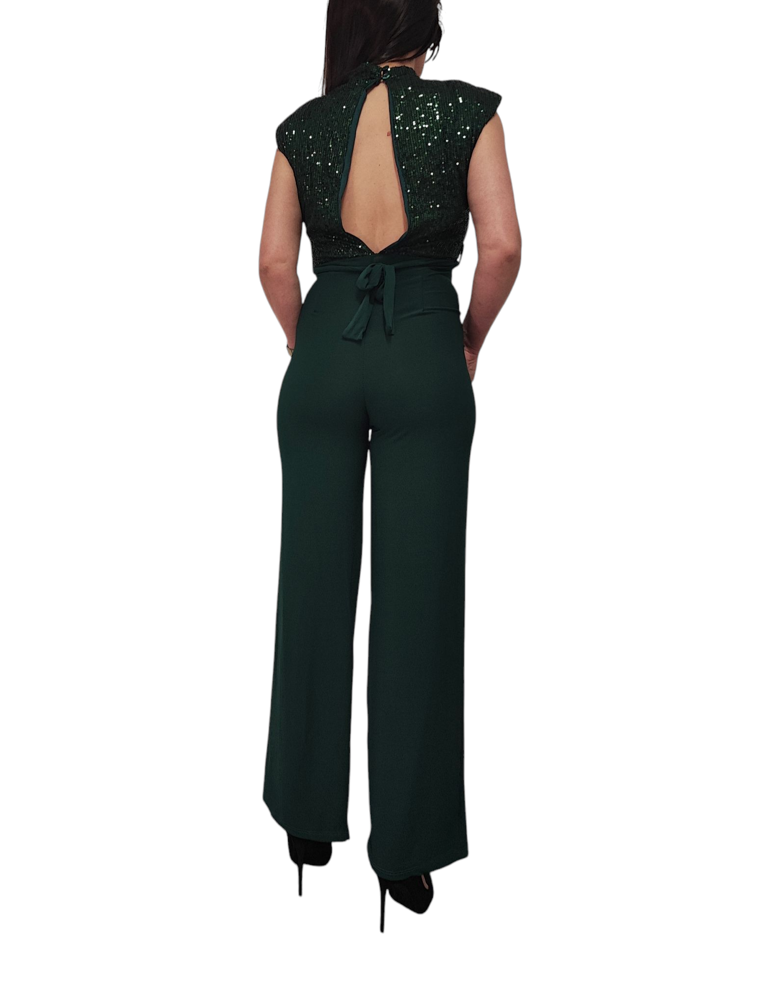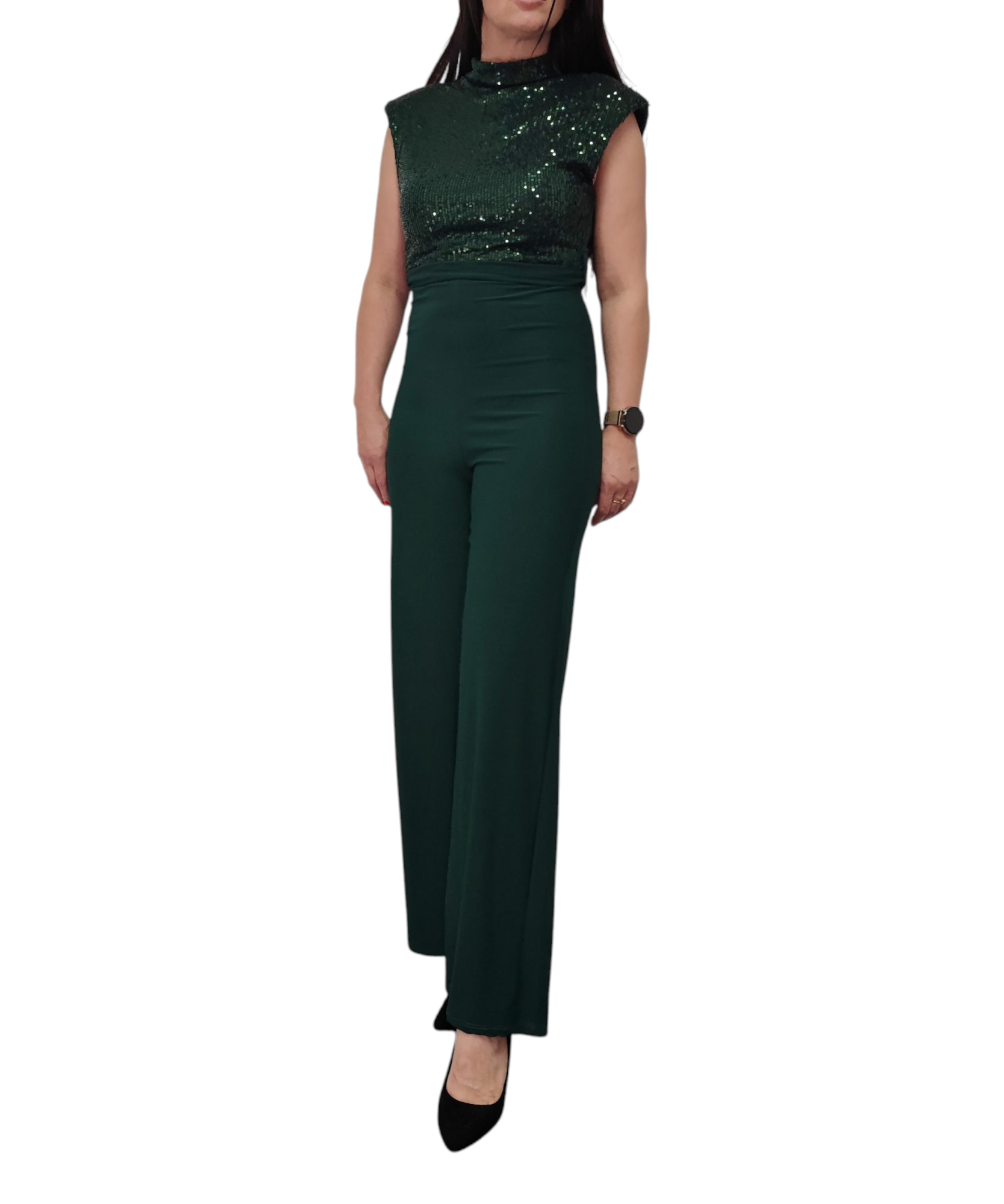 Kombinezon Elegancki Długie Spodnie Włoski Cekiny Wiosna Lato Zielony S M
