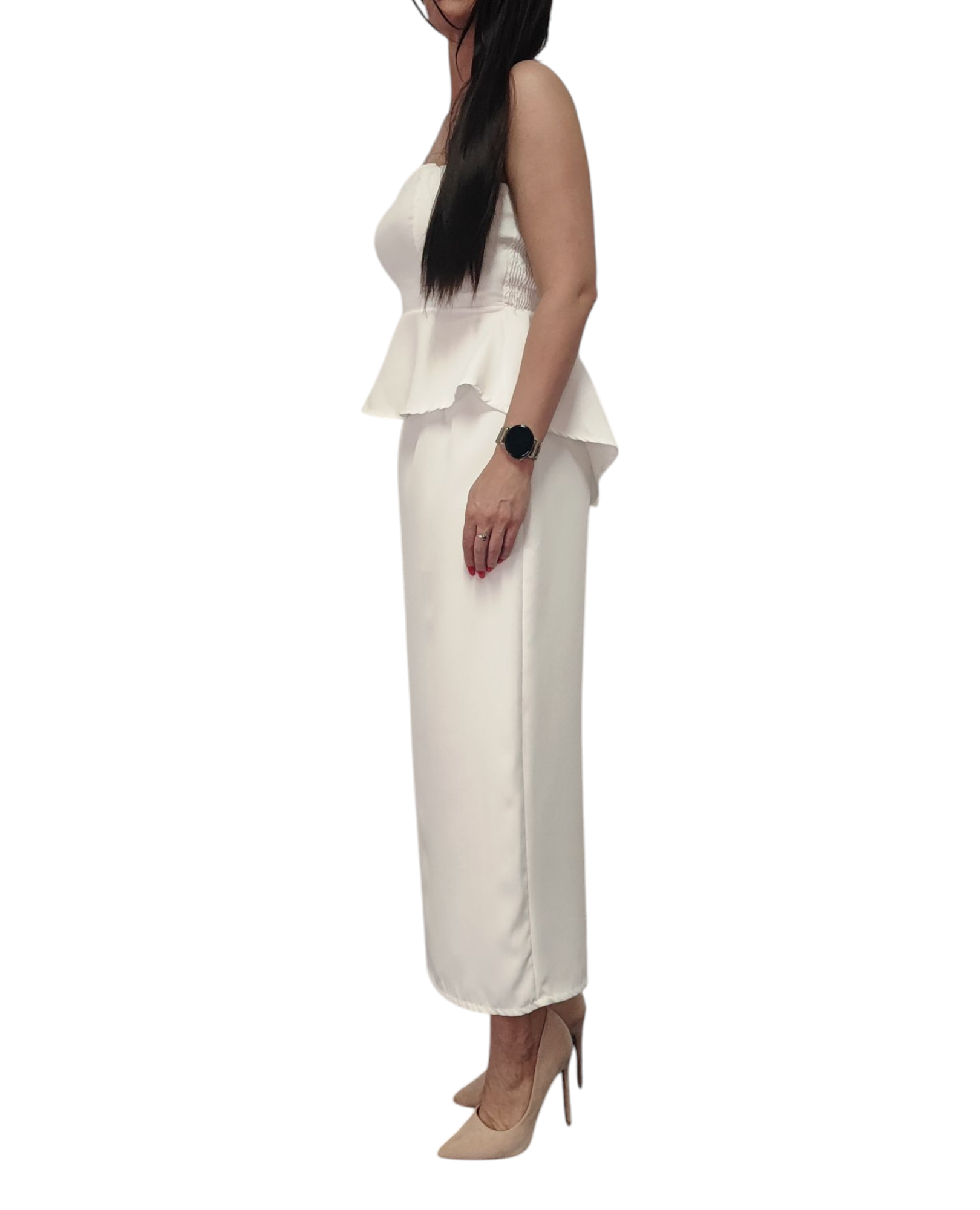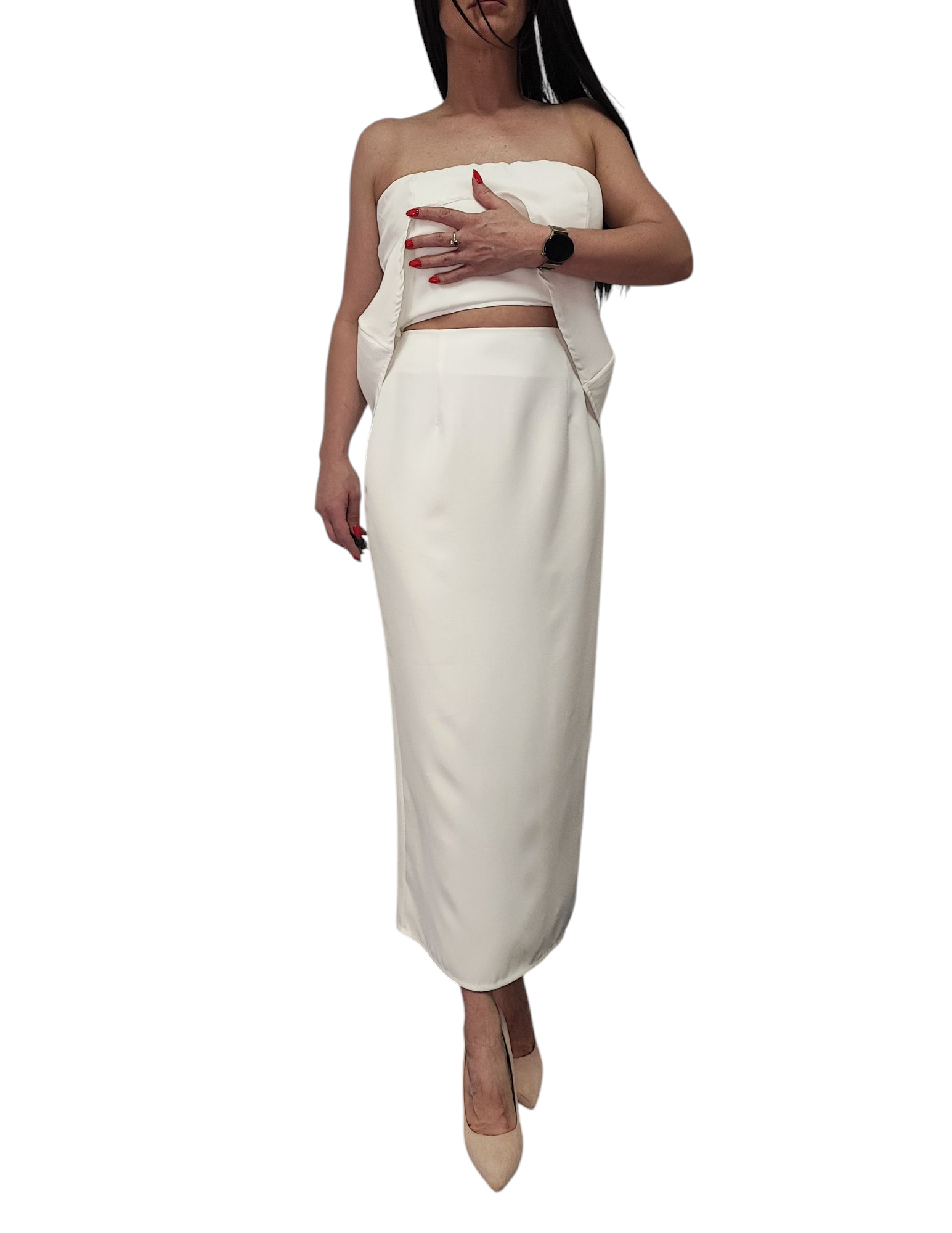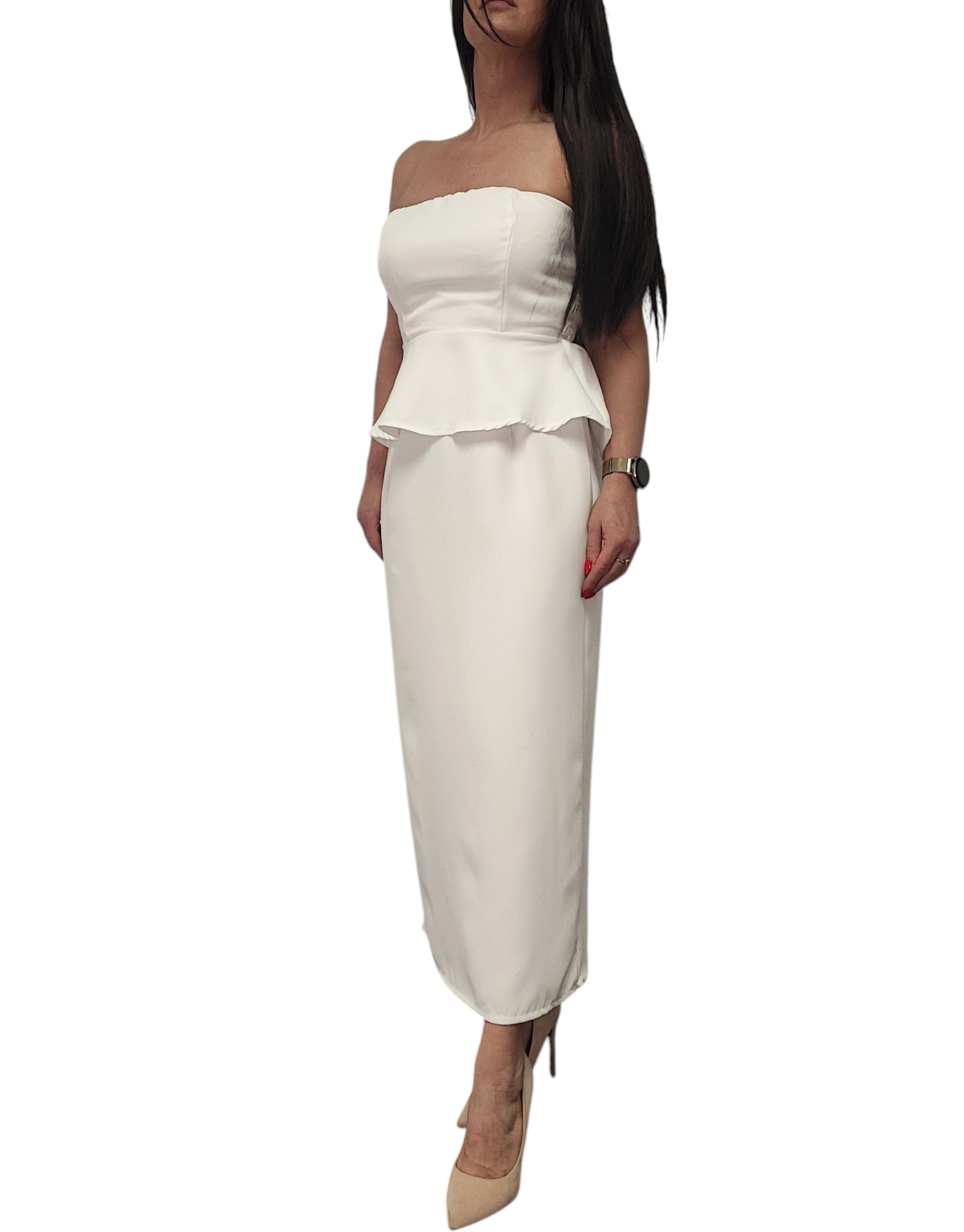 Komplet Damski Elegancki Baskinka Top Spódnica Biały