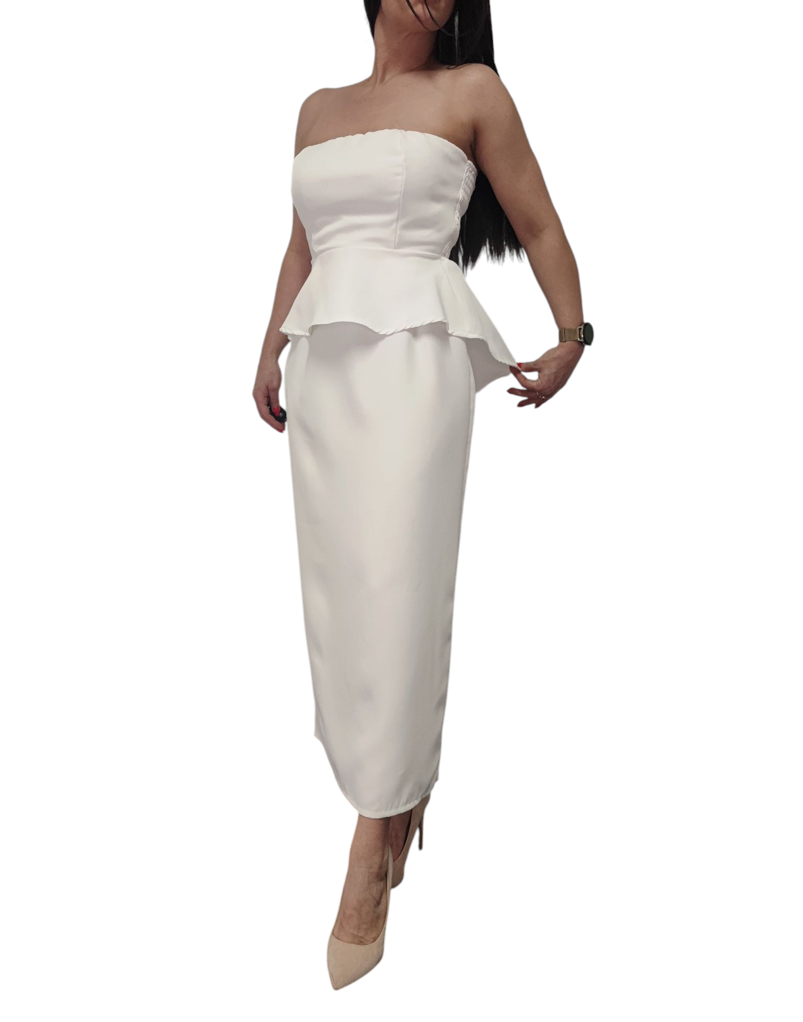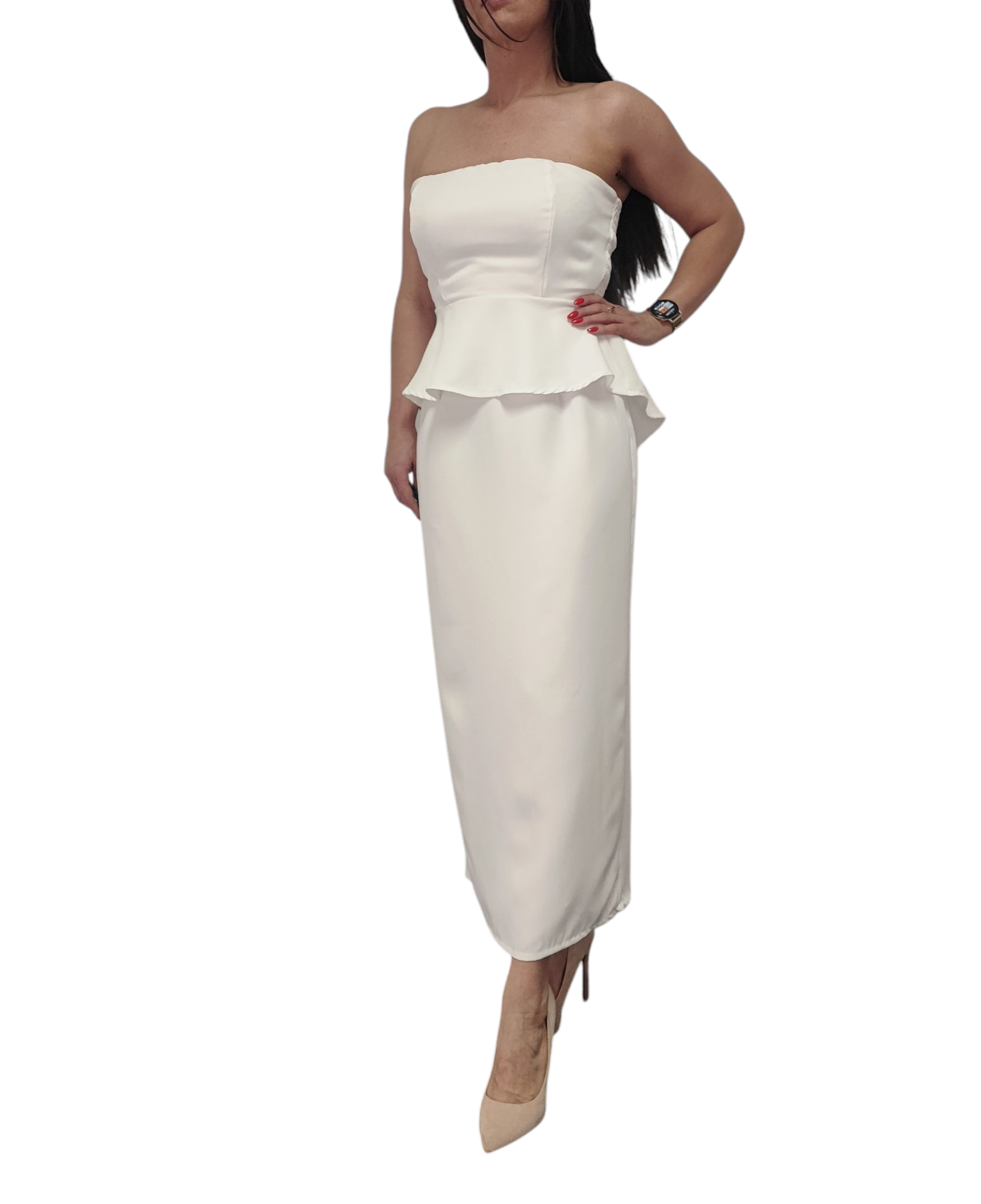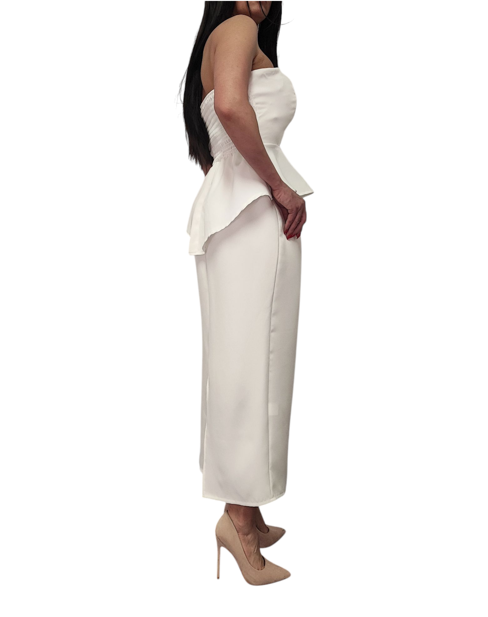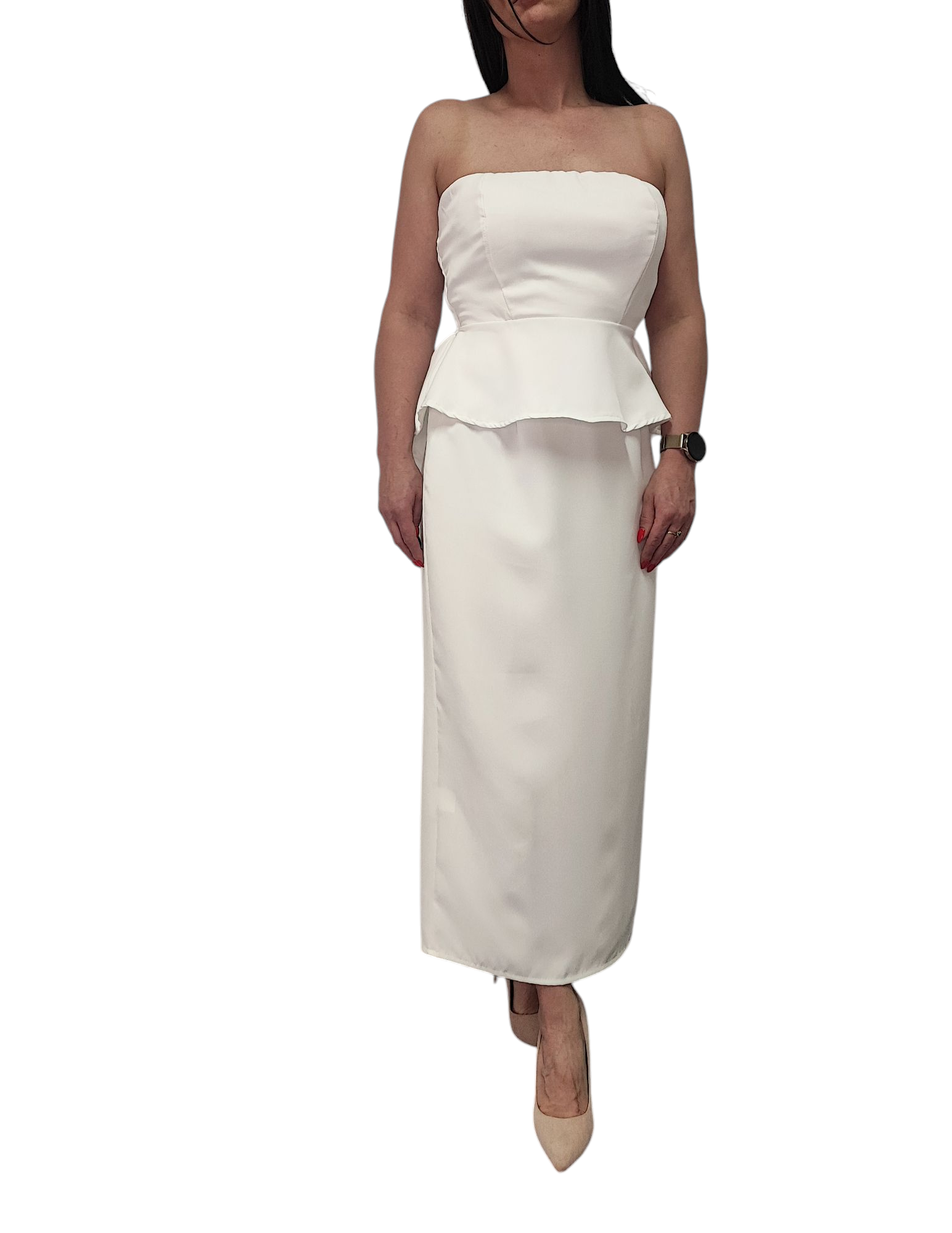 Komplet Damski Elegancki Baskinka Top Spódnica Biały