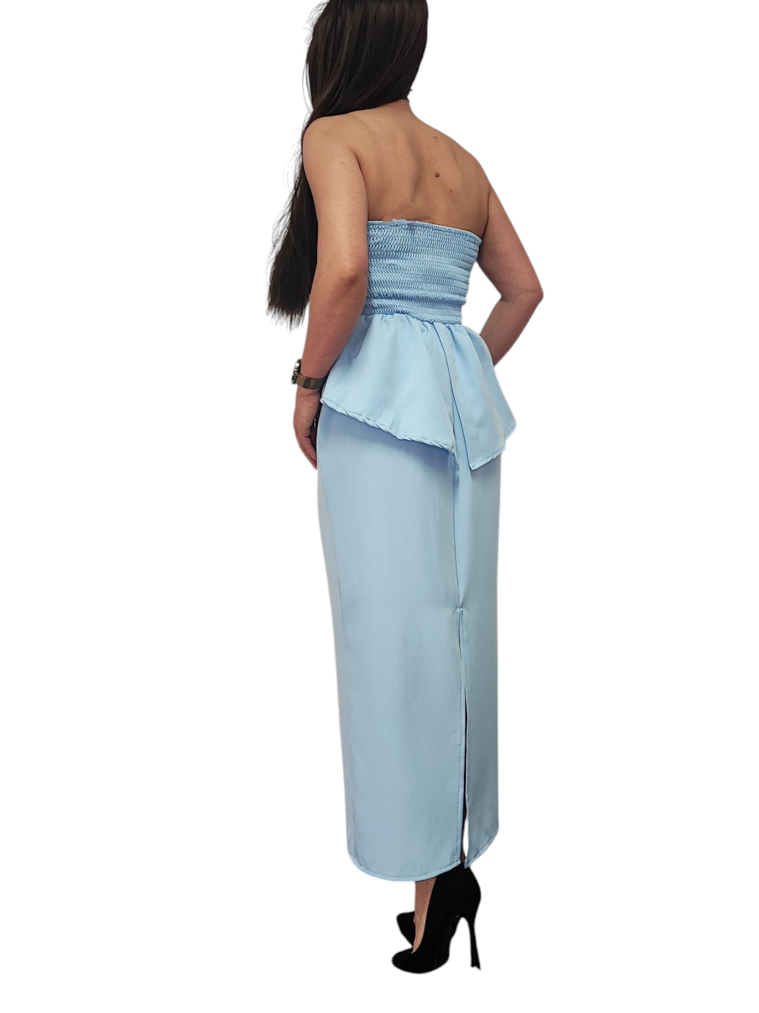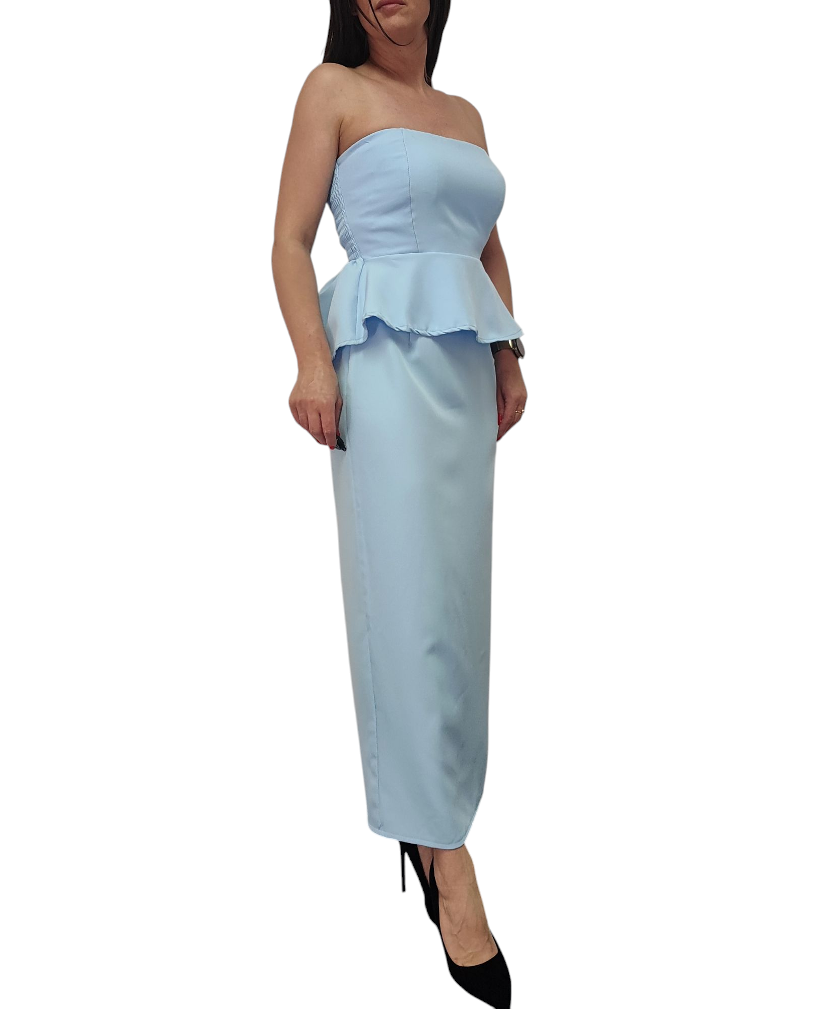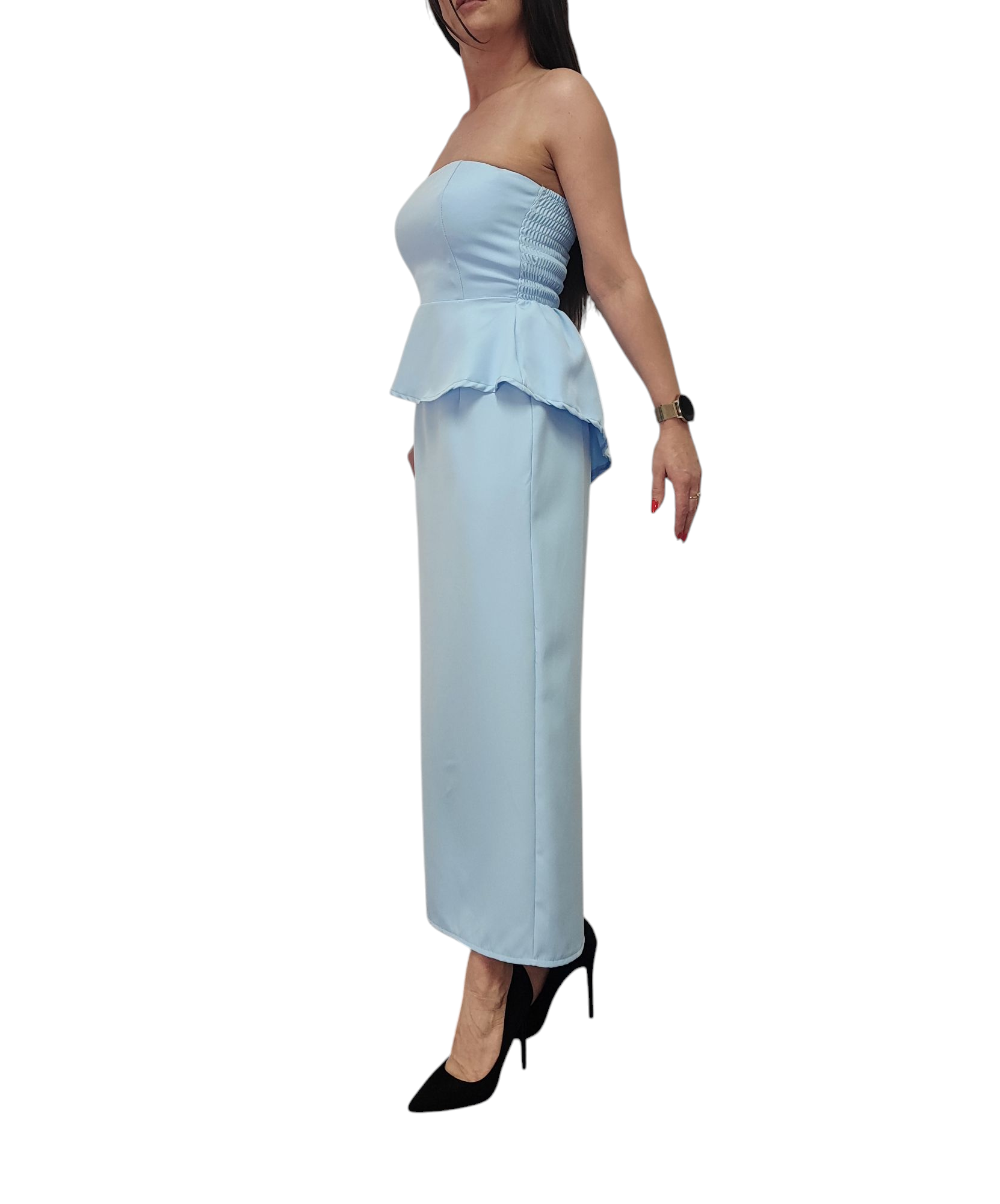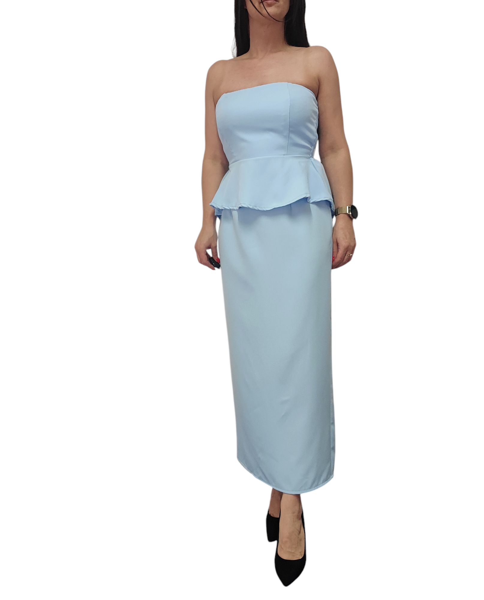 Komplet Damski Elegancki Baskinka Top Spódnica Błękitny