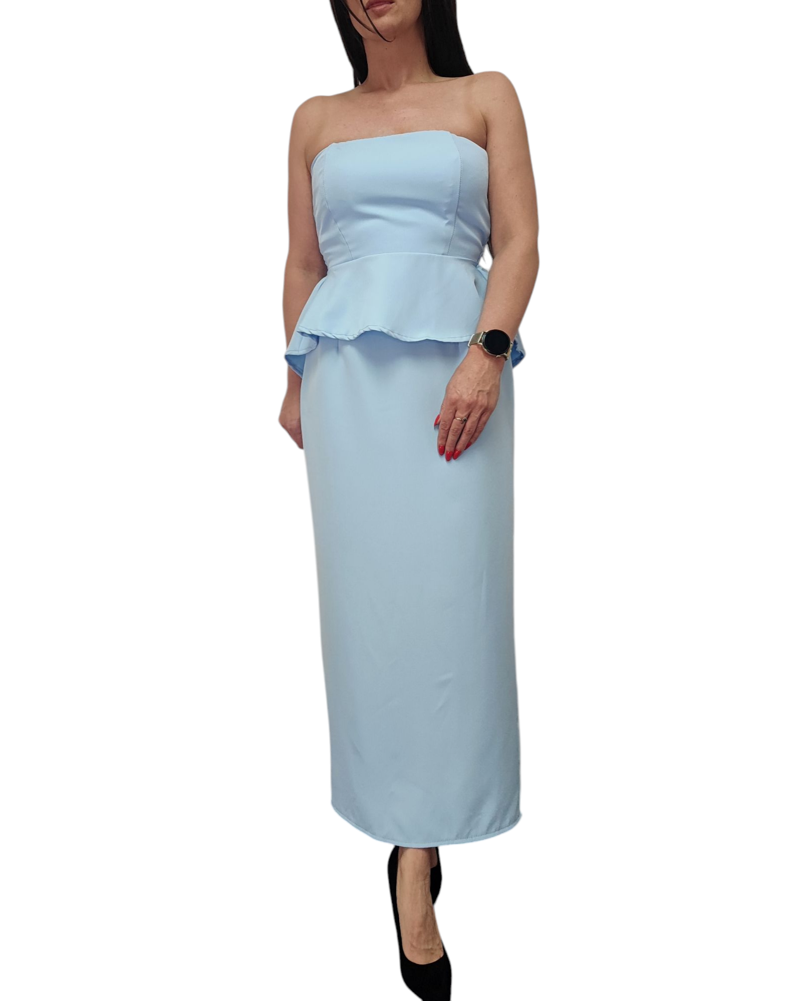 Top i spódnica pięknie podkreślają sylwetkę, dodając kobiecego wdzięku.