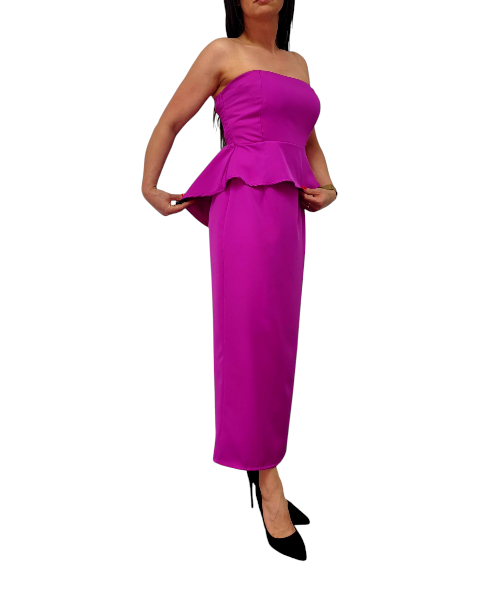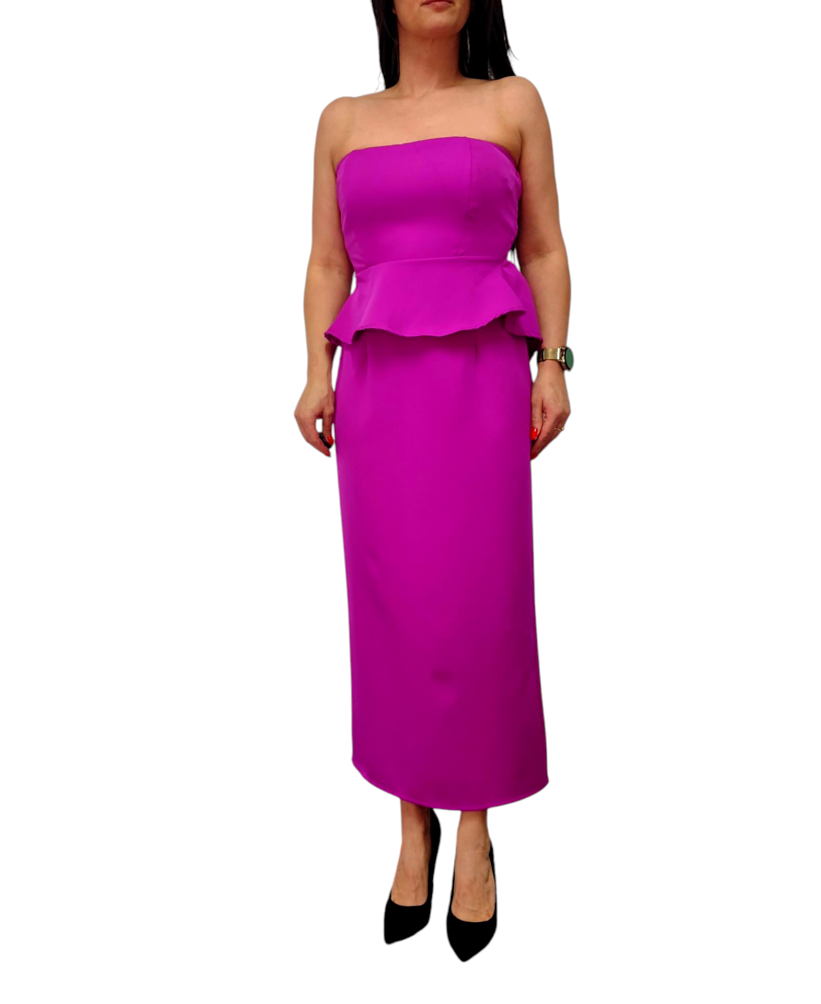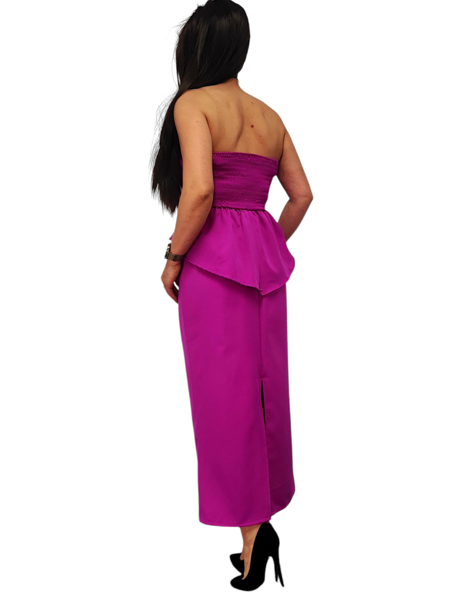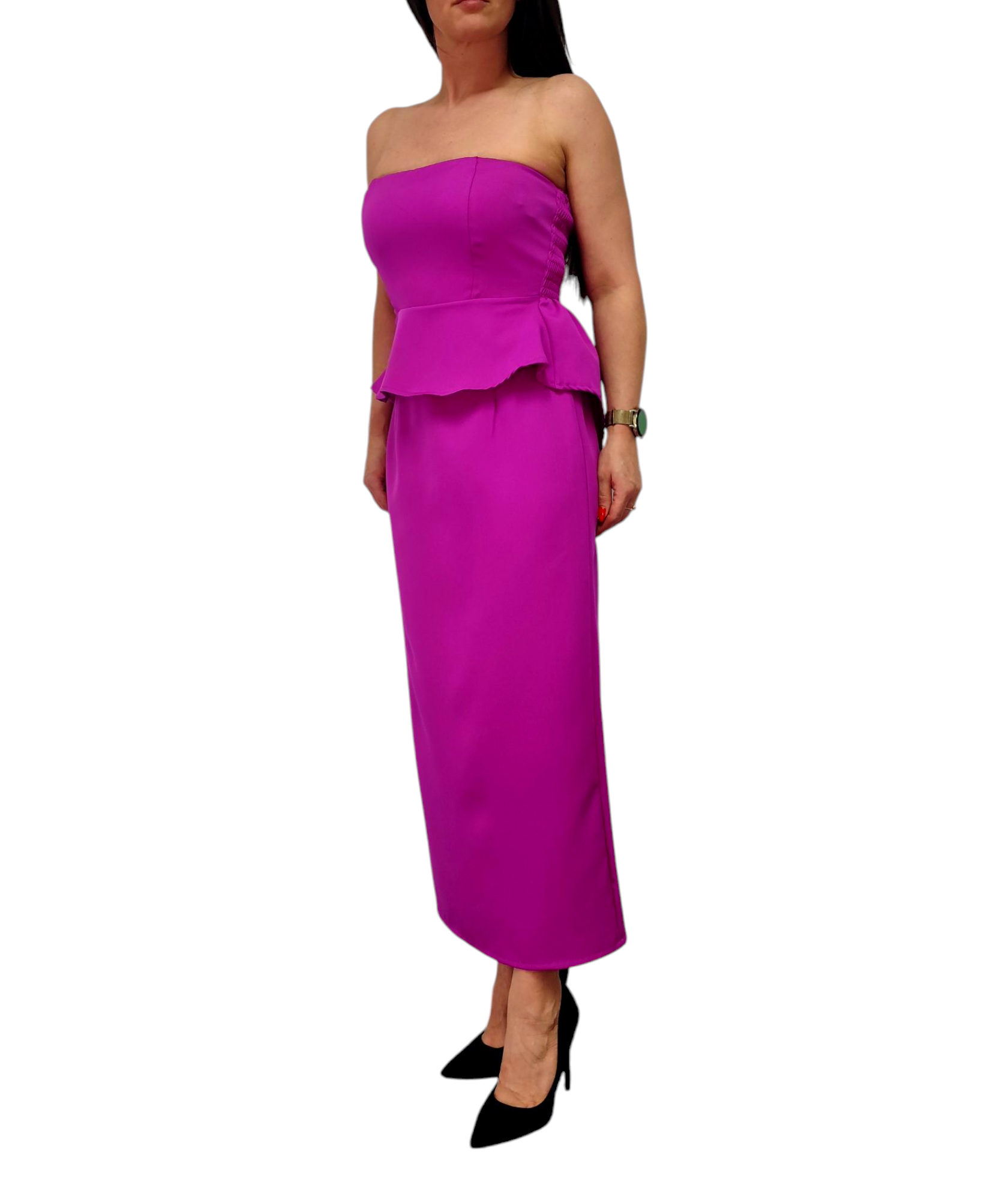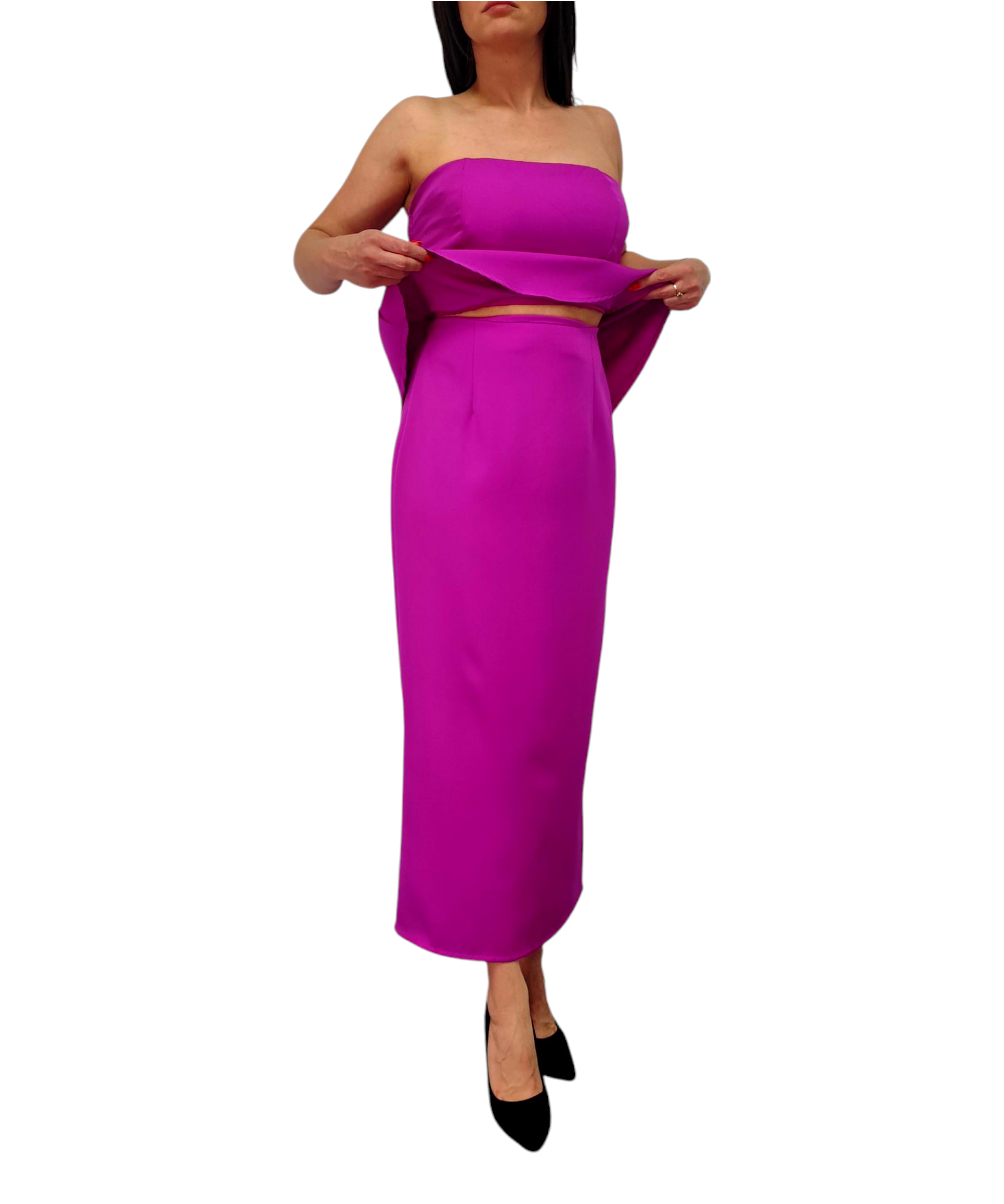 Komplet Damski Elegancki Baskinka Top Spódnica Fuksja