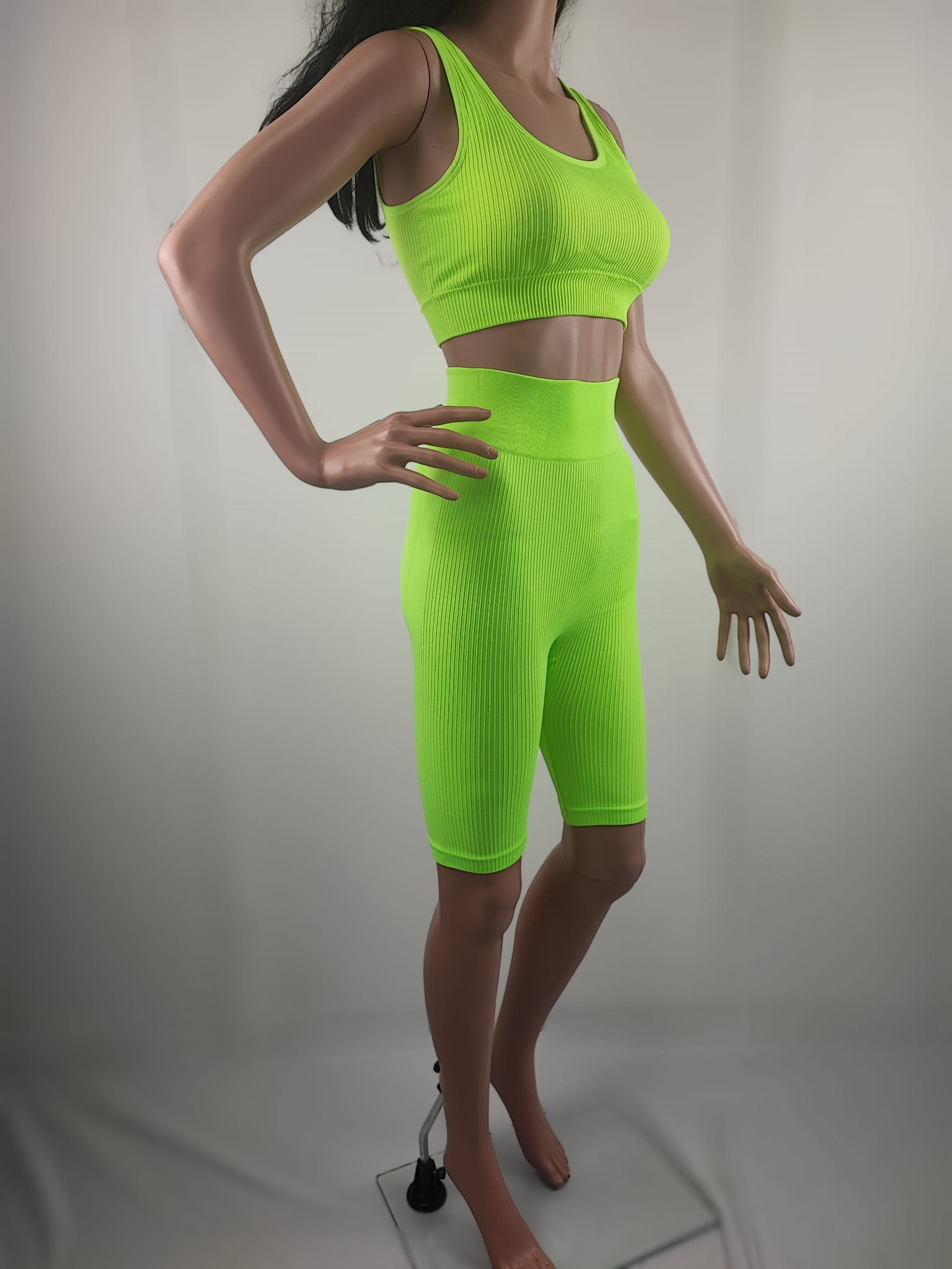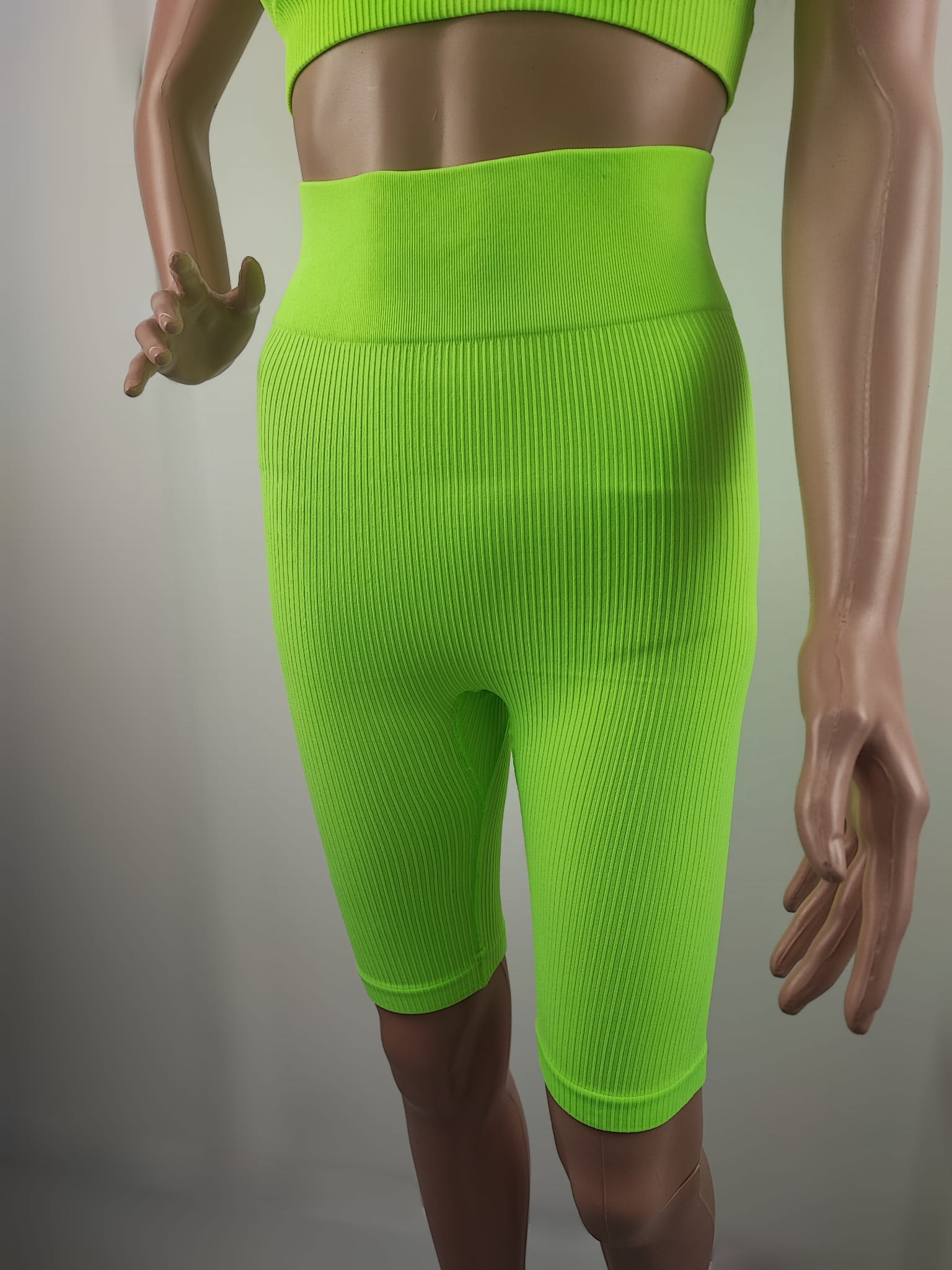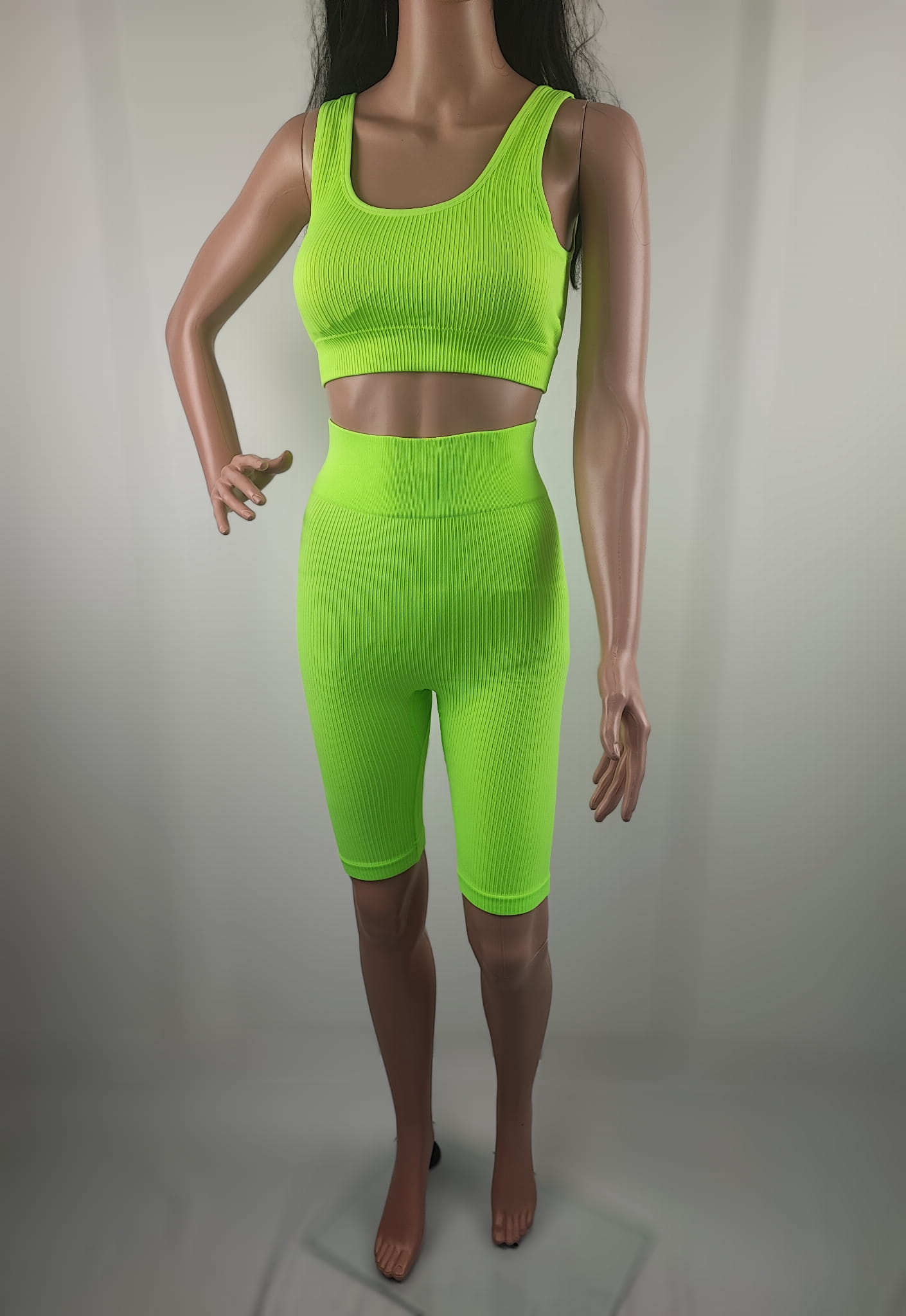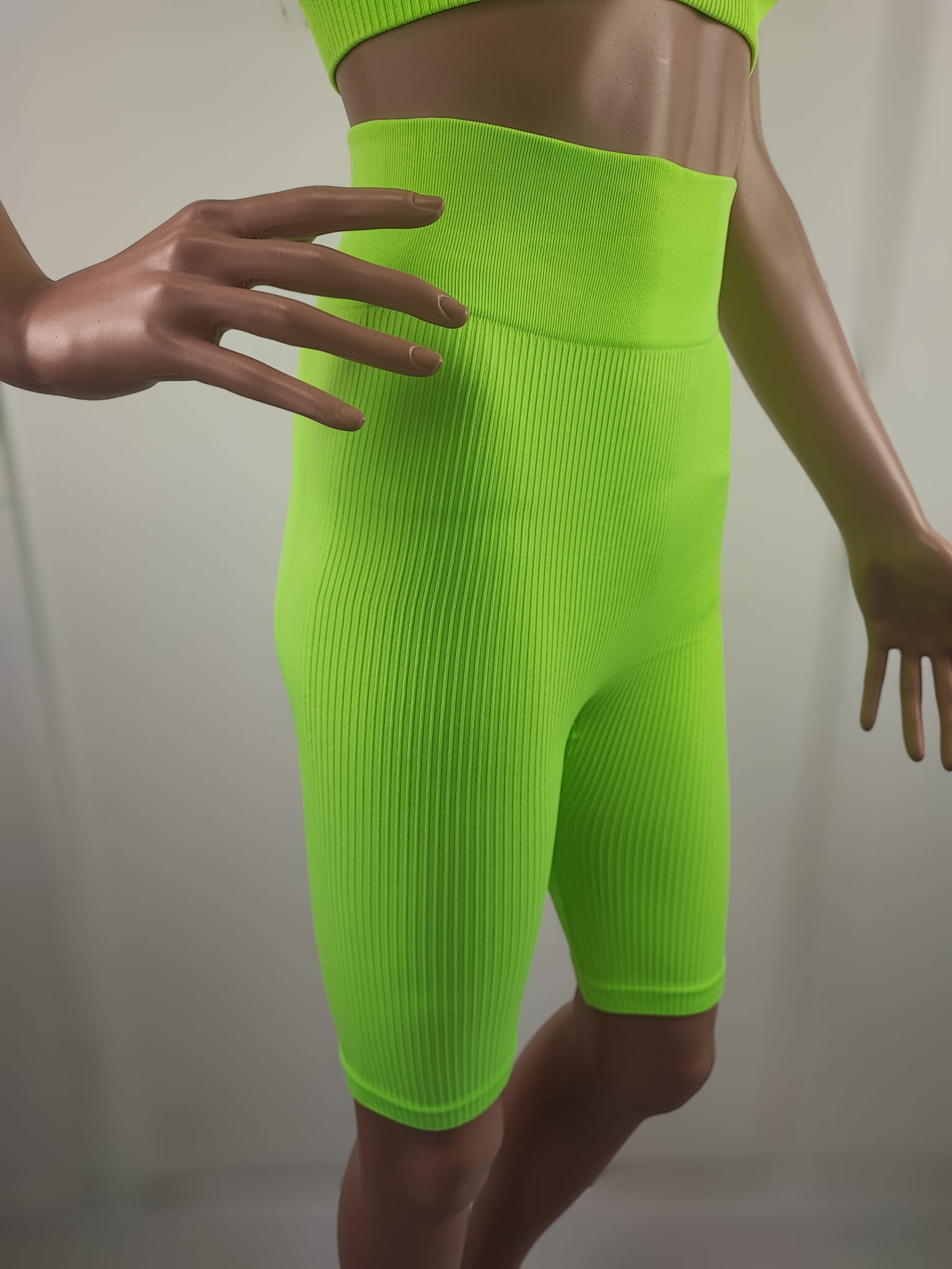 Seledynowy prążkowany komplet: top + legginsy typu kolarki