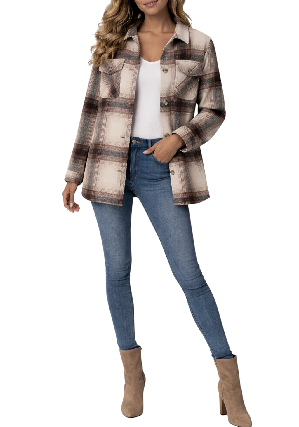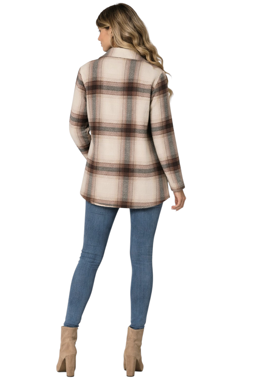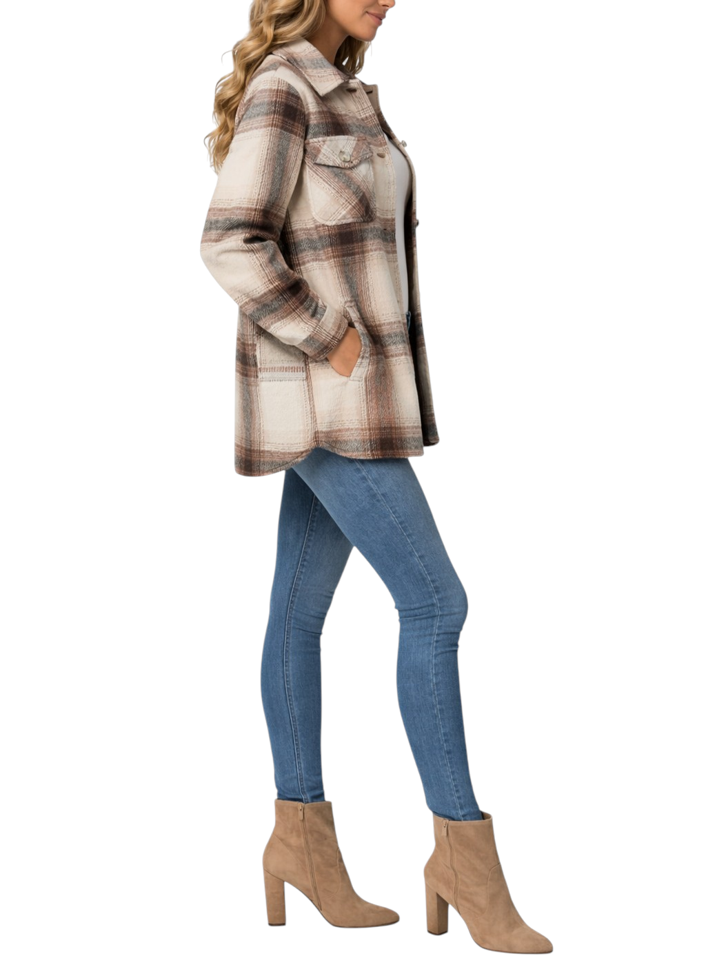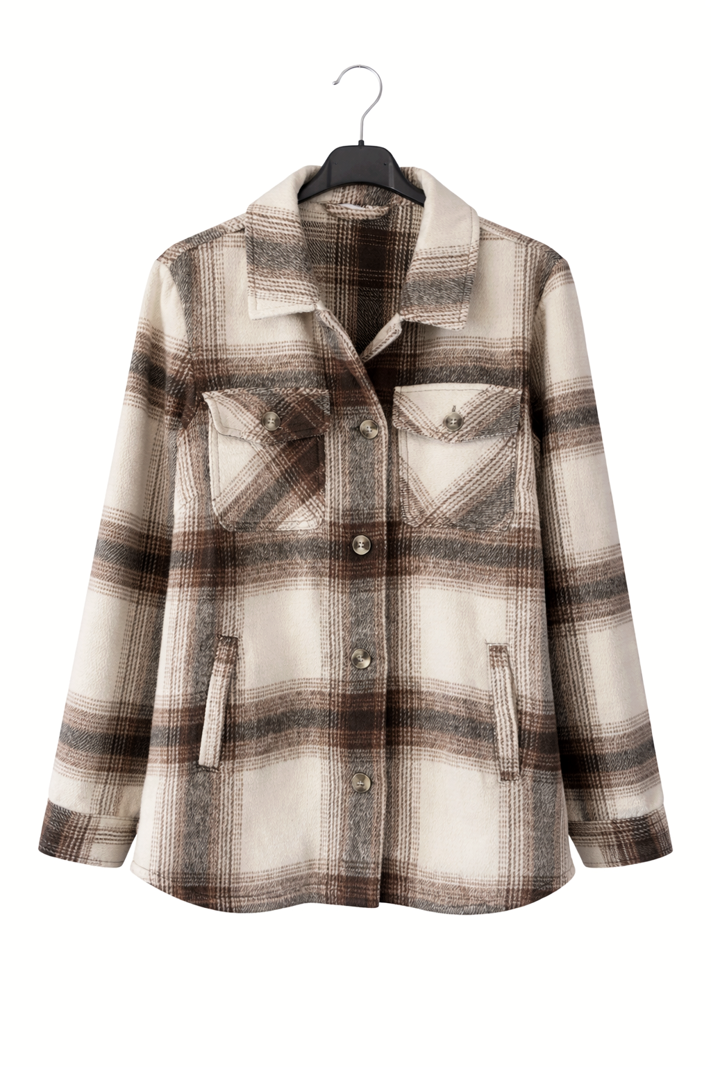 Koszula Damska w Kratę Grubsza Kurtka Ciepła z Kieszeniami Wiosna (1)
