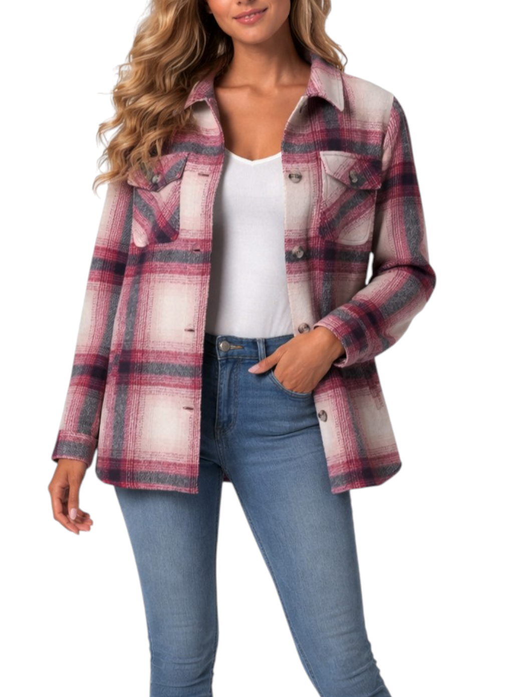 Koszula Damska w Kratę Grubsza Kurtka Ciepła z Kieszeniami Wiosna