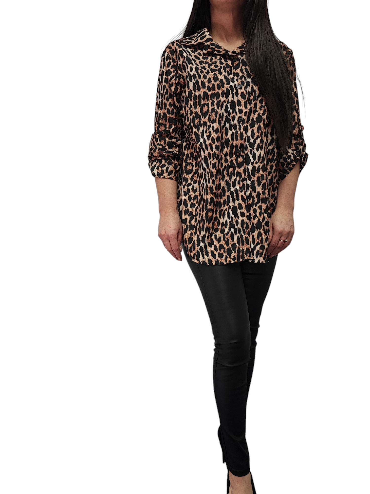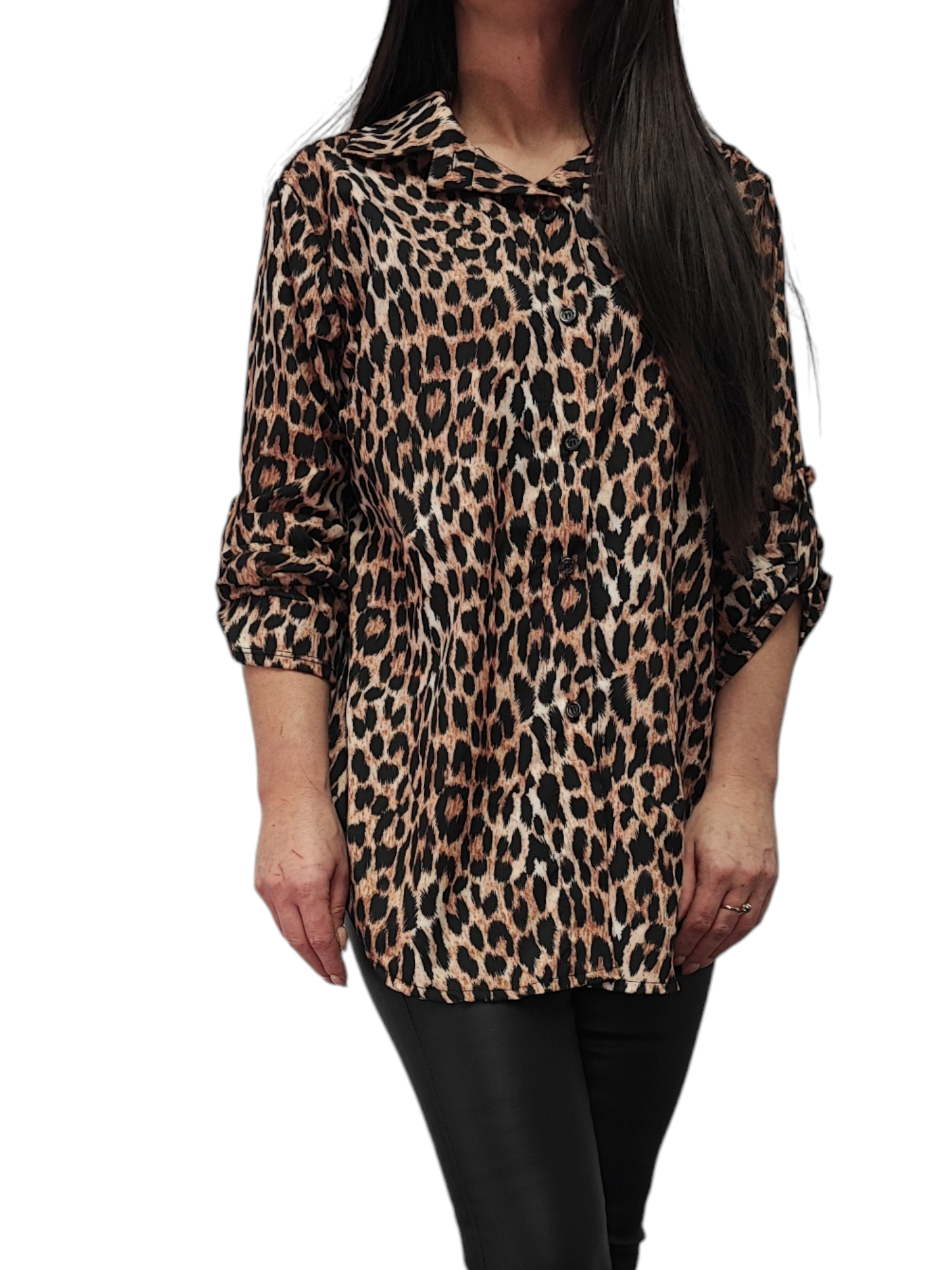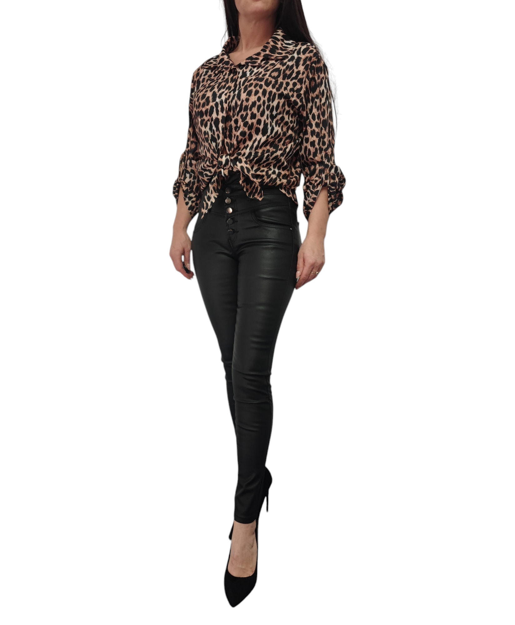 Klasyczna Koszula w przepiękną panterkę w kolorze czarno-brązowym
