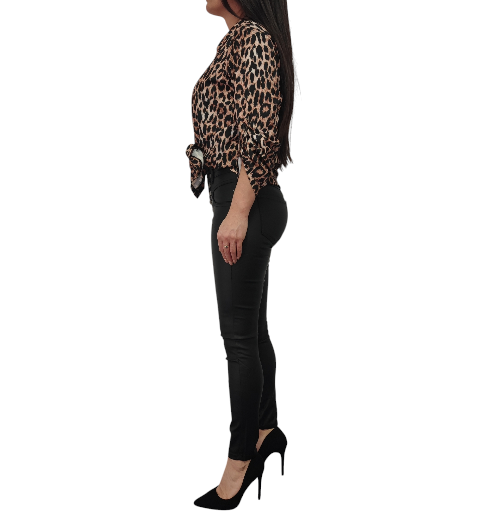 Koszula Damska w Panterkę Długi Rękaw / Regulacja 3/4 Rękaw Czarno-Brązowa