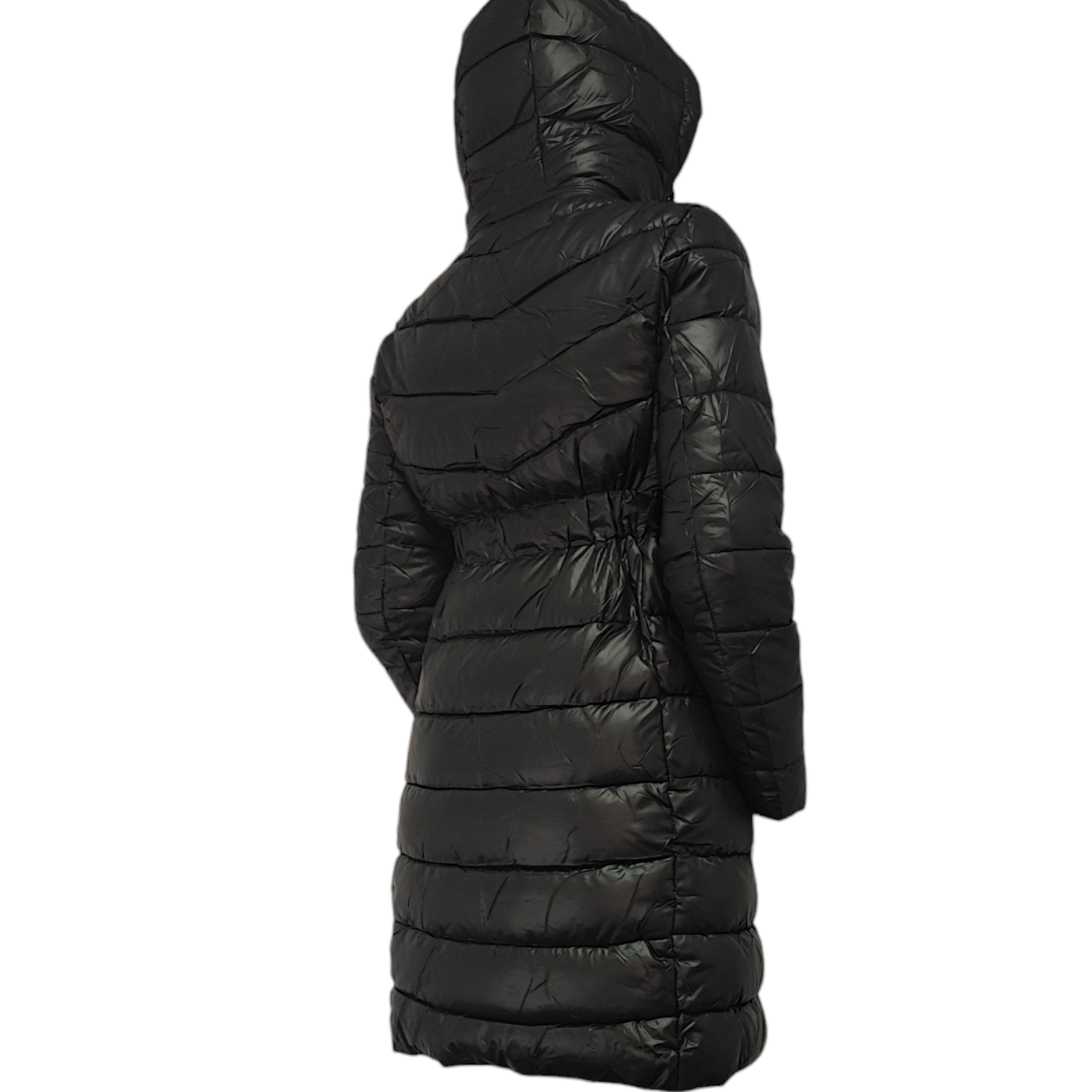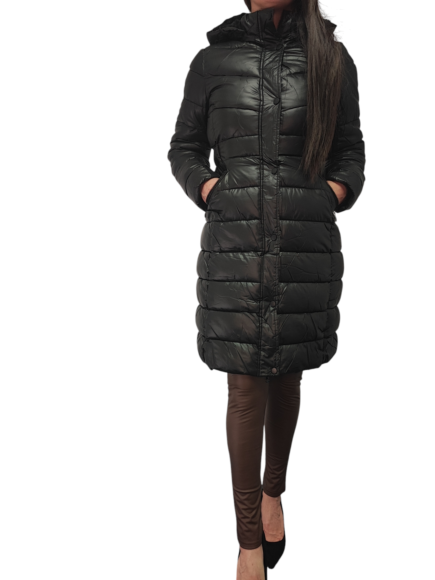 Kurtka Pikowana Odpinany Kaptur Ciepła Długa Płaszcz Zima Czarna