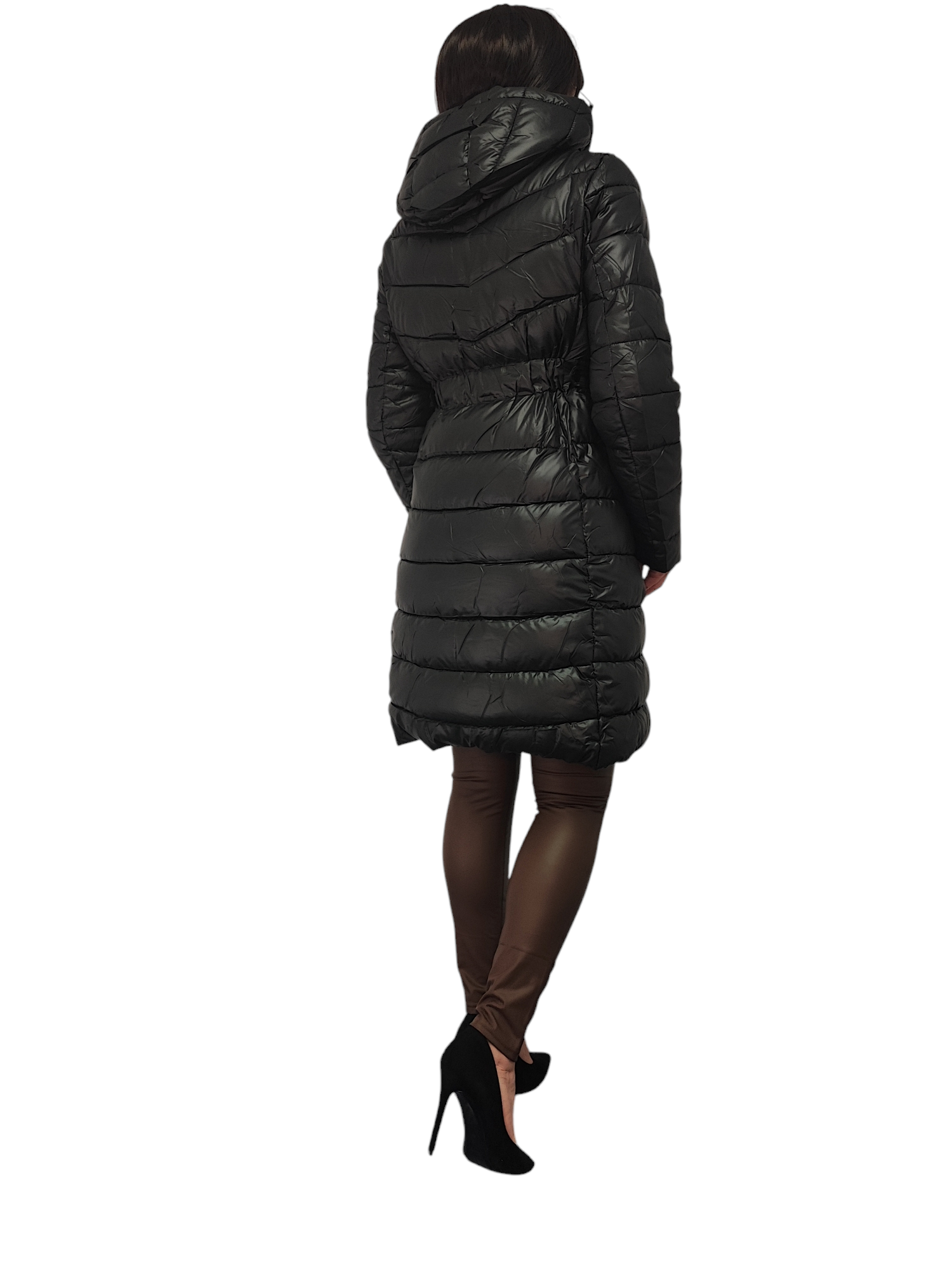 Kurtka zimowa z odpinanym kapturem pikowany materiał, dłuższy krój.