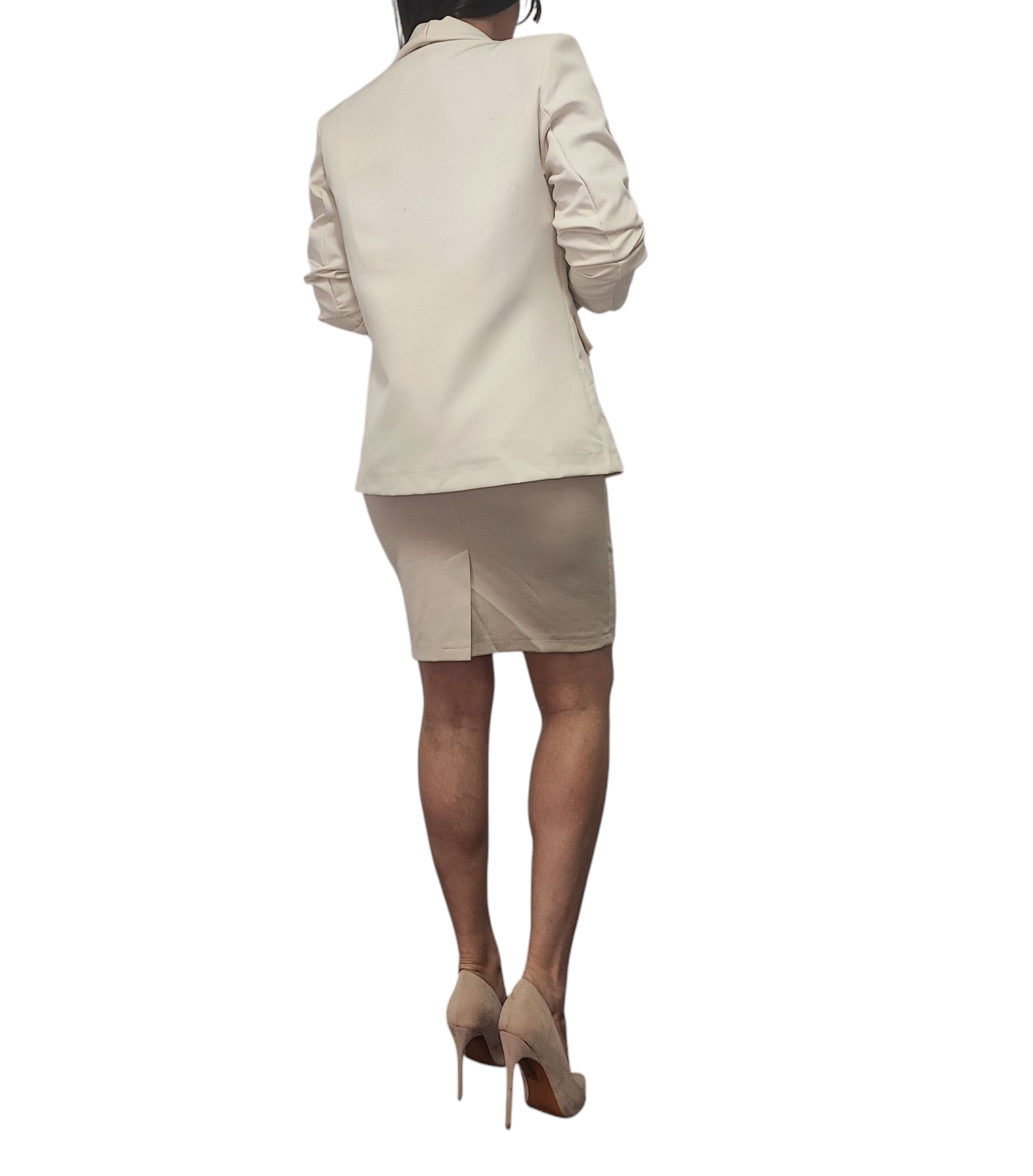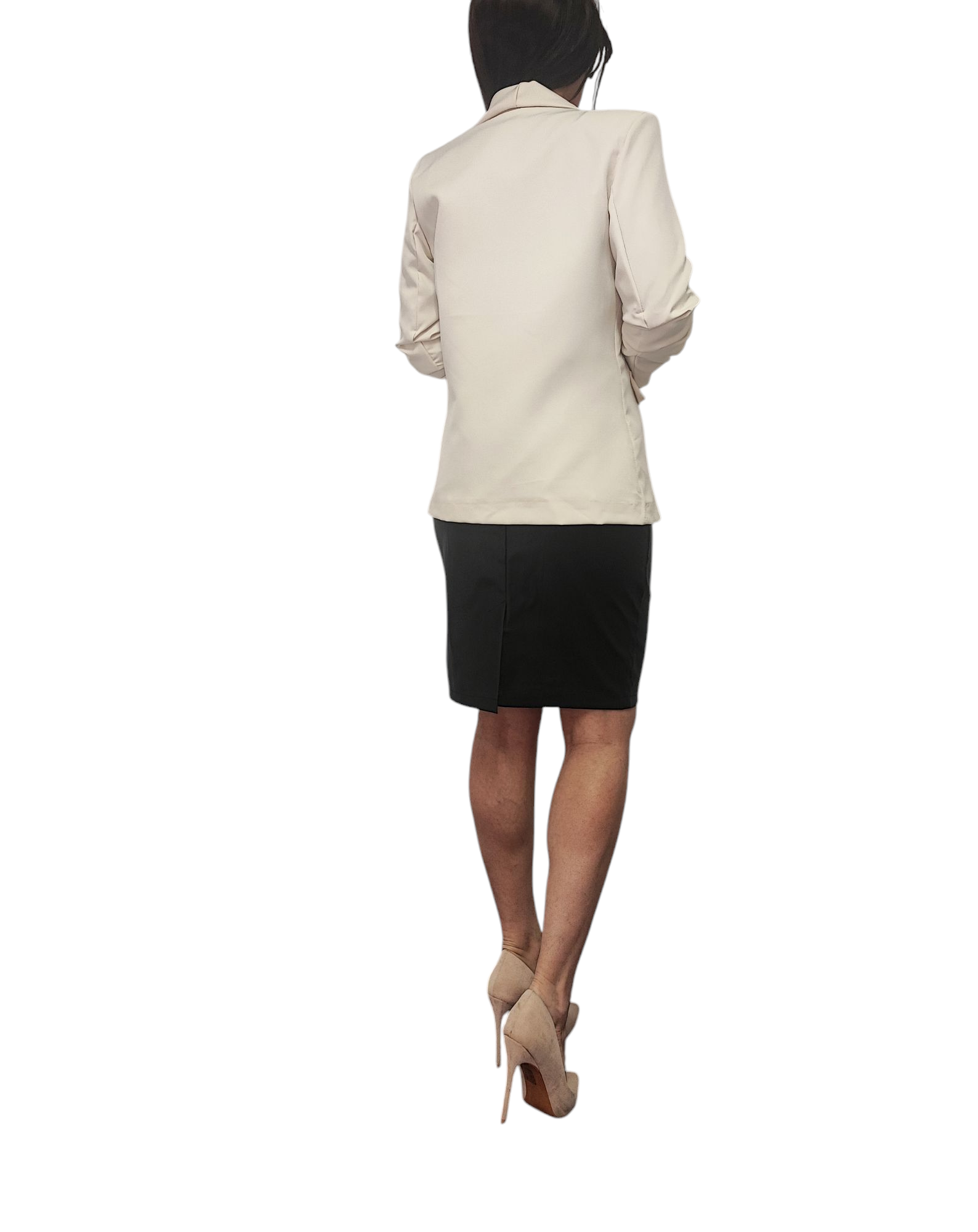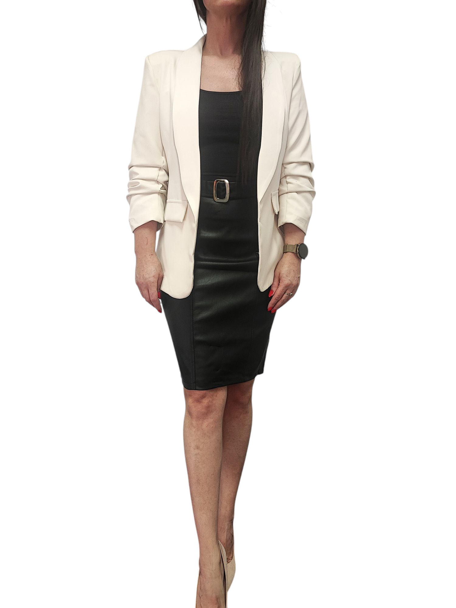 Marynarka Damska Klasyczna Żakiet Narzutka Rękaw 3/4 Beżowa