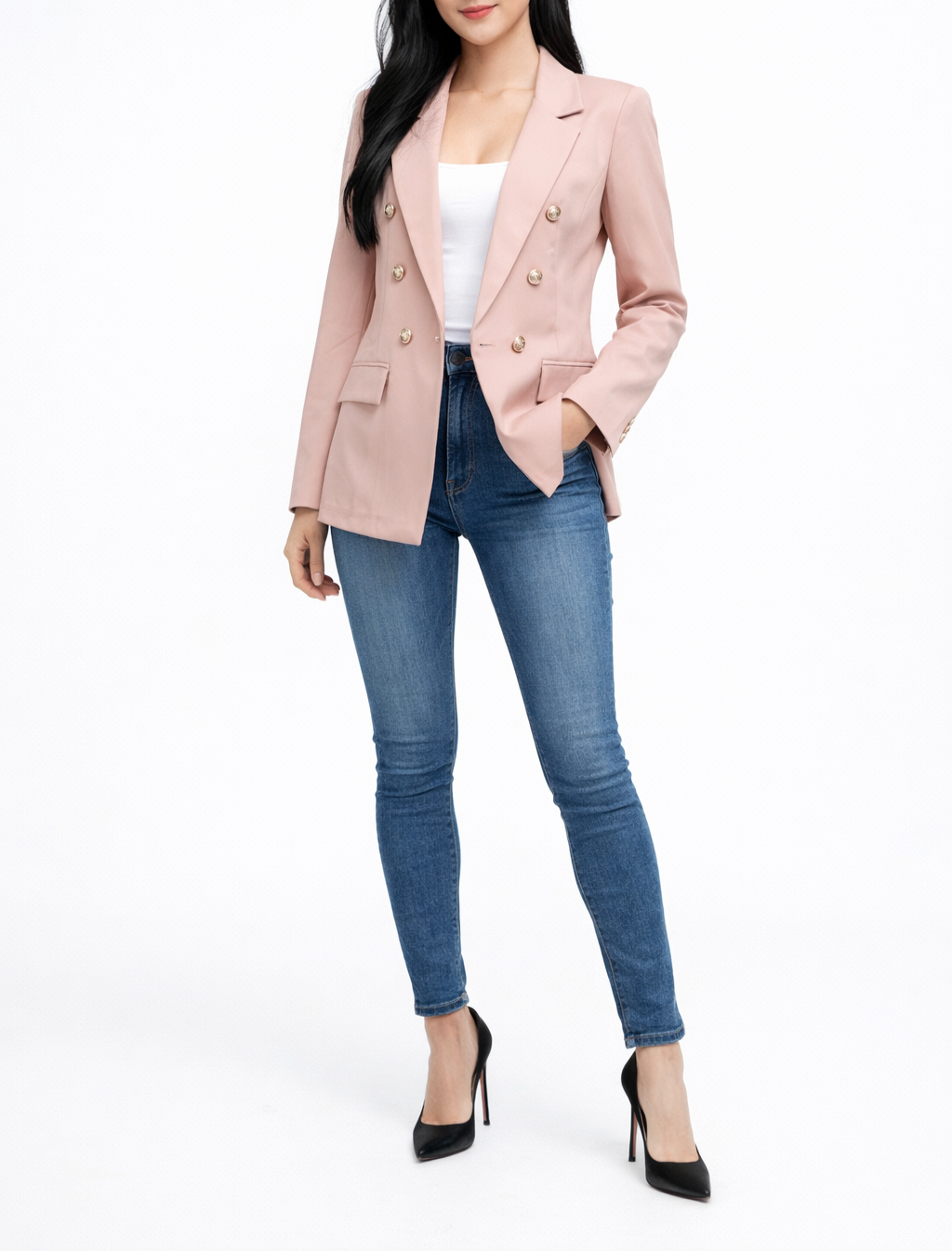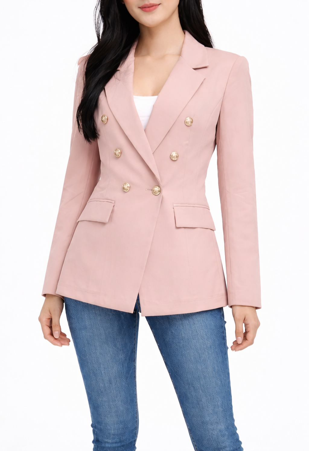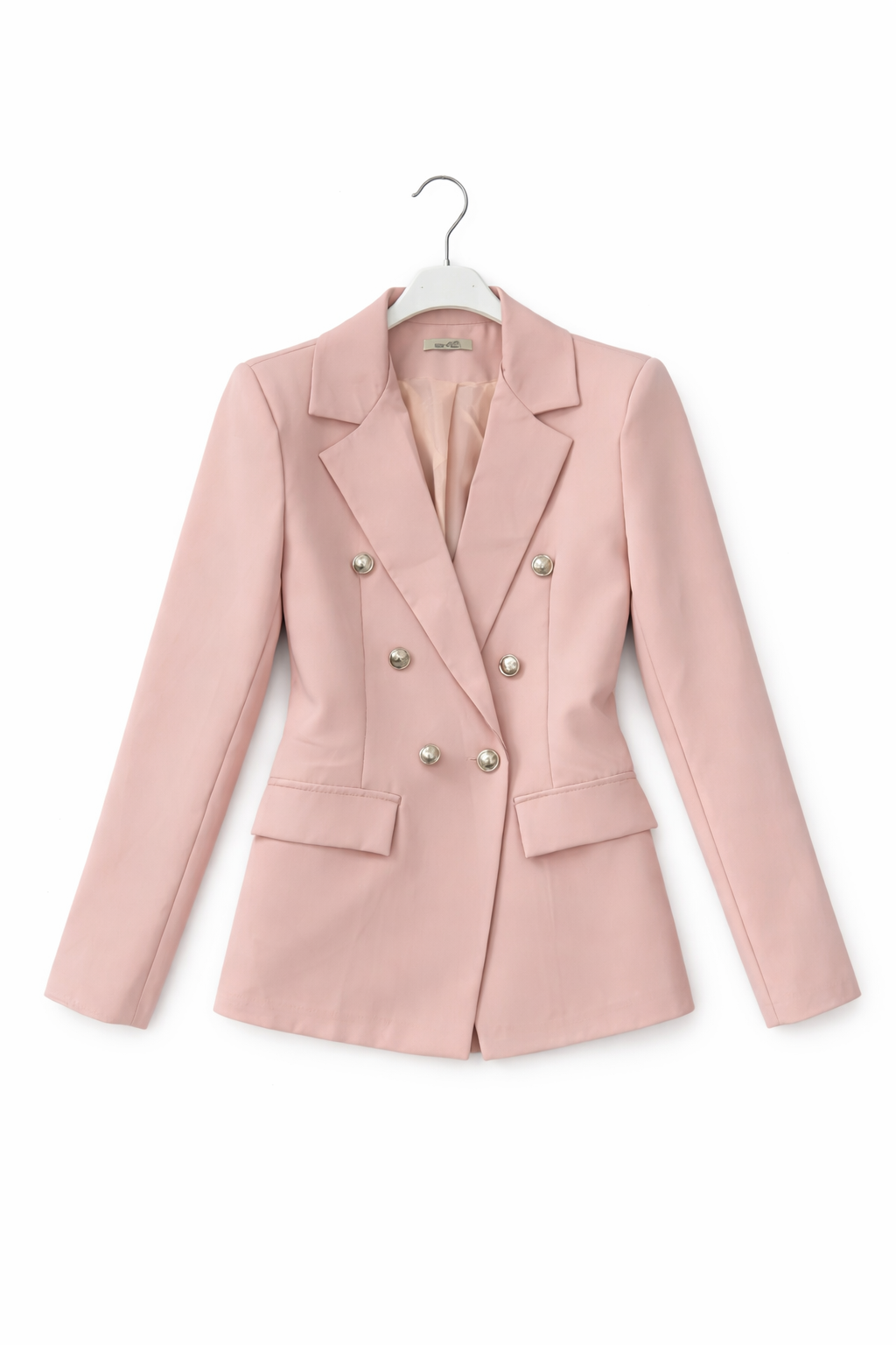 Marynarka Damska Żakiet Długi rękaw Złote Guziki Wiosna Lato Różowa