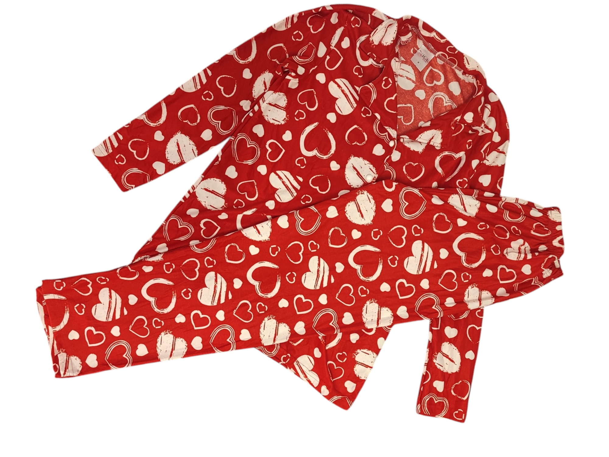 Piżama Rozpinana Ciepła Bawełna Serca Na Prezent Czerwono/Biała