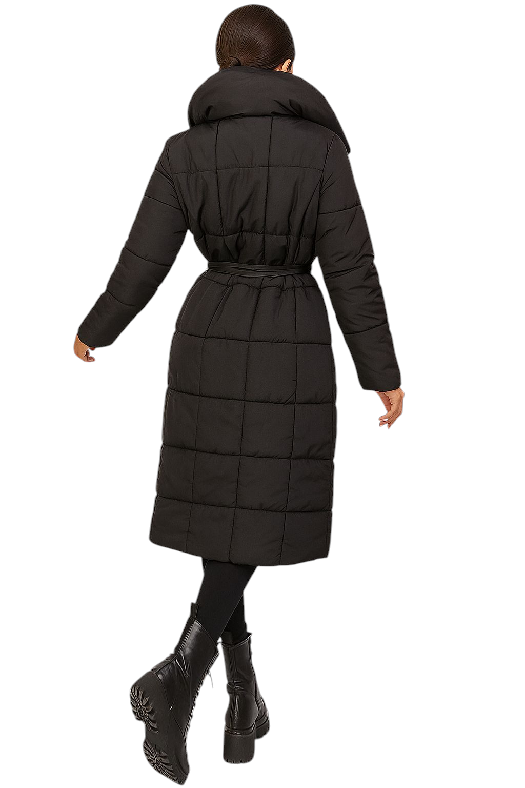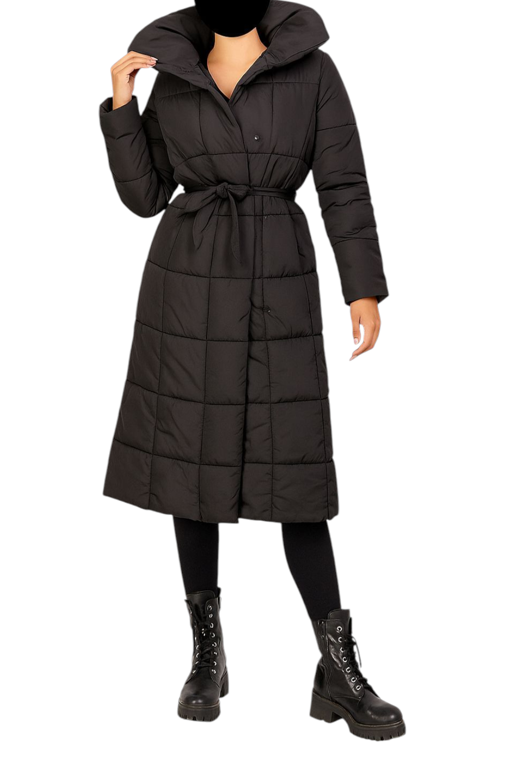 Płaszcz Damski Pikowany Długi Kurtka Ciepła Bez Kaptura Jesień-Zima Czarny