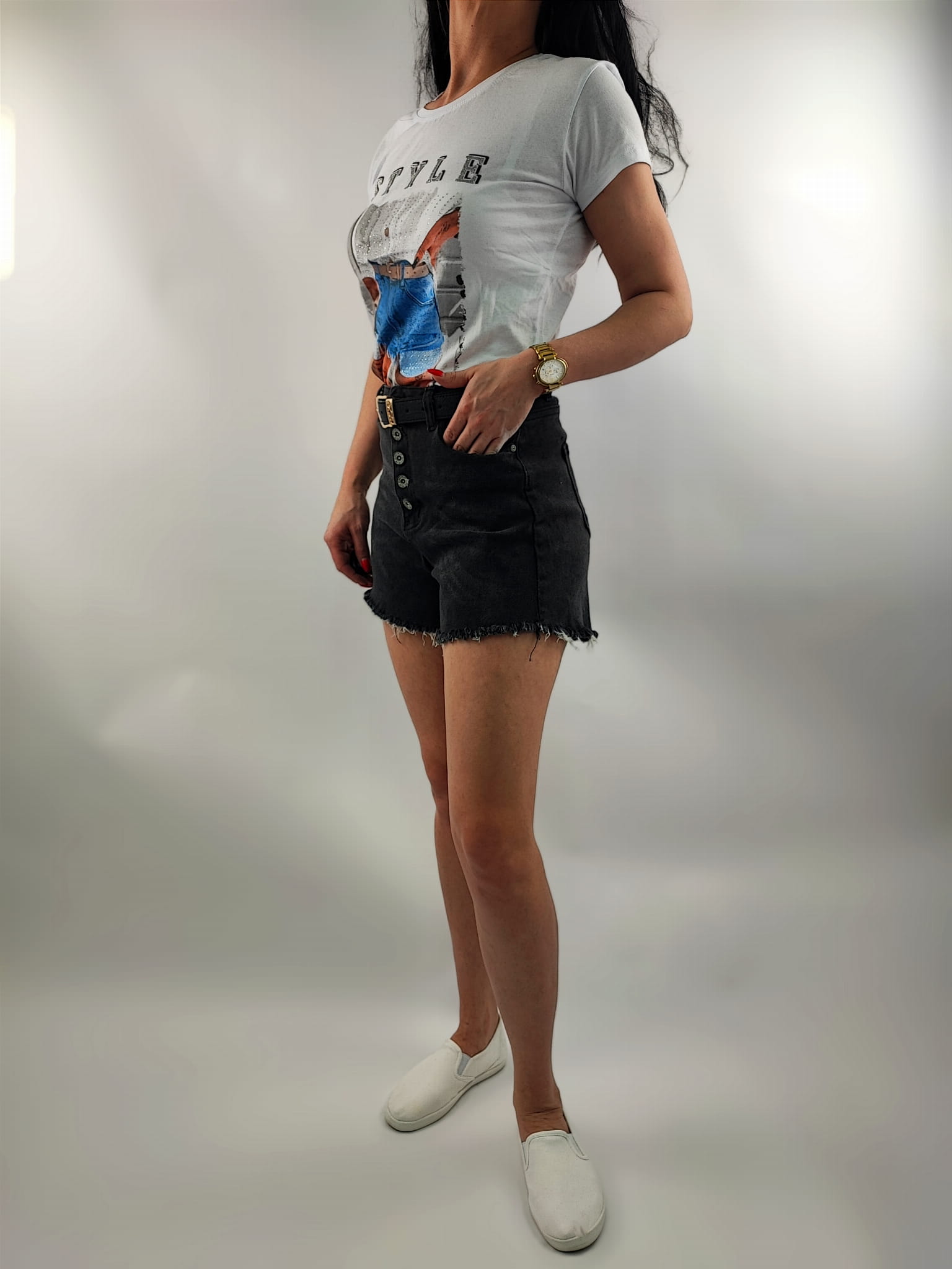 Klasyczne Jeansowe spodenki z wysokim stanem.