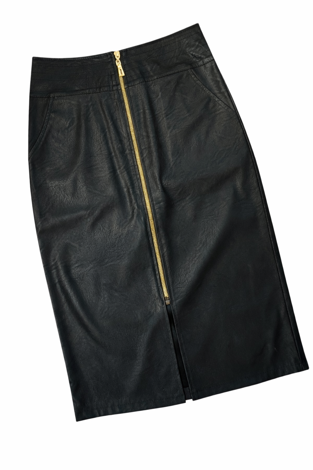 Spódnica Damska Eko Skóra Klasyczna z Zamkiem ZIP Matowa Midi Czarna