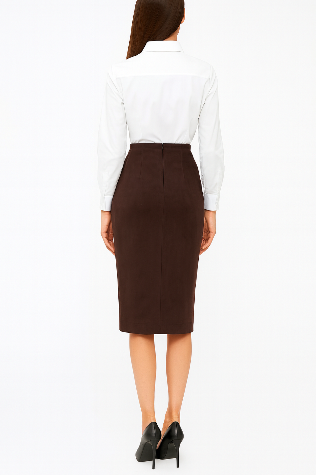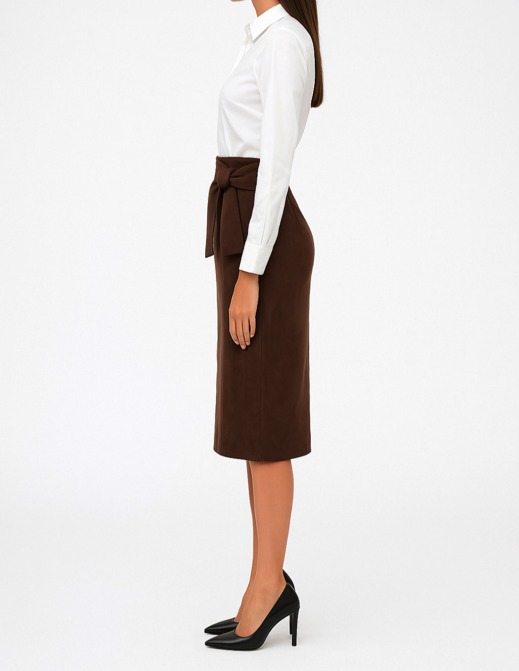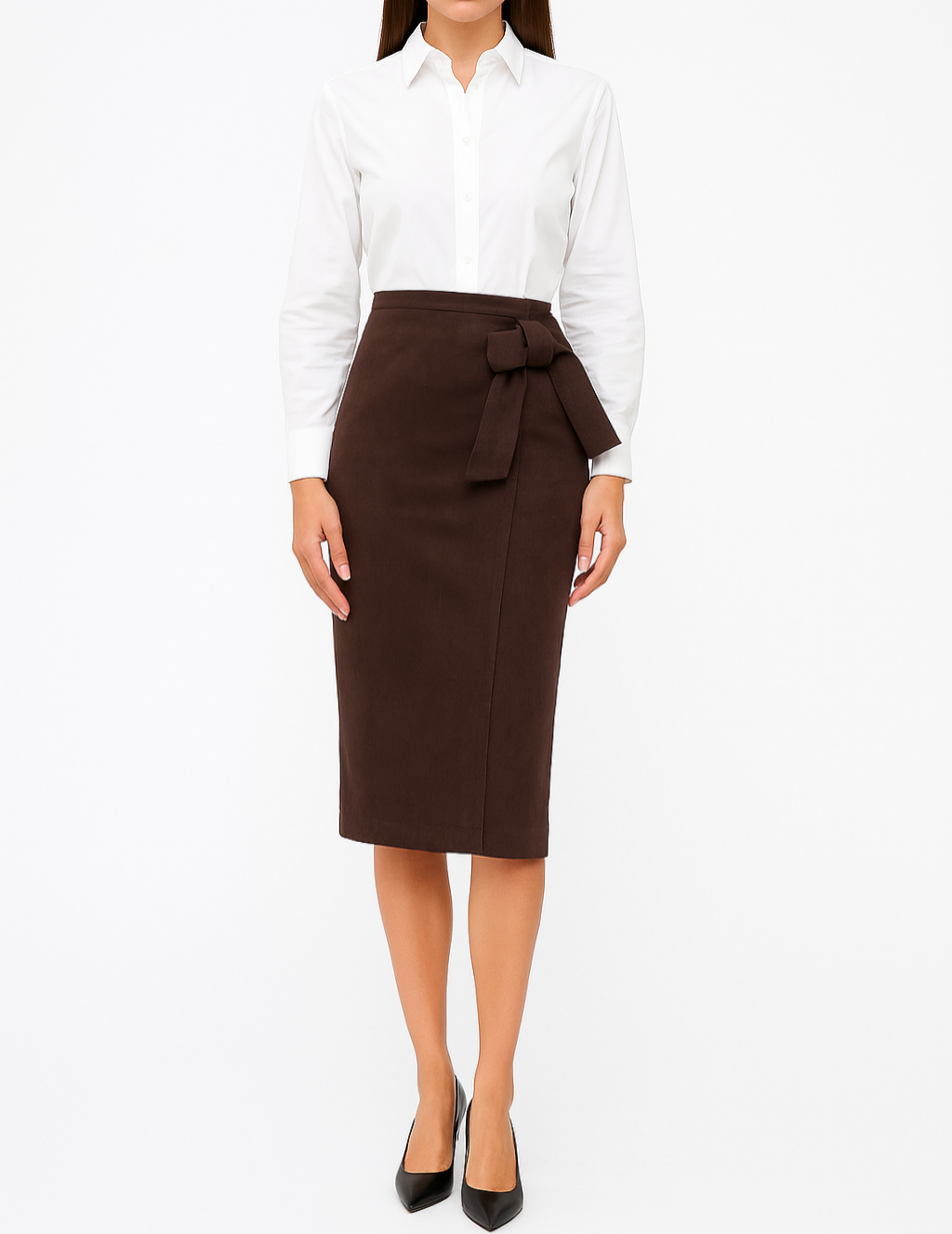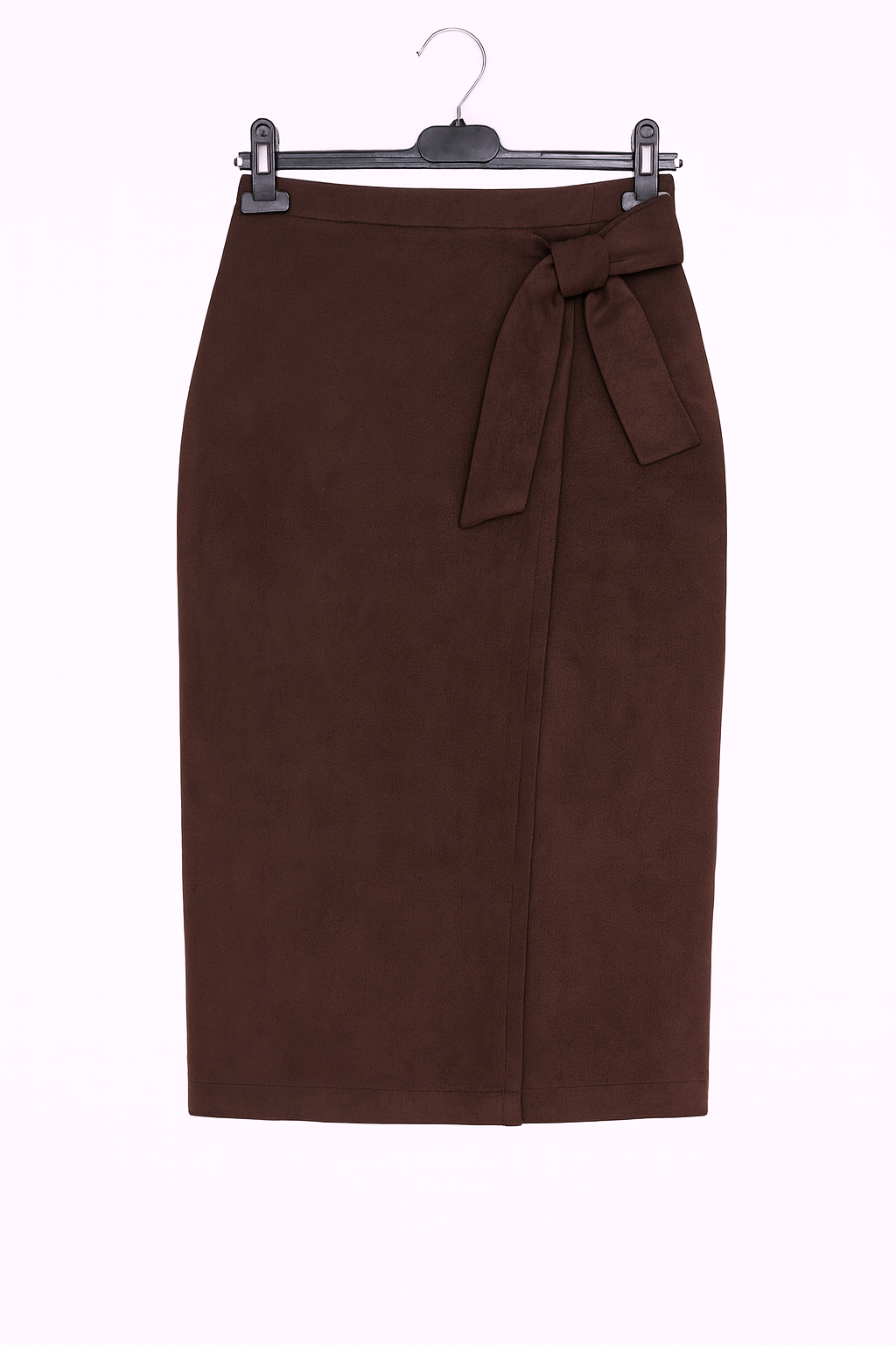 Spódnica Damska Zamszowa Klasyczna Elegancka Prosta z Kokardą Midi Śliwkowa