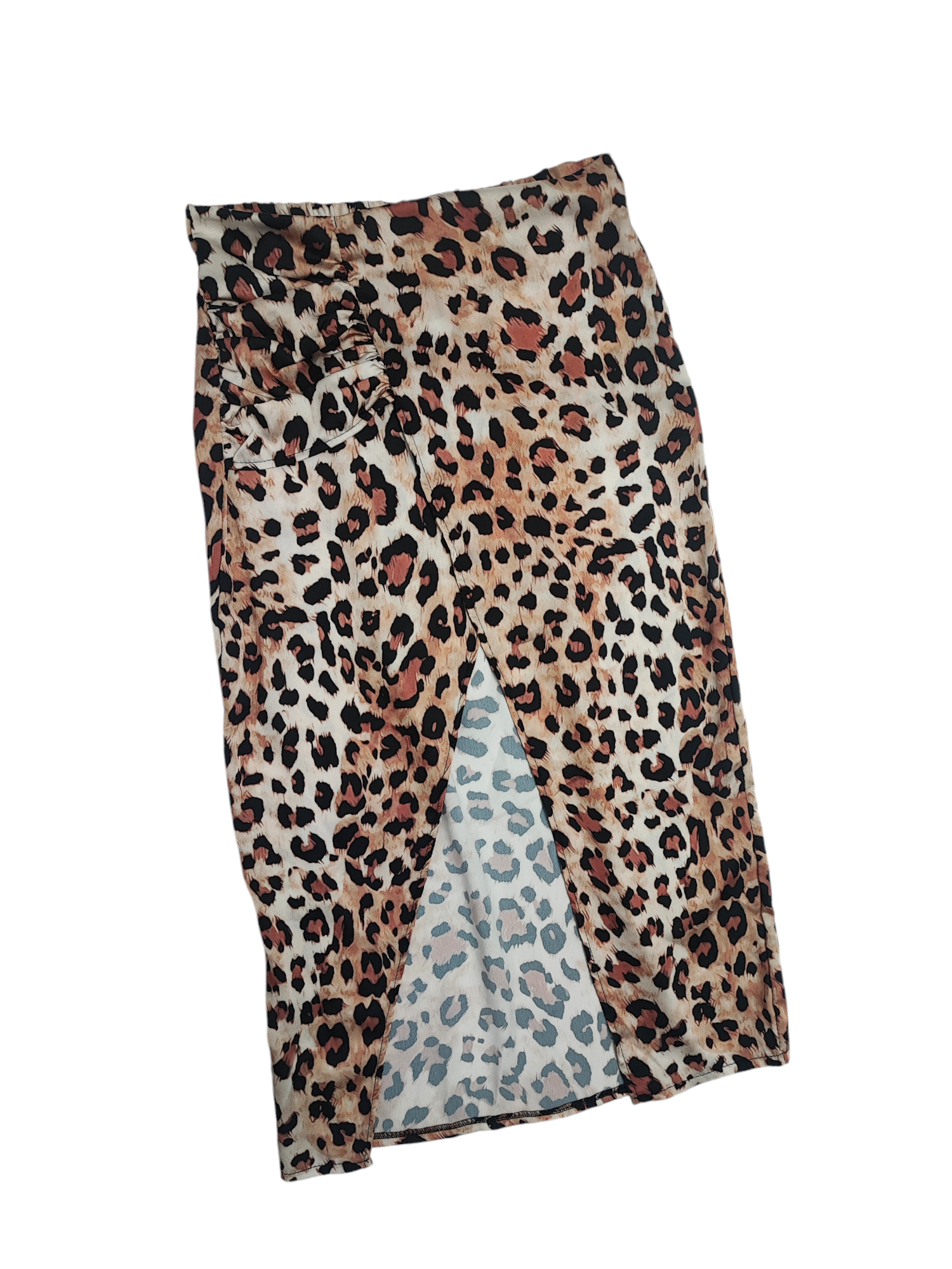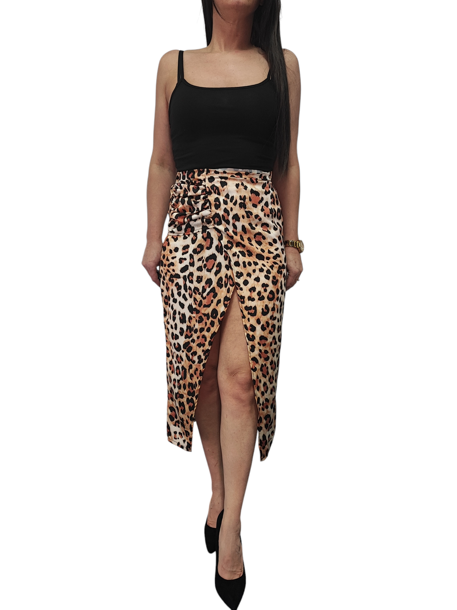 Spódnica Damska z Rozcięciem Asymetryczna w Panterkę Midi Czarno-Brązowa