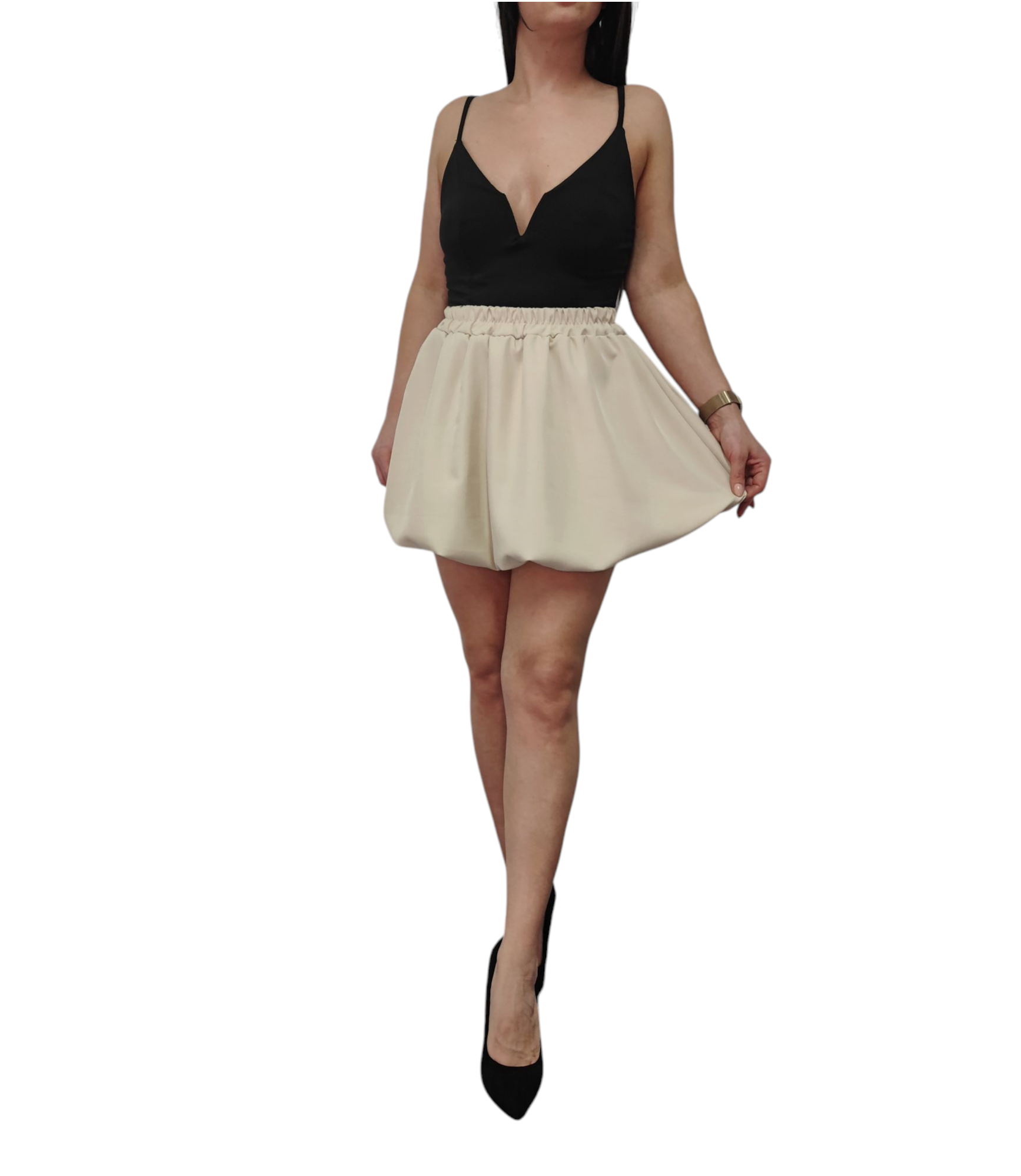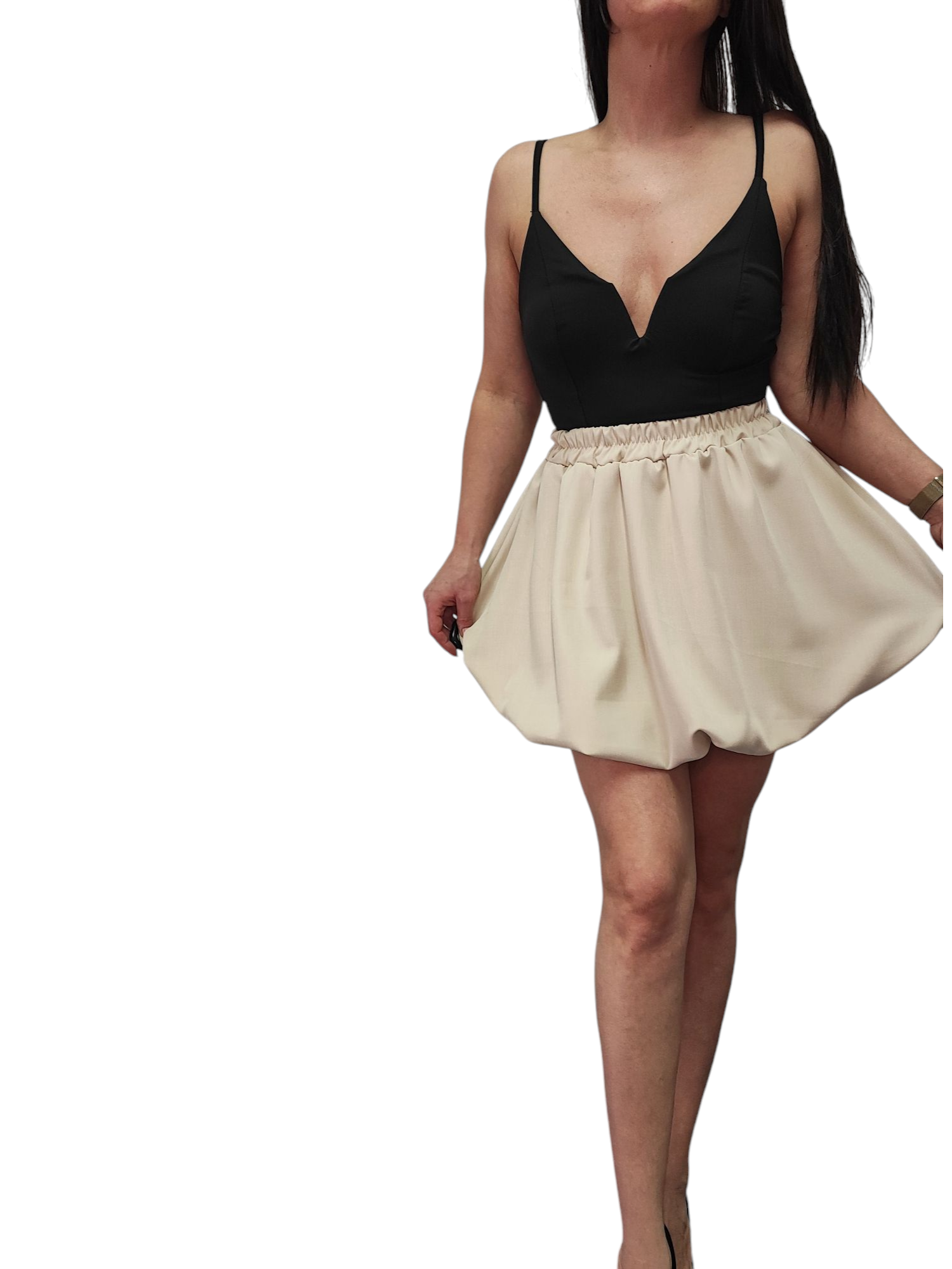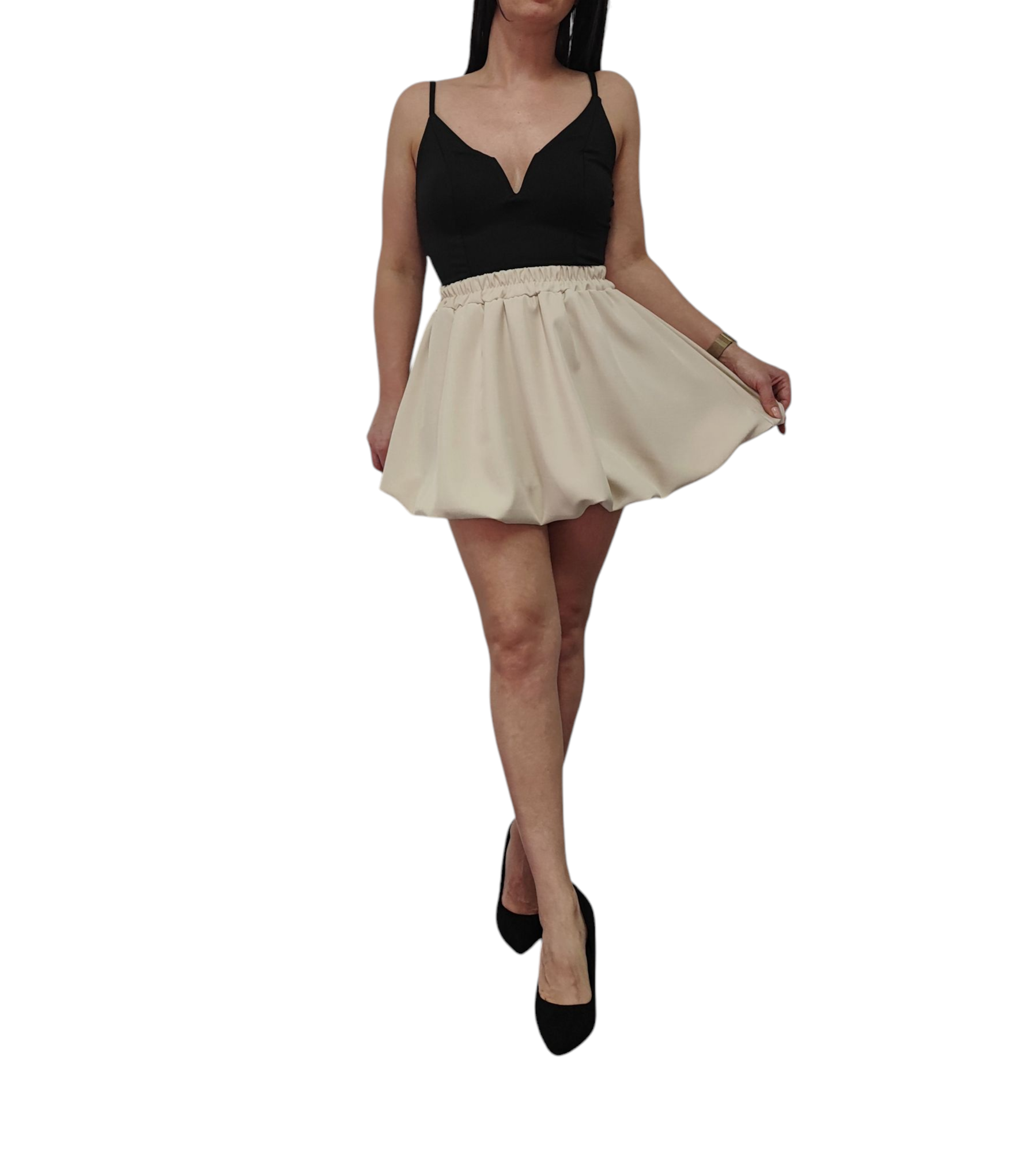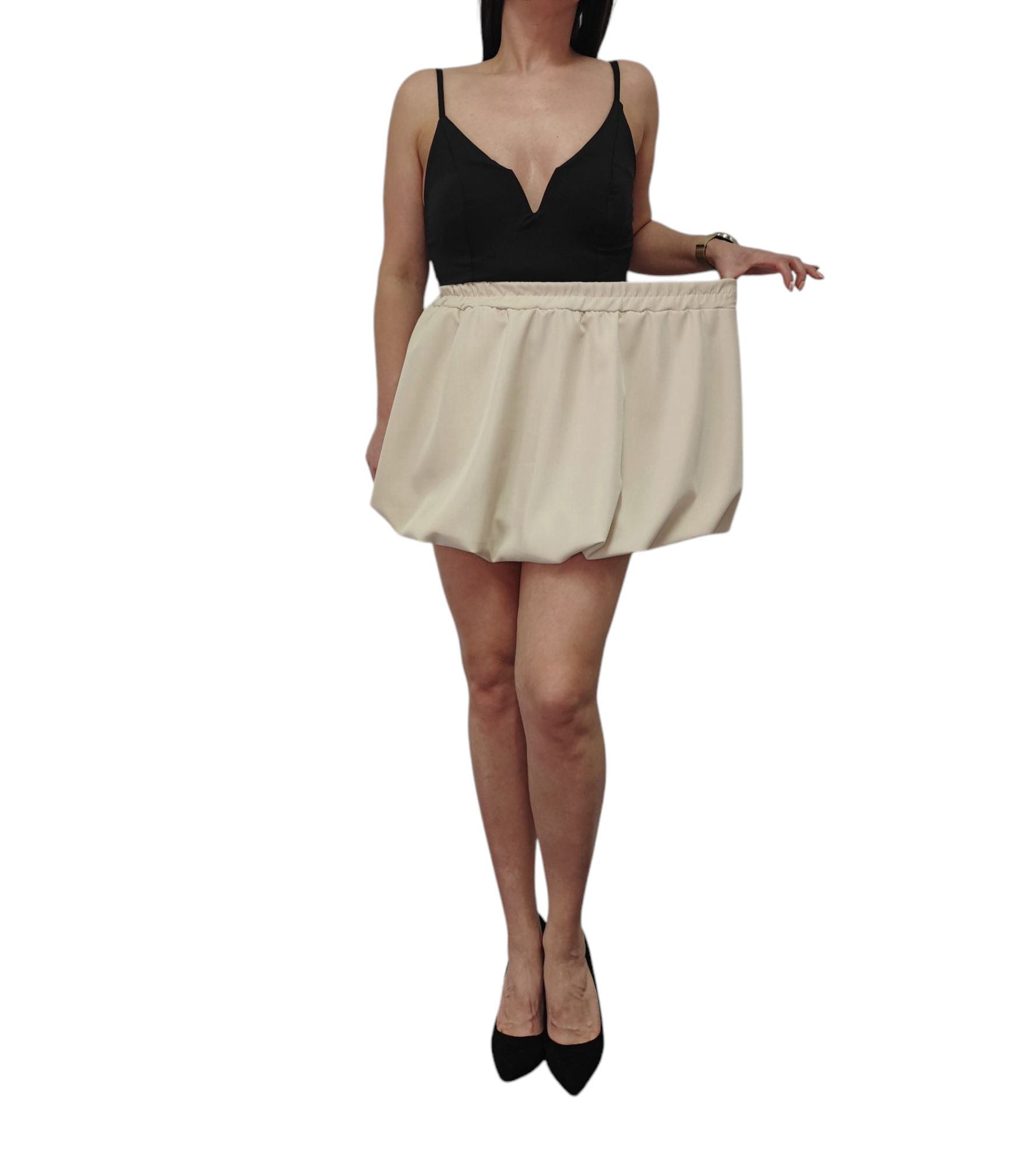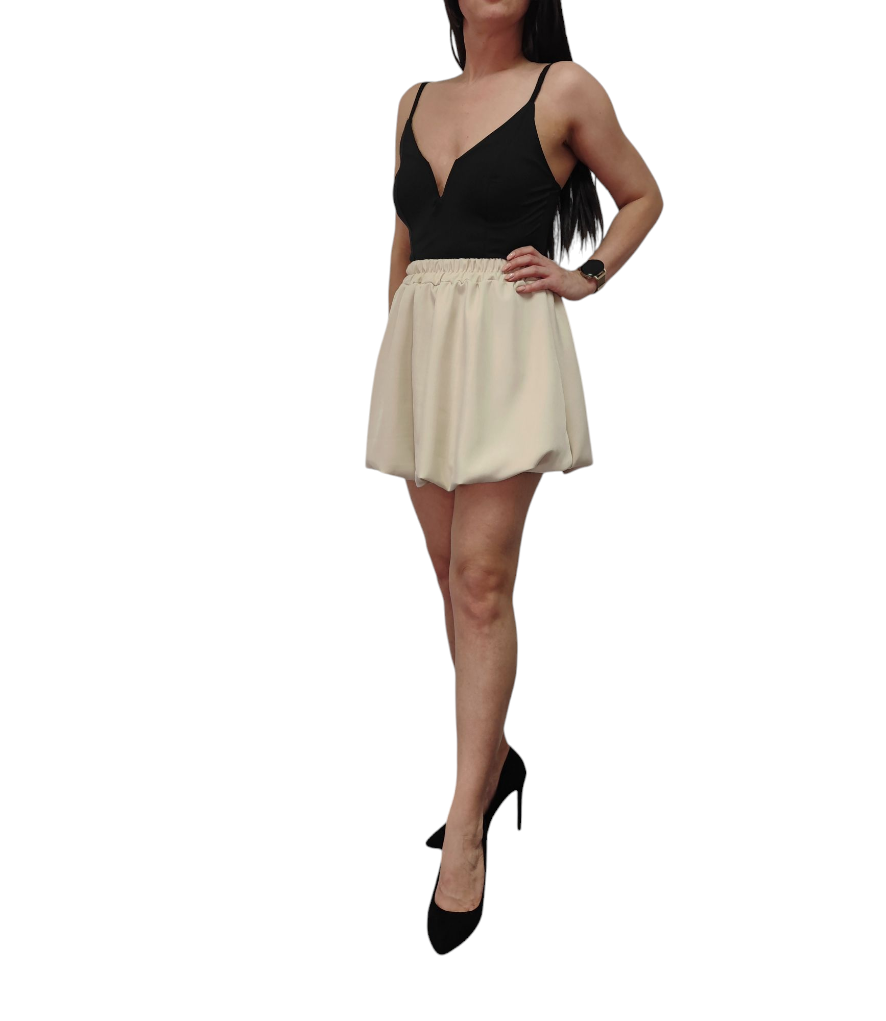 Spódnica Mini Bombka Rozkloszowana Gumka w Pasie Wiosna Lato Beżowa