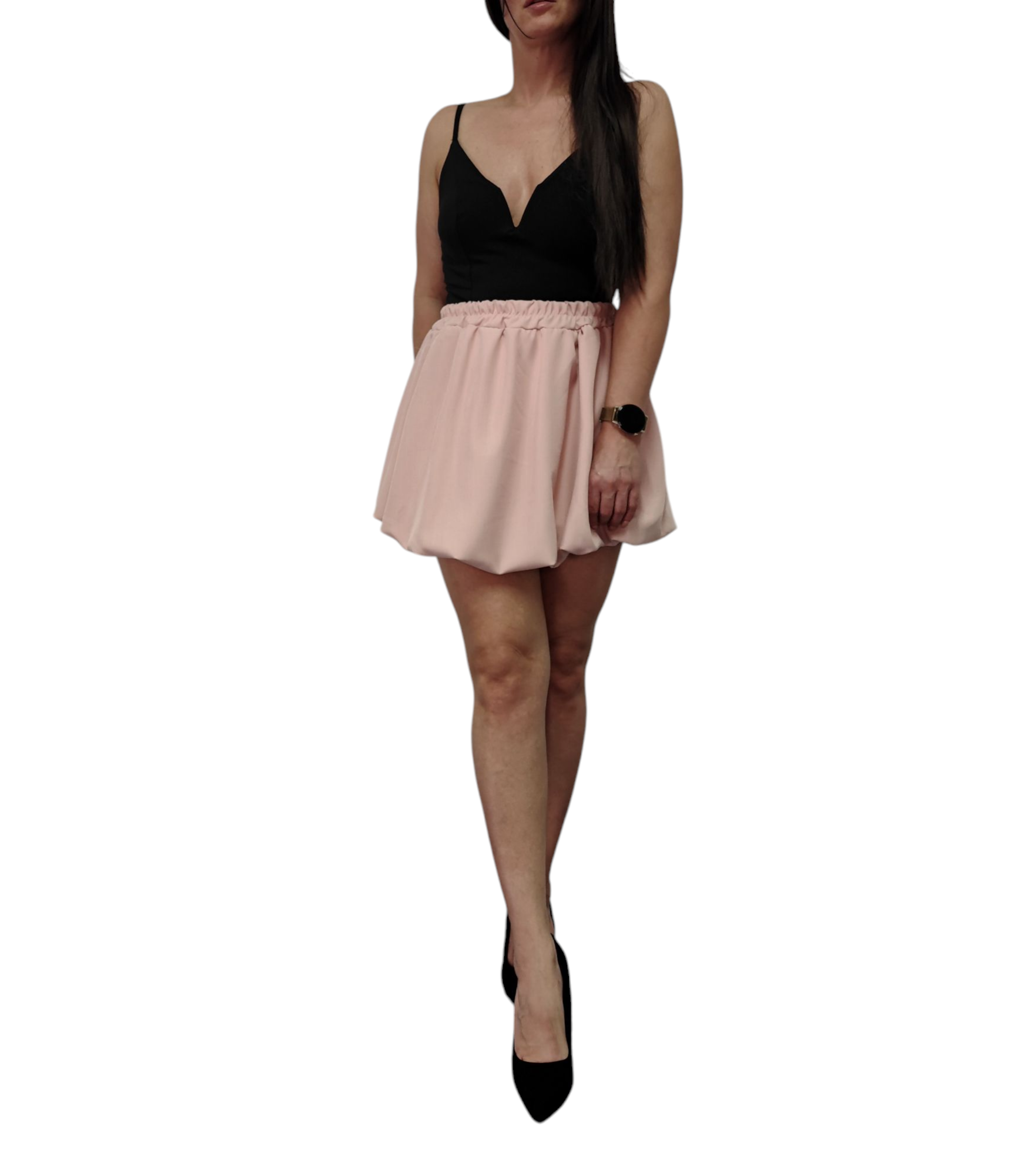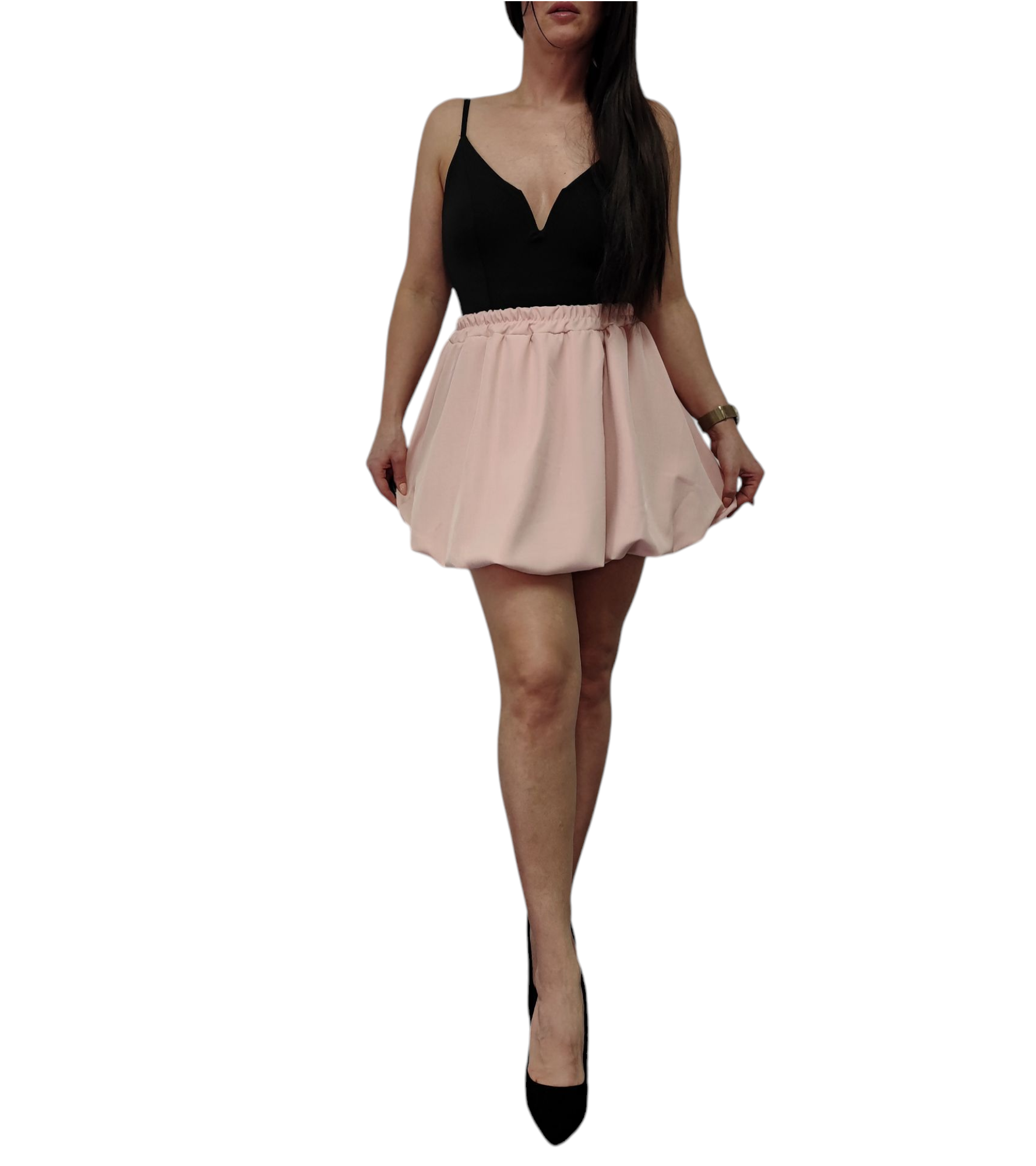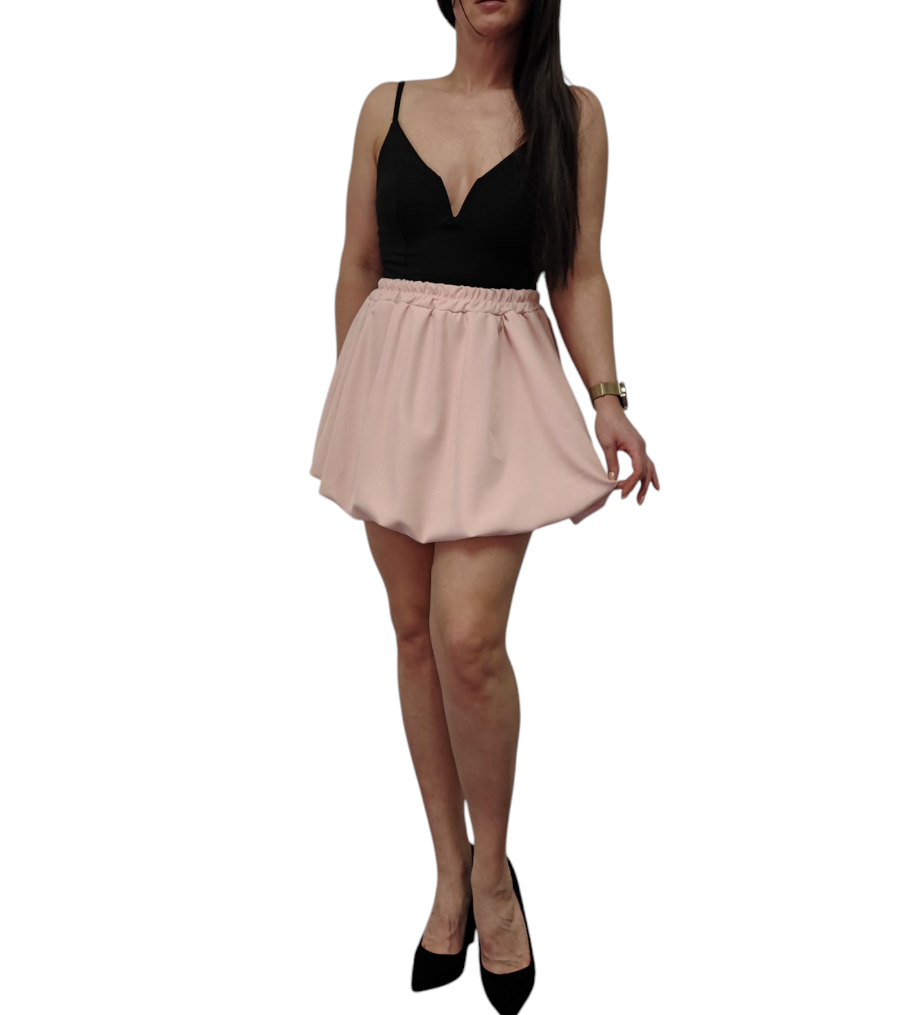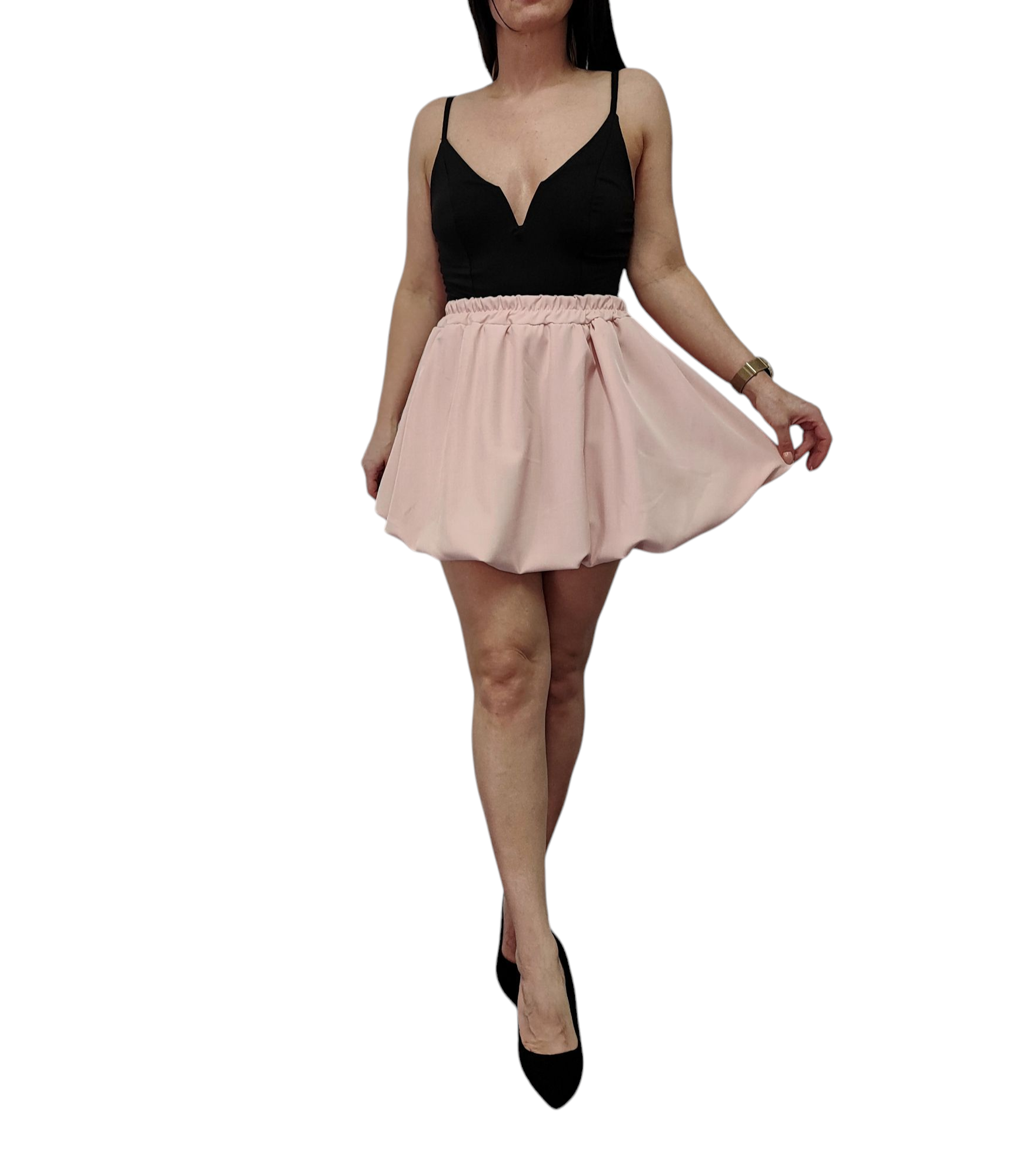 Spódnica Mini Bombka Rozkloszowana Gumka w Pasie Wiosna Lato Pudrowy Róż