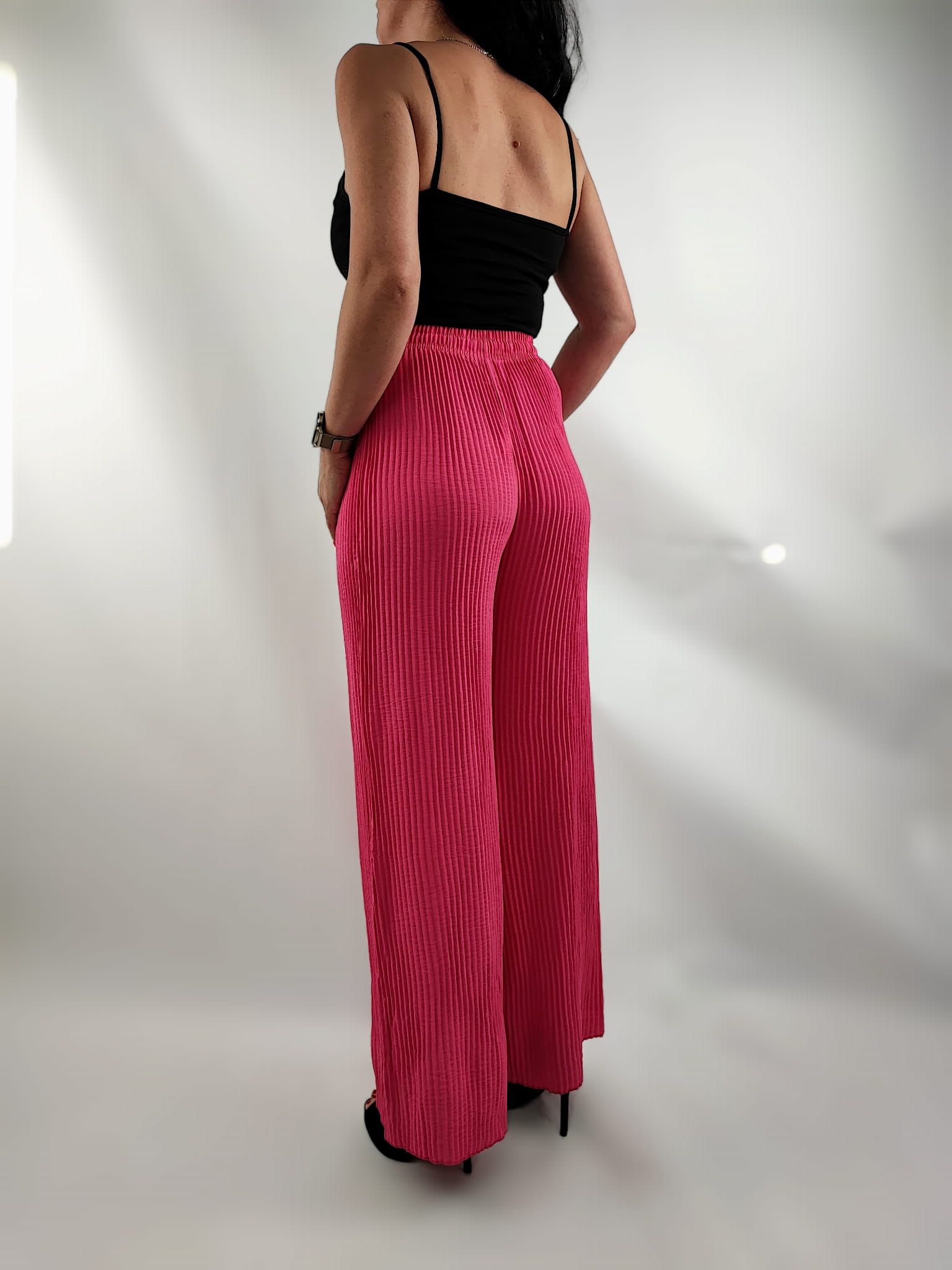Spodnie Damskie Avix Plisowane Długie Szerokie Różowe