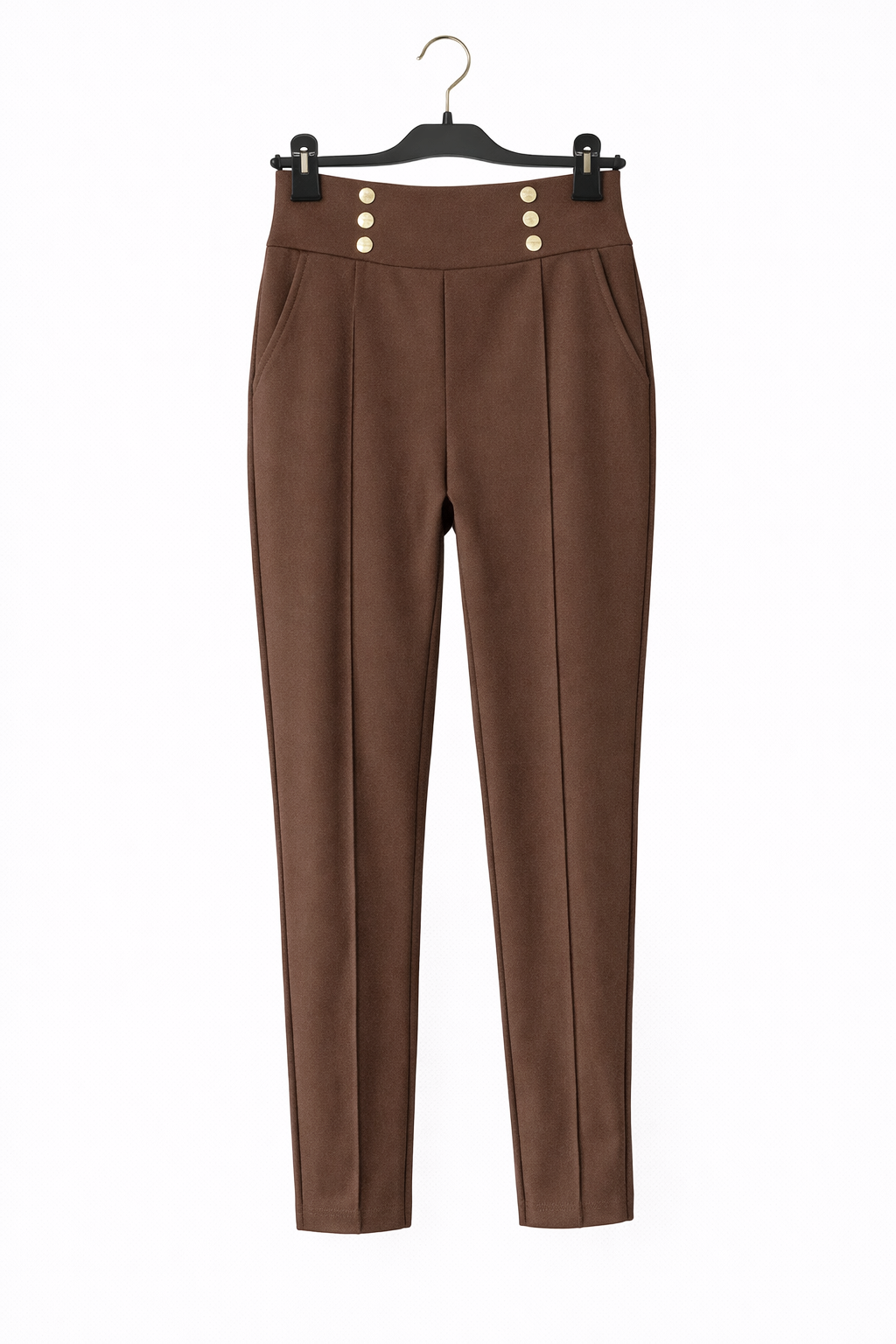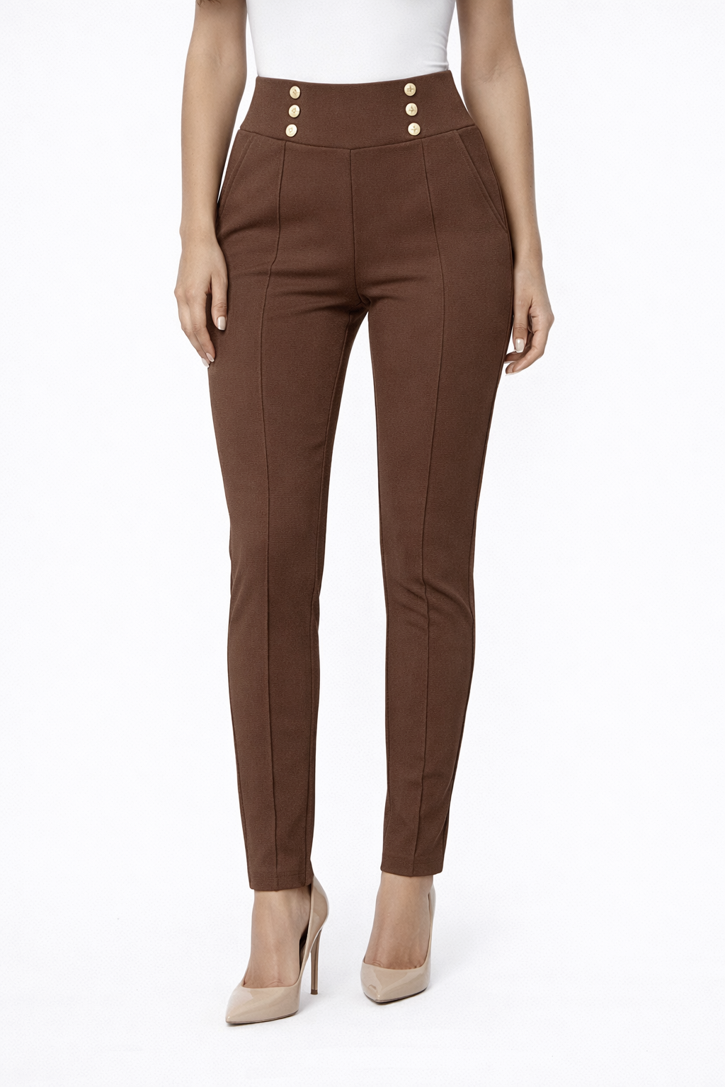 Spodnie damskie z ozdobnymi złotymi guzikami