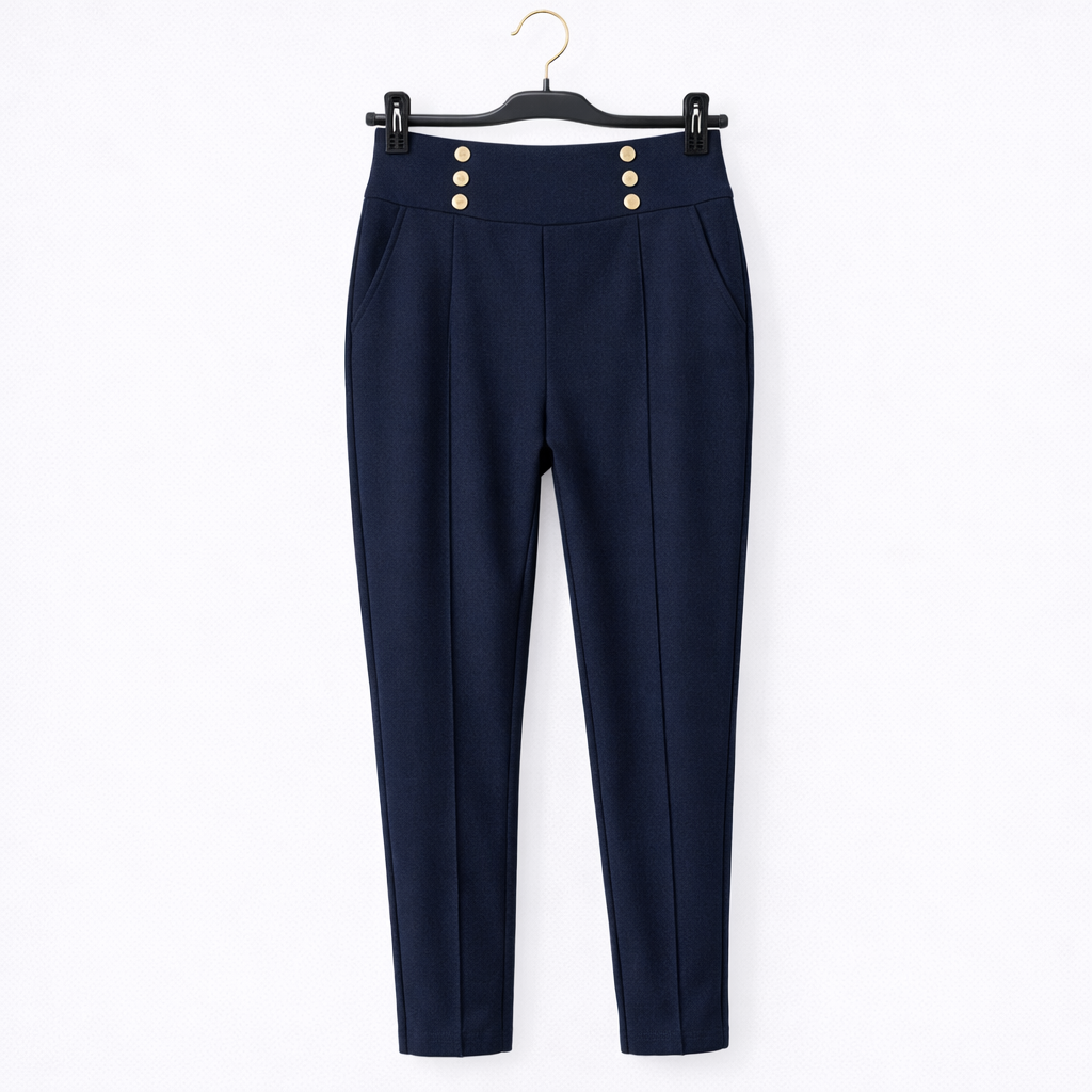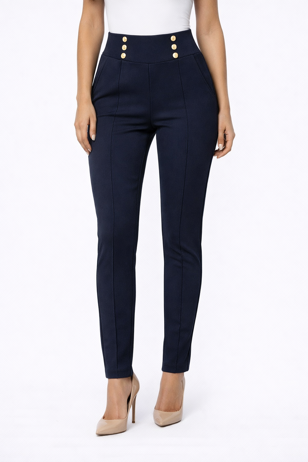 Spodnie damskie z ozdobnymi złotymi guzikami