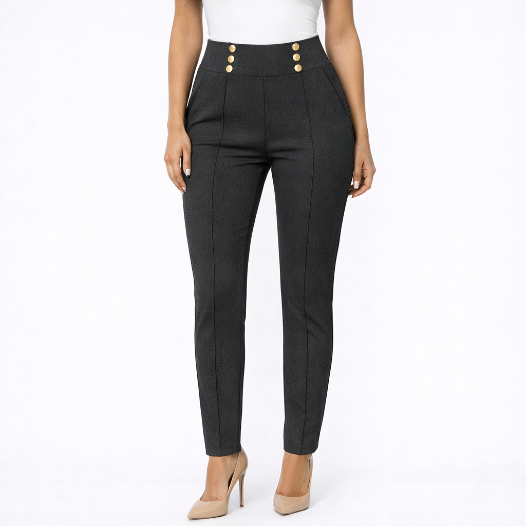 Spodnie damskie z ozdobnymi złotymi guzikami