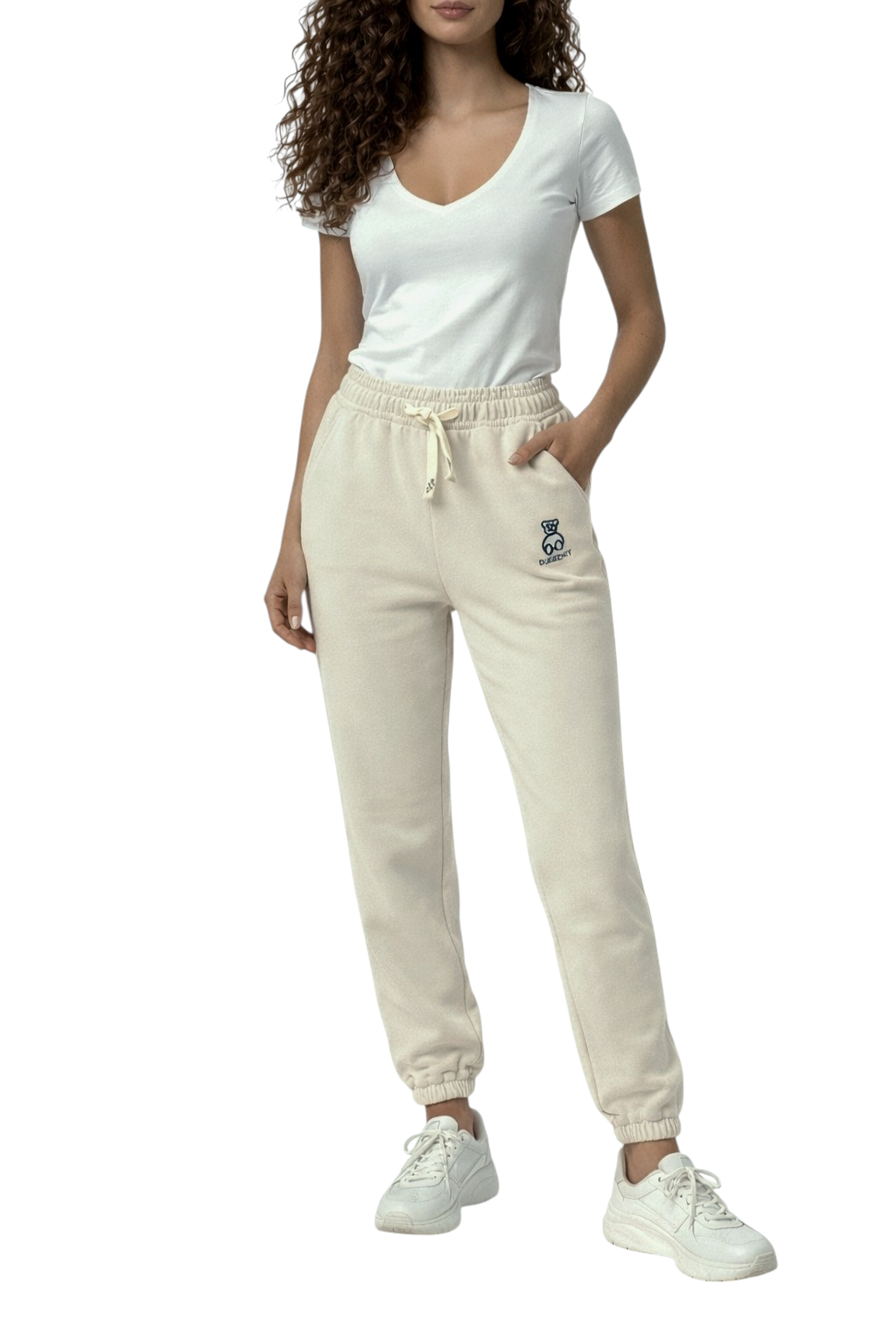 Spodnie Damskie Dresowe Sportowe z Gumką na Prezent Bawełniane Beżowe M (38
