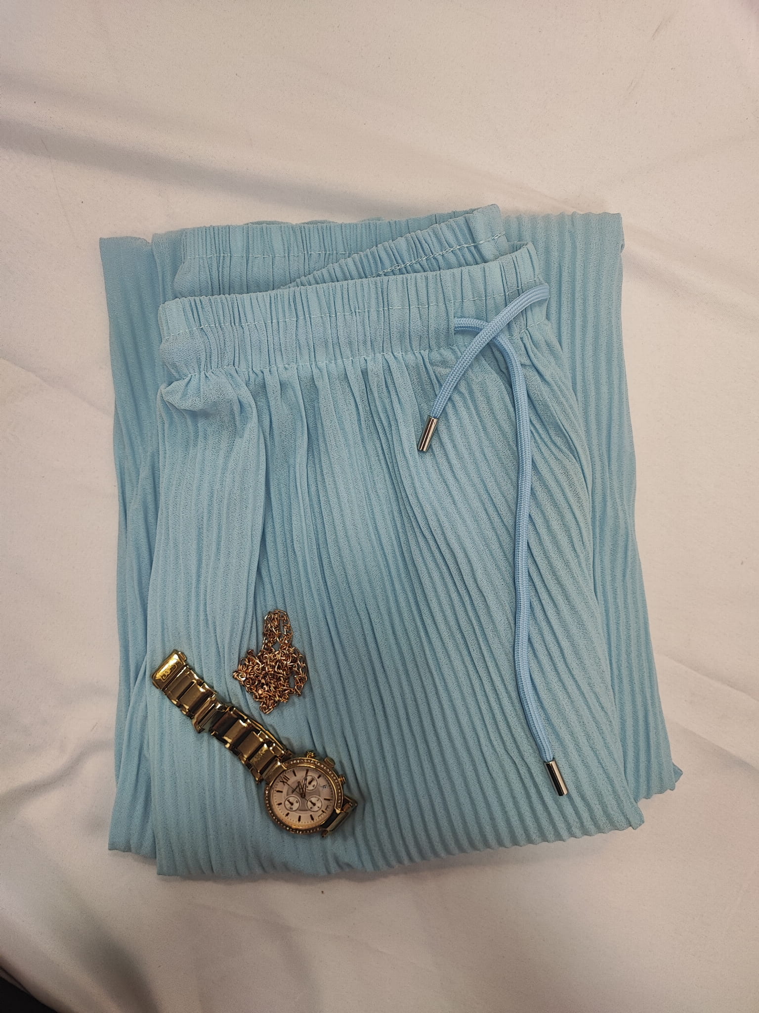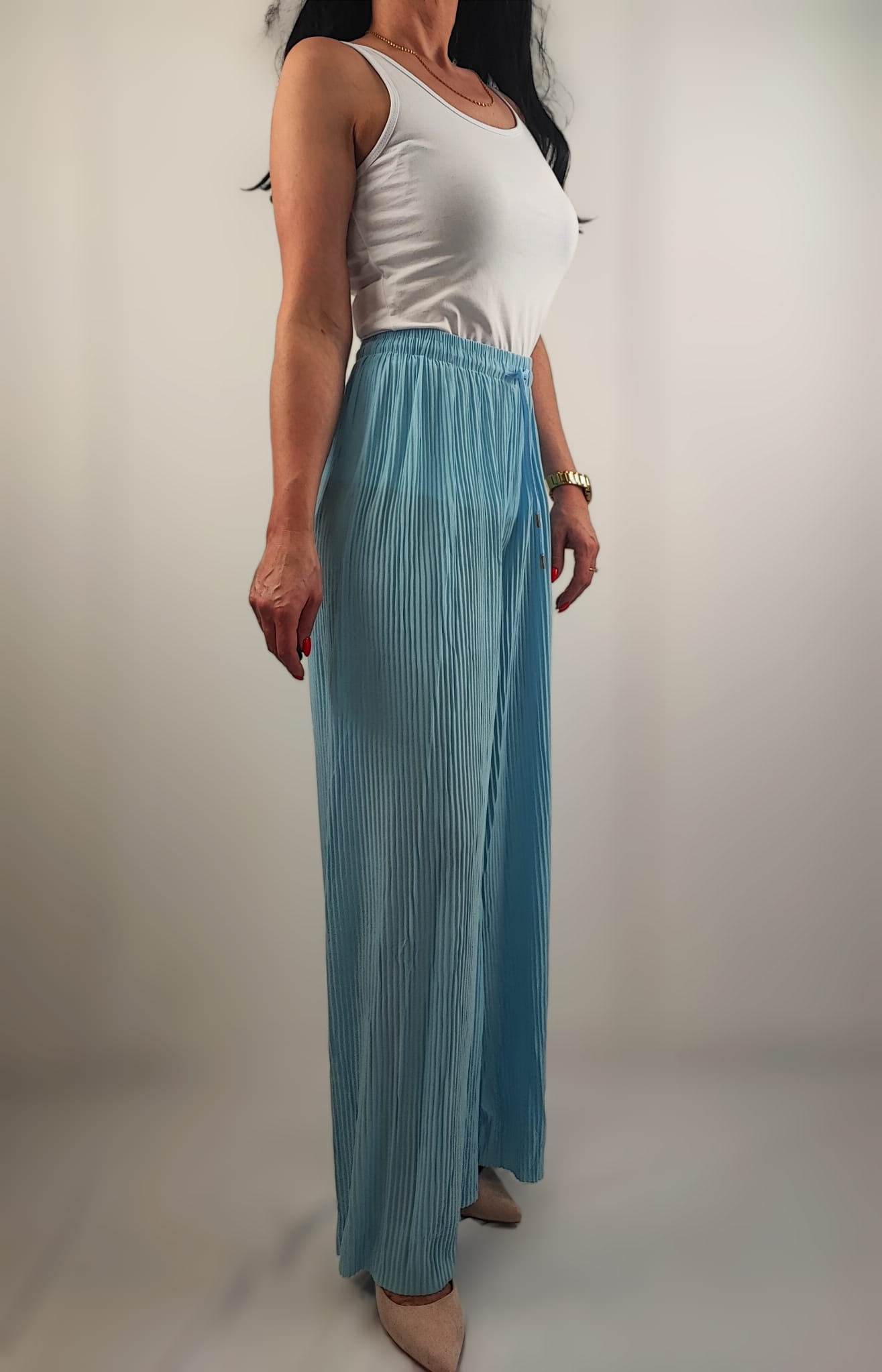 Spodnie Damskie Plisowane Szerokie Nogawki Błękitne Uniwersalne