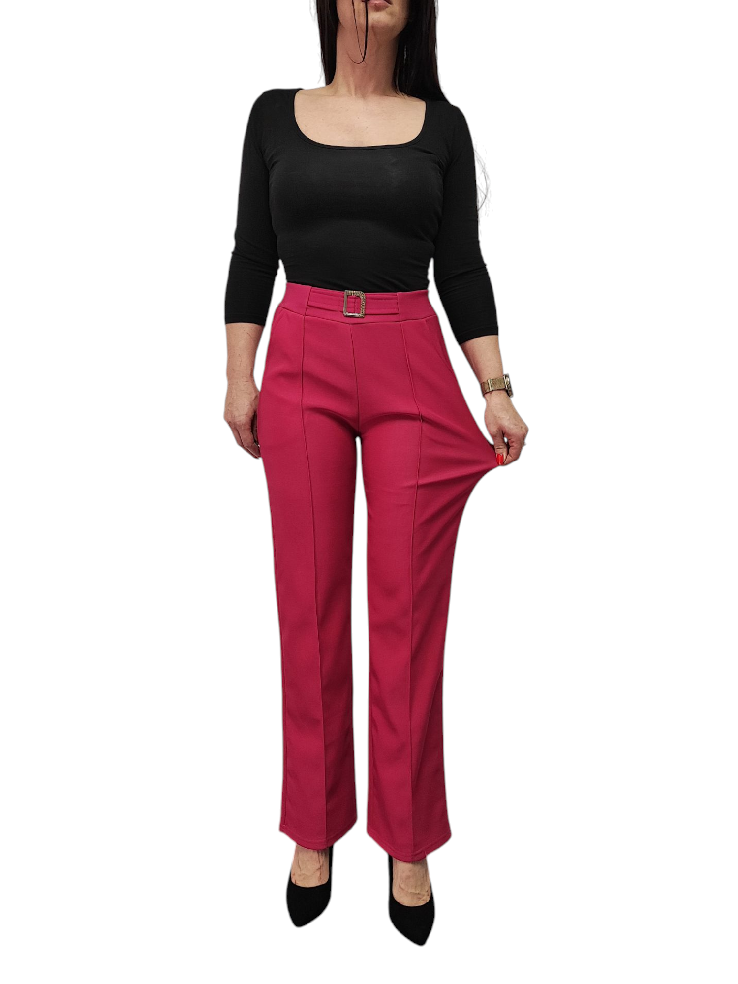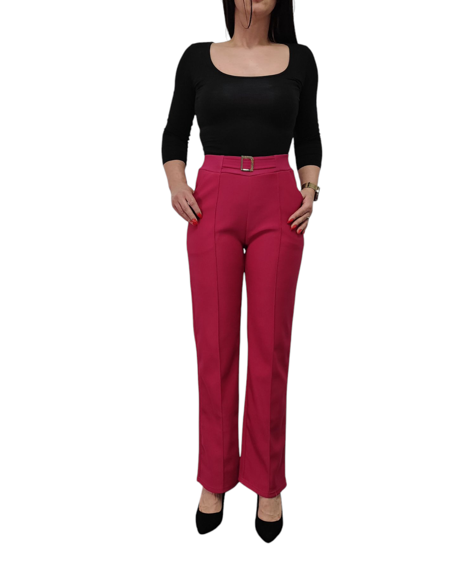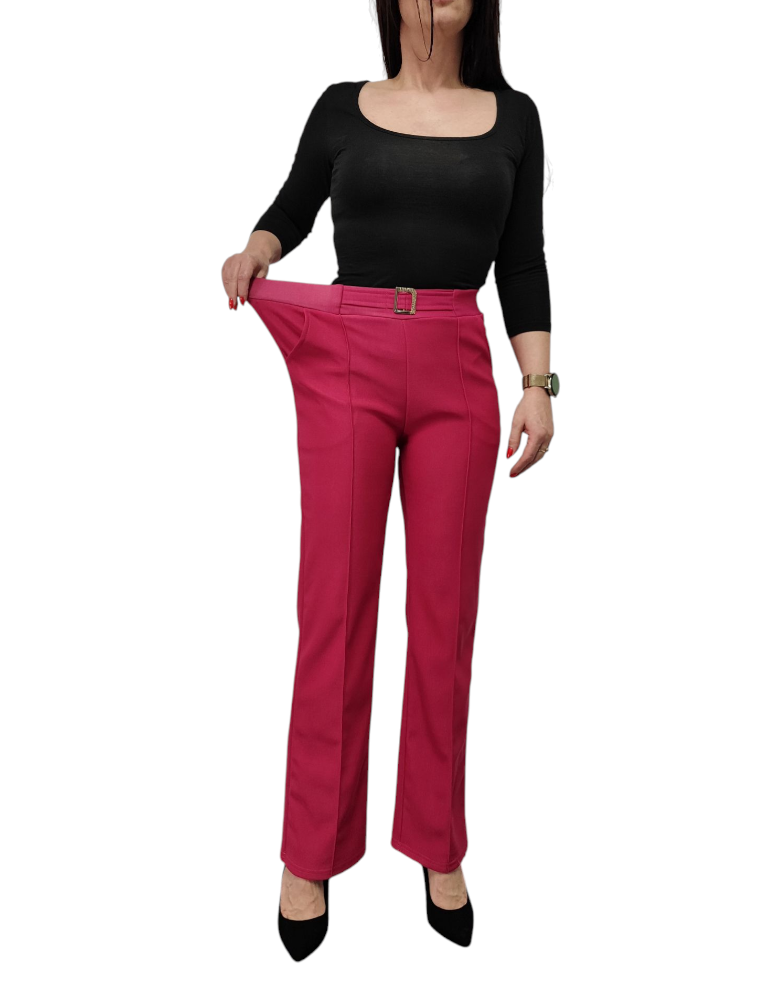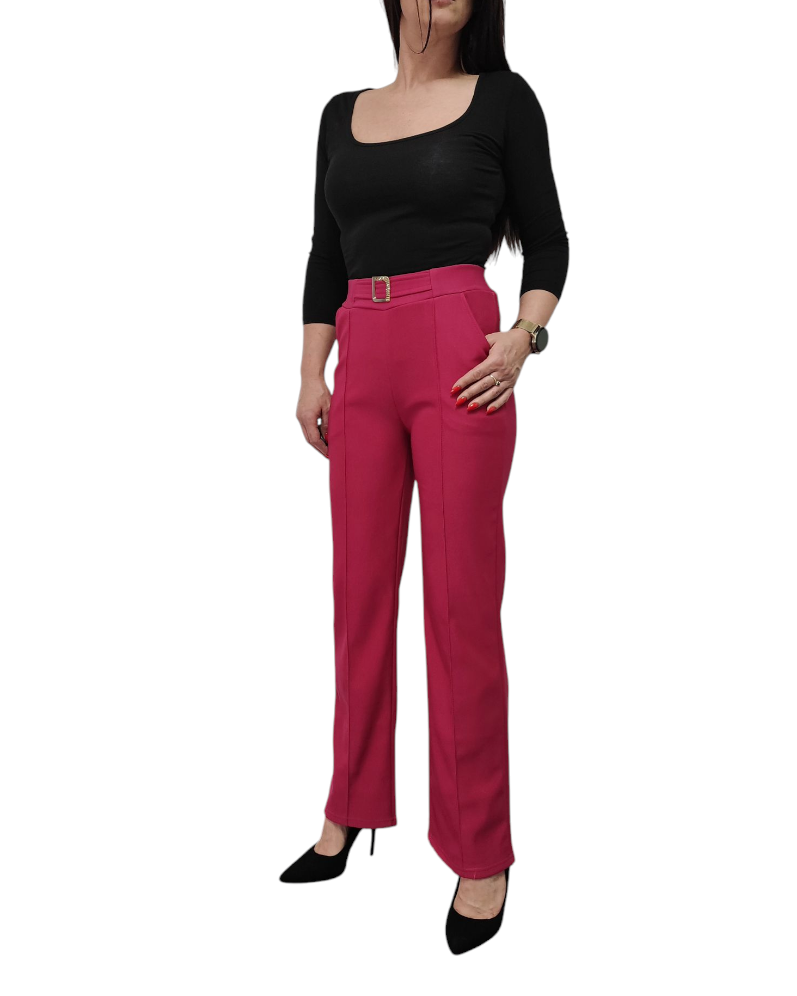 Spodnie damskie z ozdobną klamrą