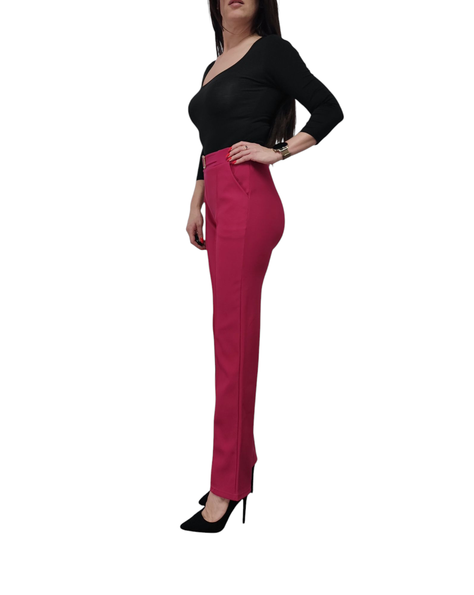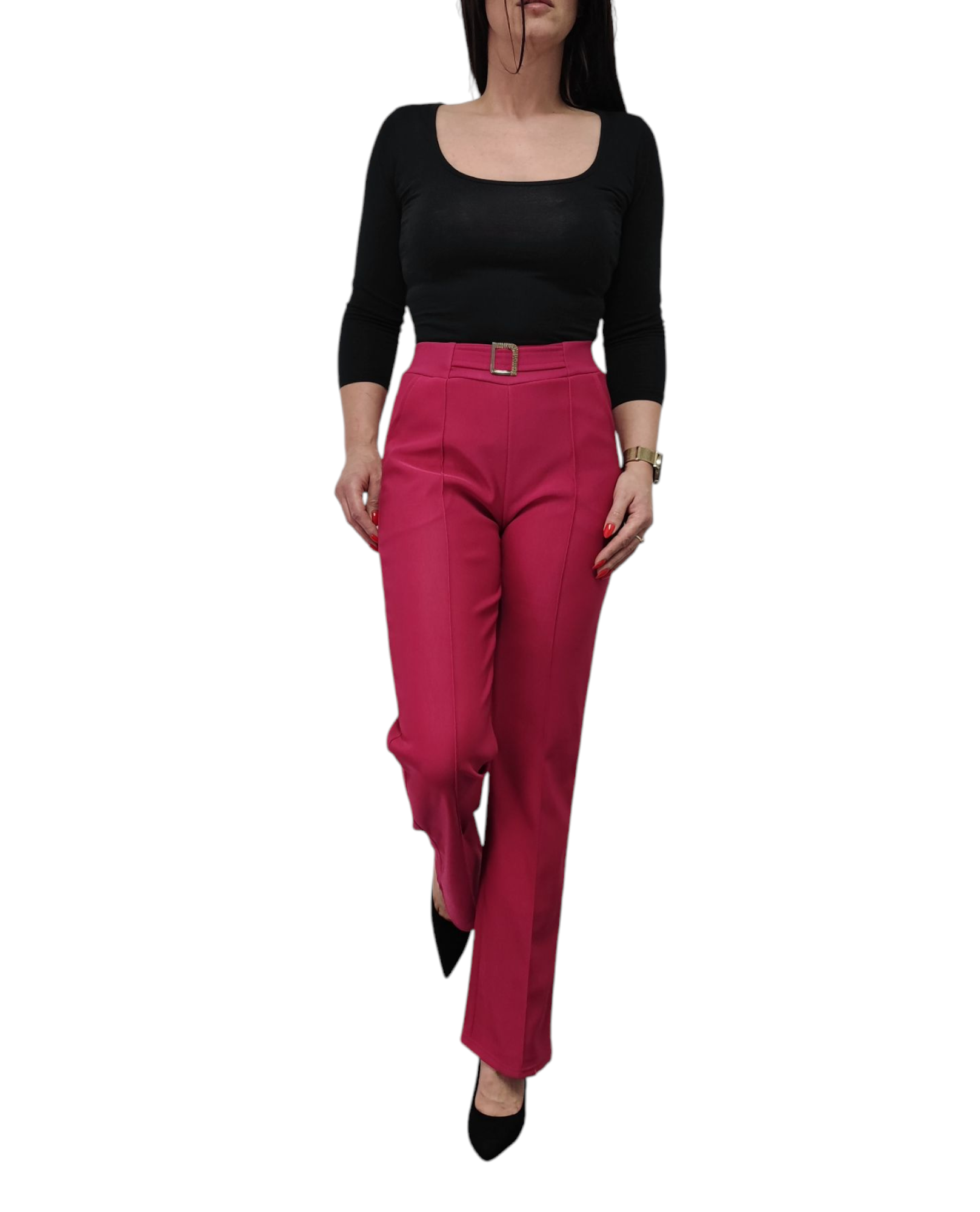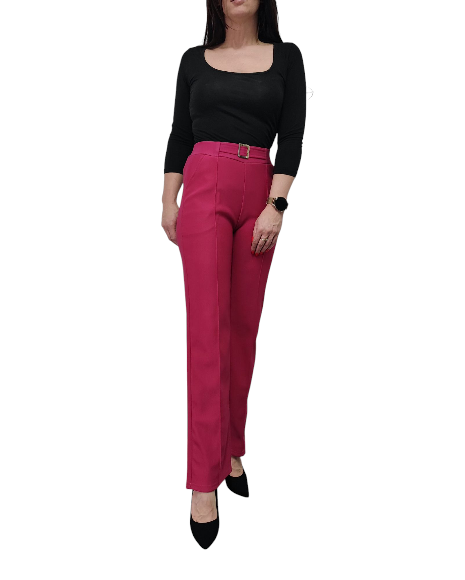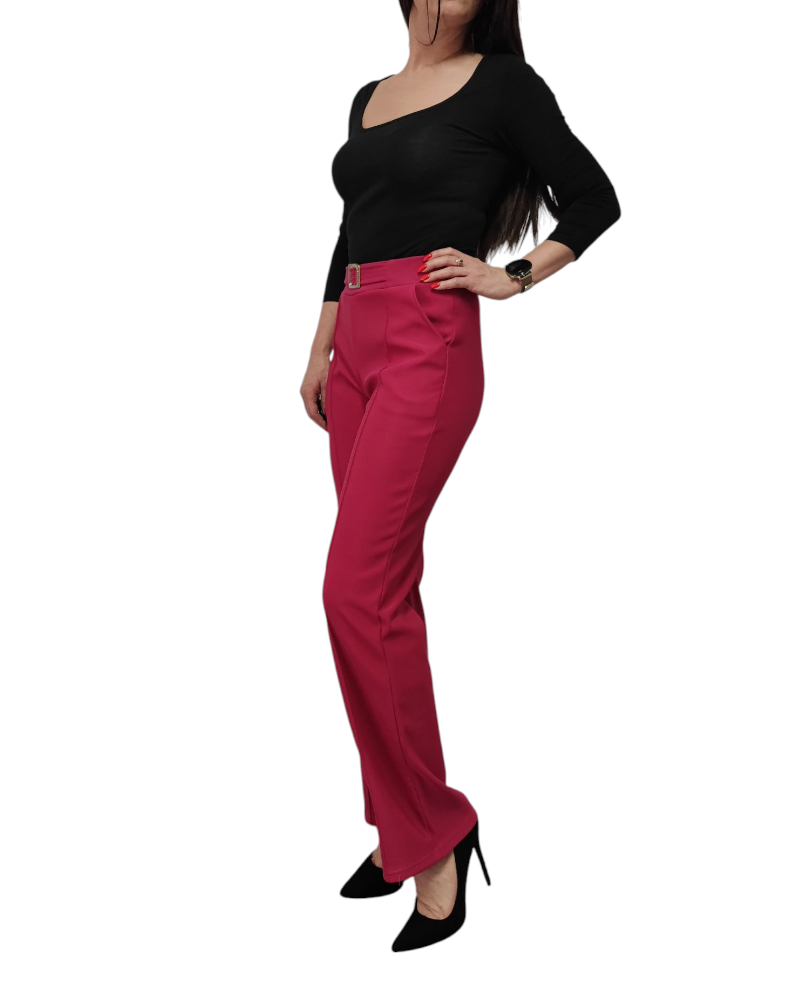Spodnie damskie z ozdobną klamrą