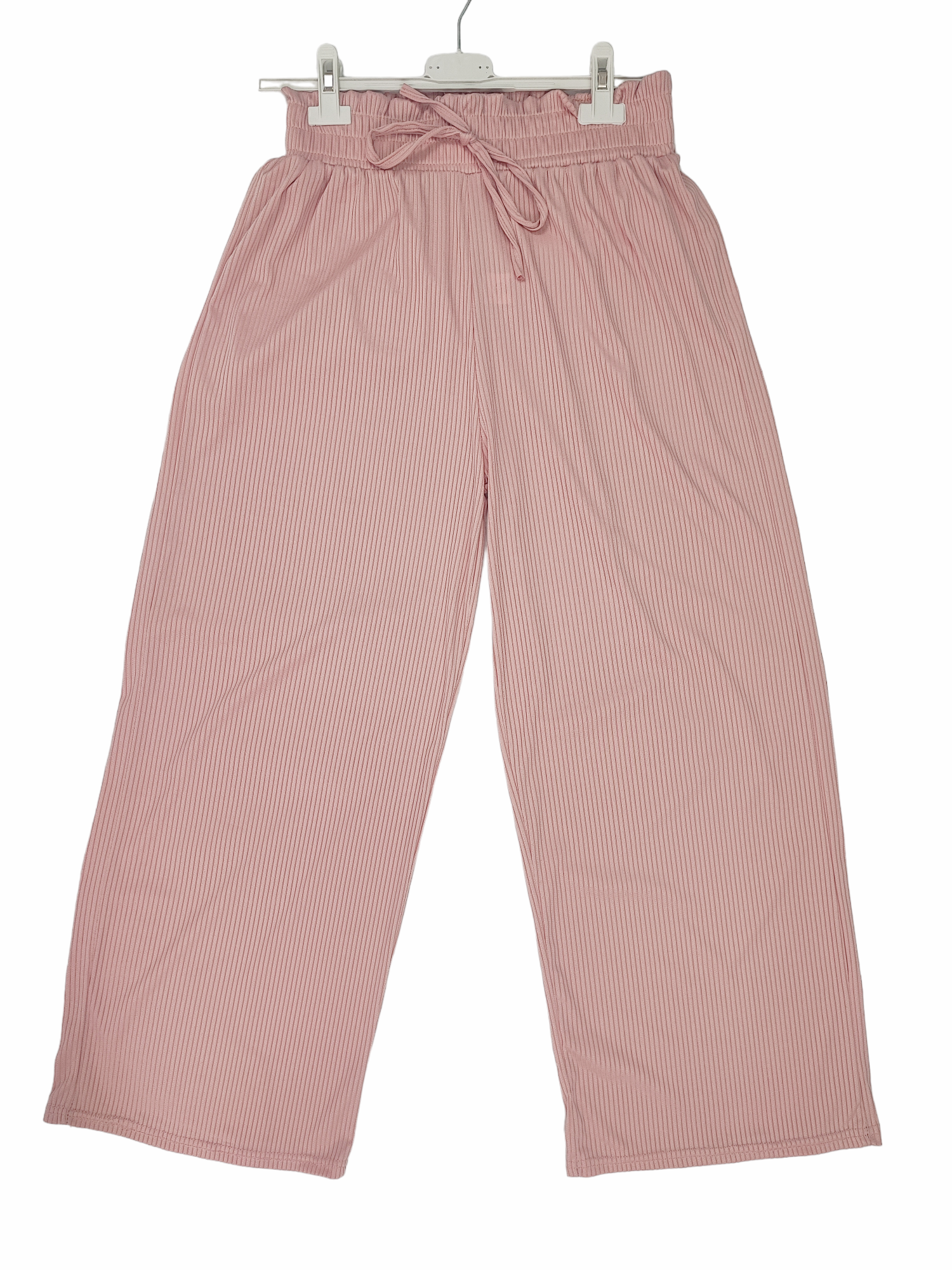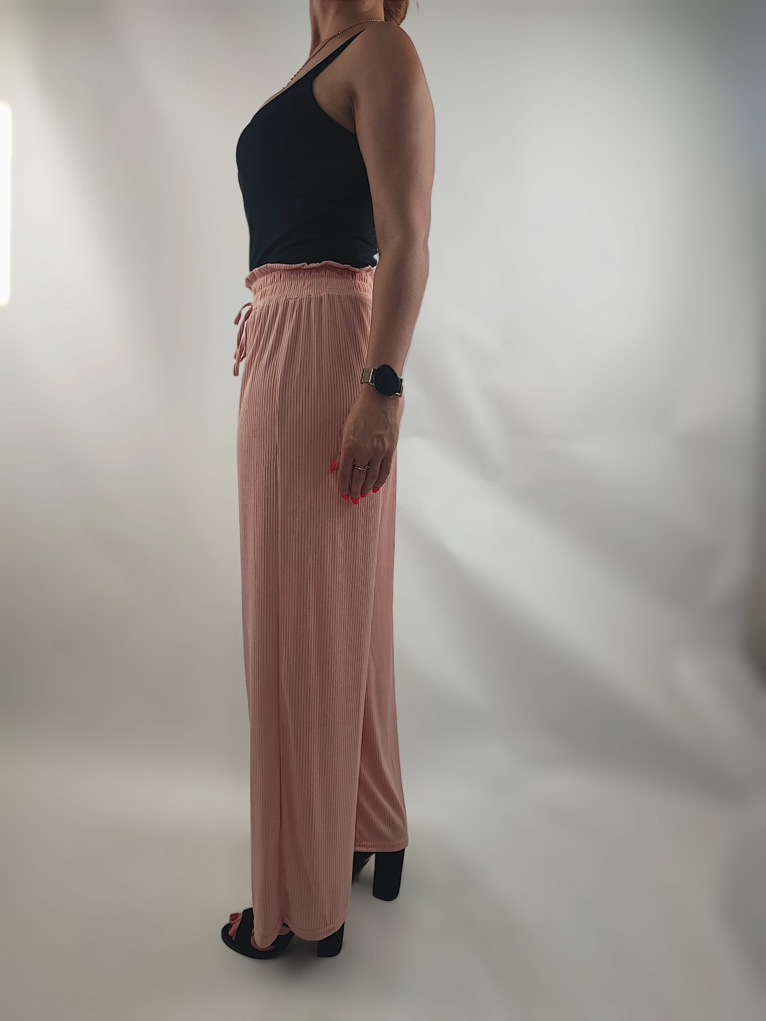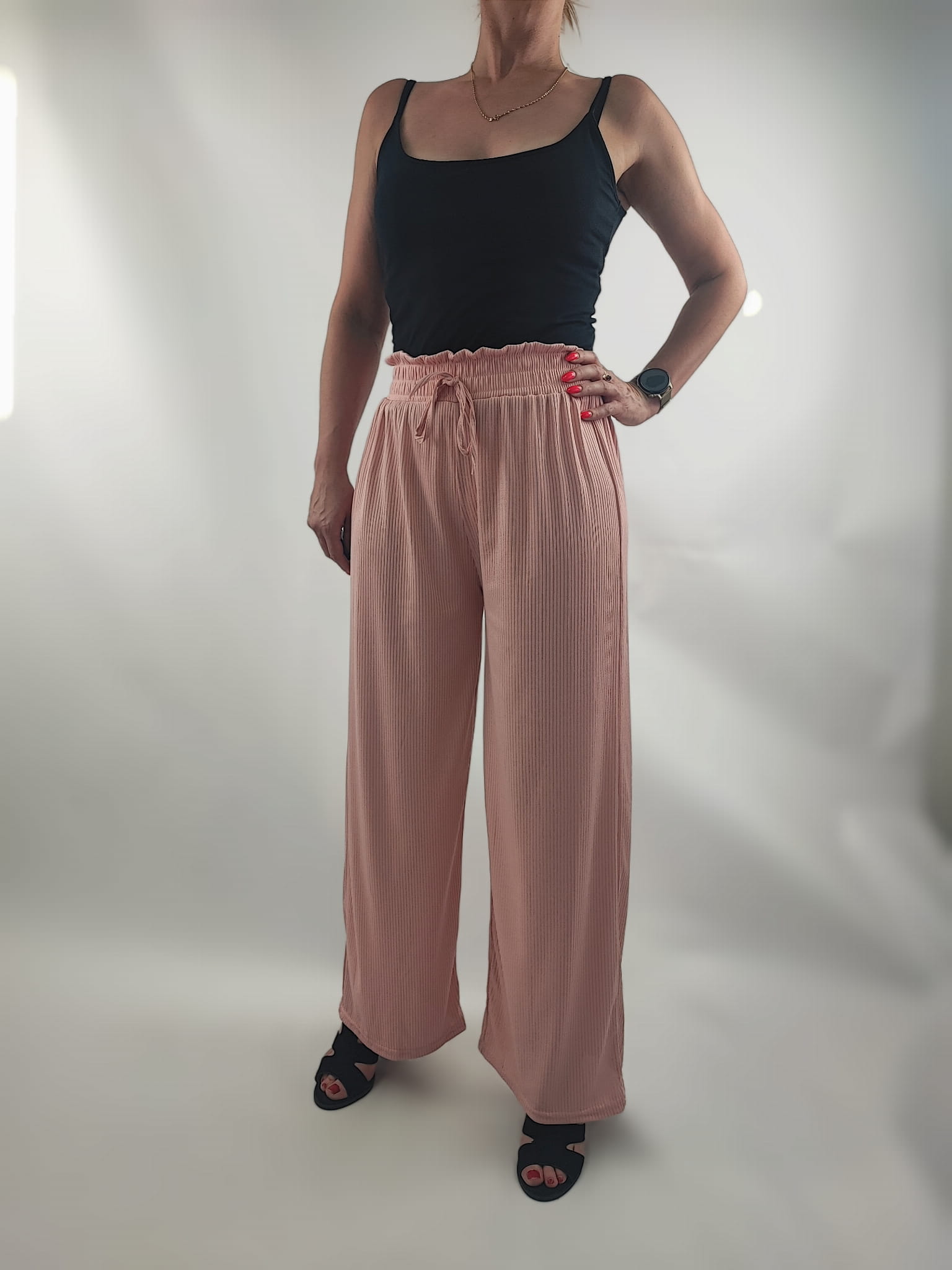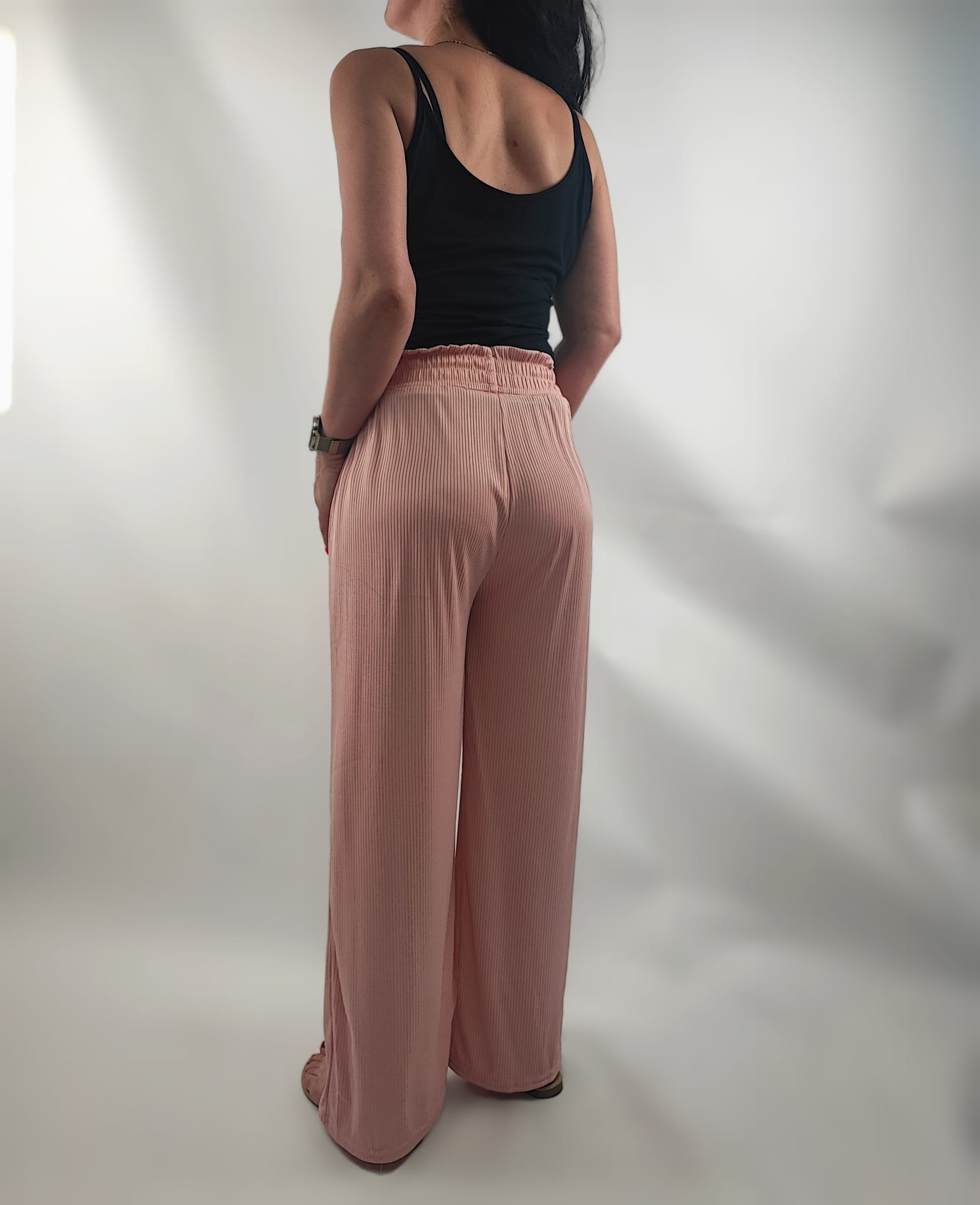 Spodnie Damskie Szerokie Nogawki Z Gumką Luźne Różowe