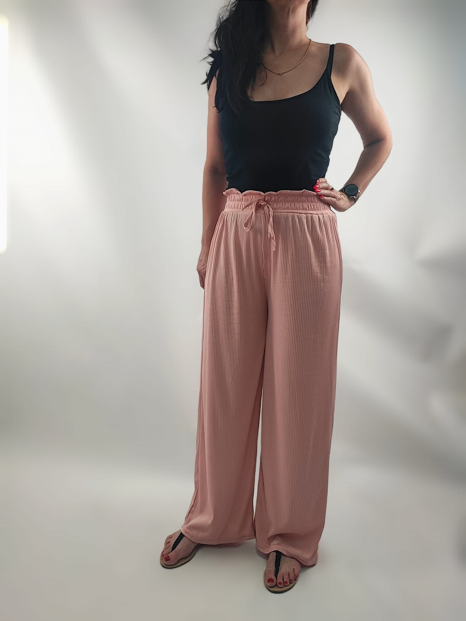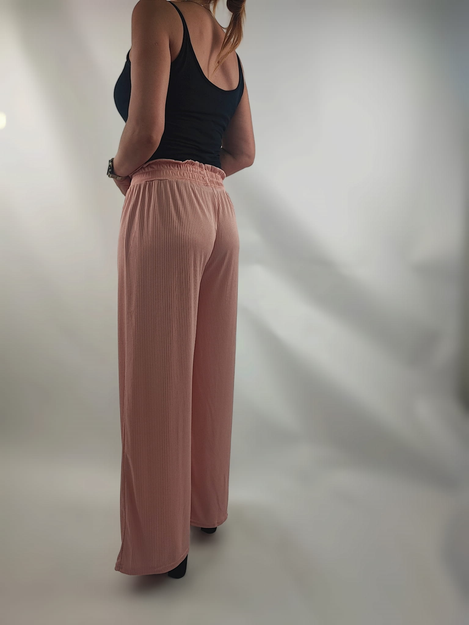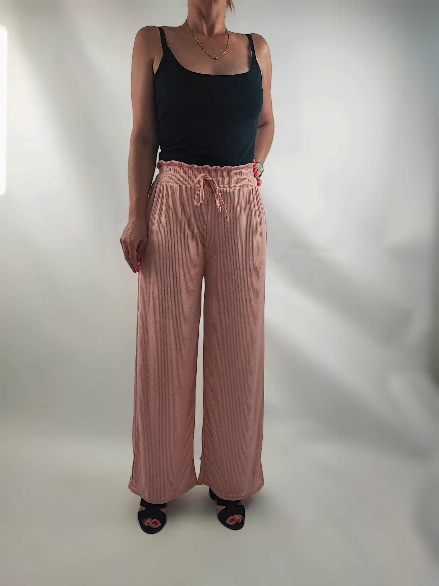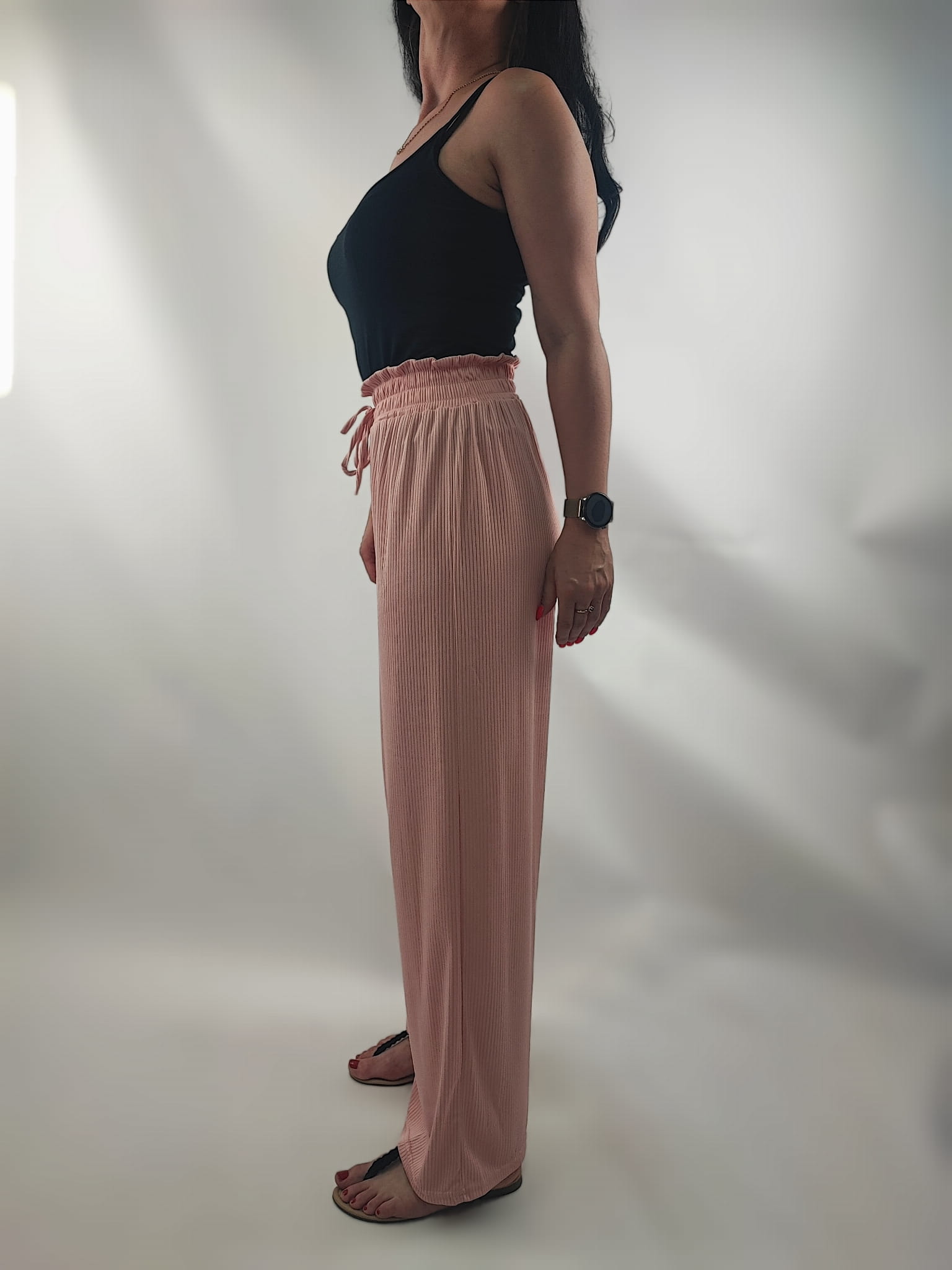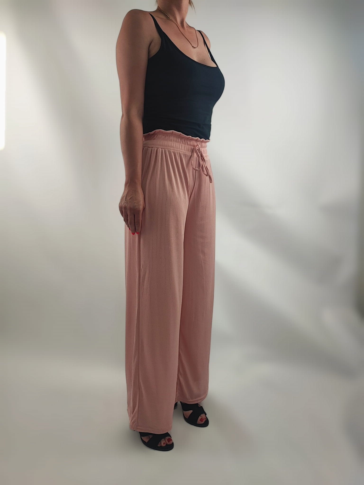Spodnie Damskie Szerokie Nogawki Z Gumką Luźne Różowe