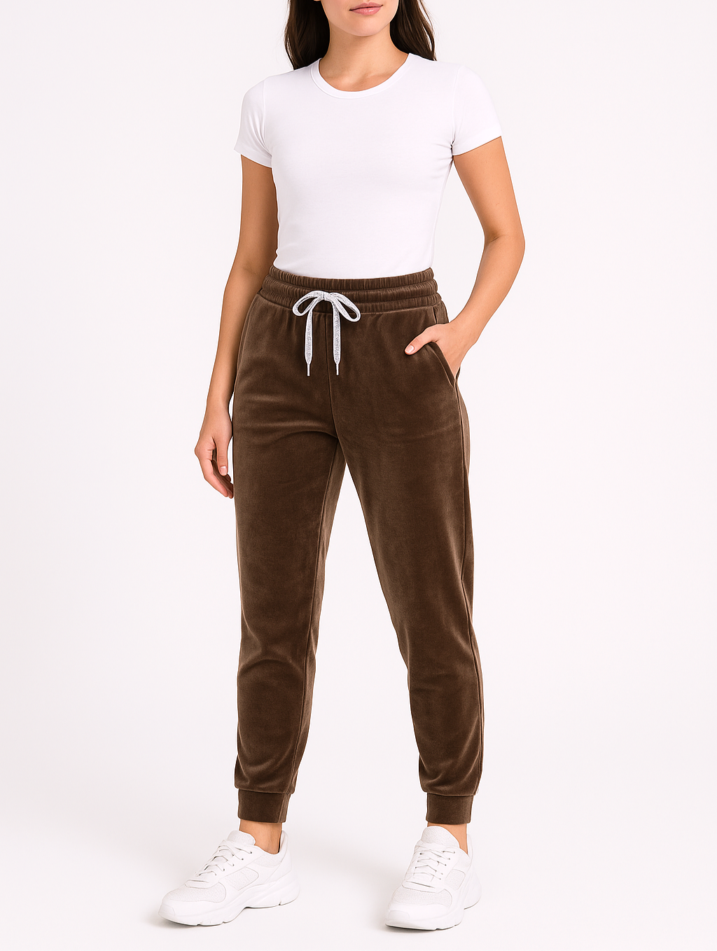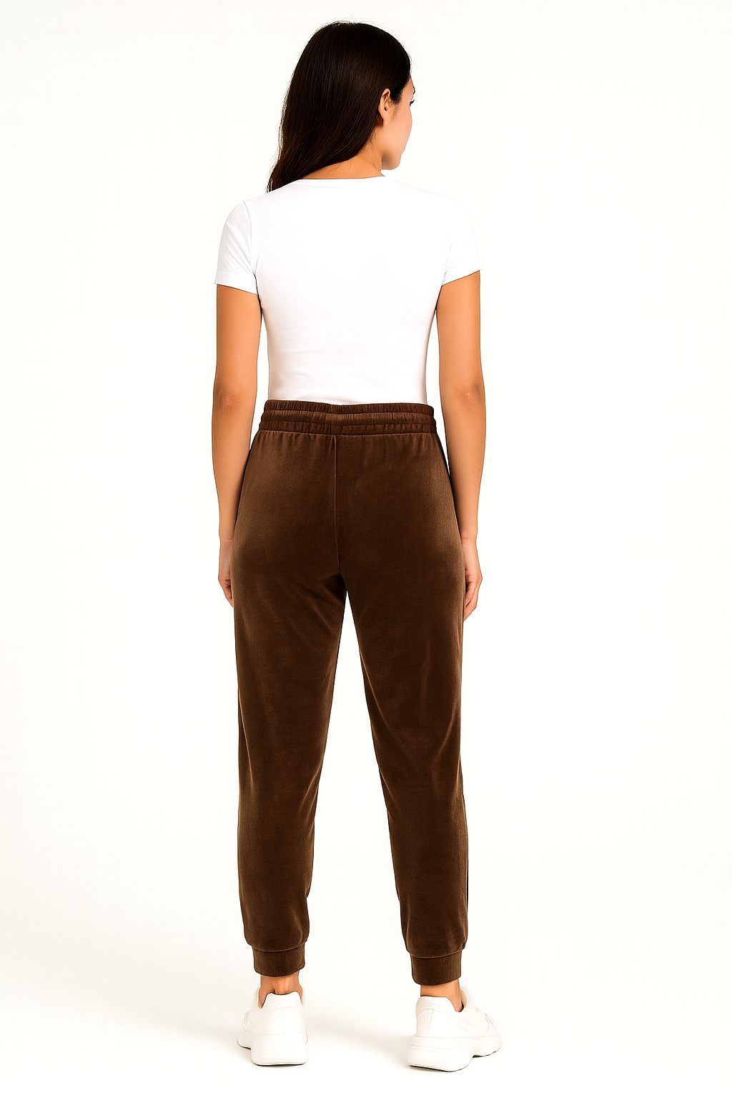 Spodnie Damskie Welurowe Dresowe Wysoki Stan Bawełna Brązowe