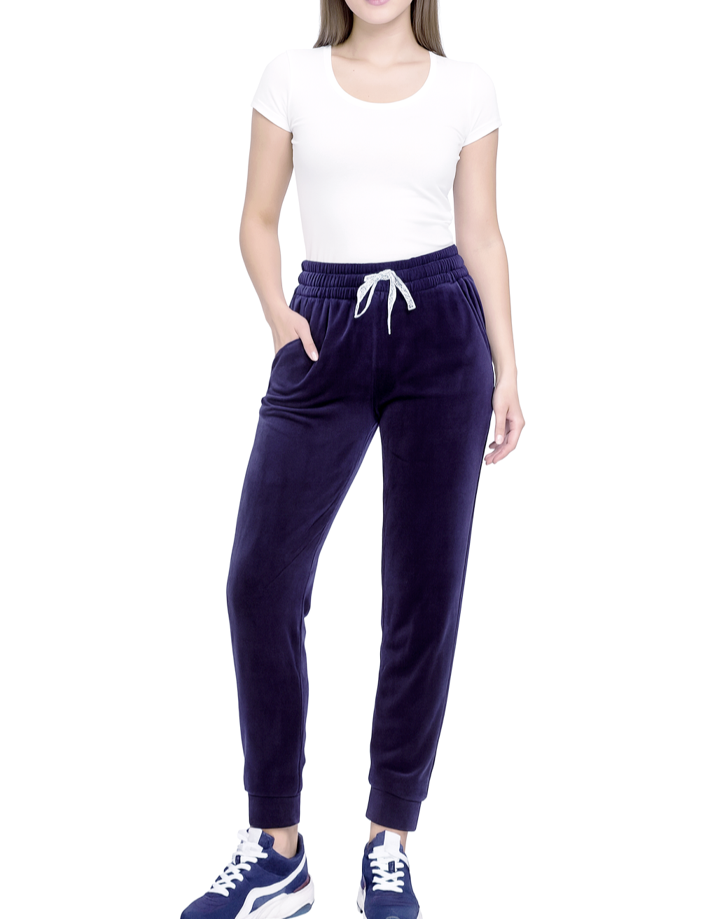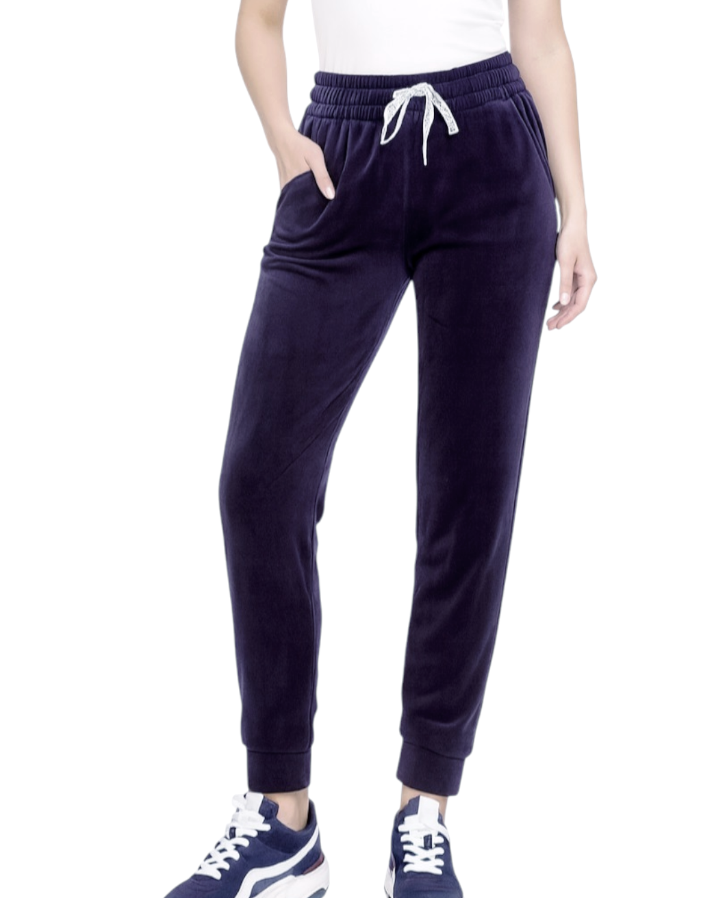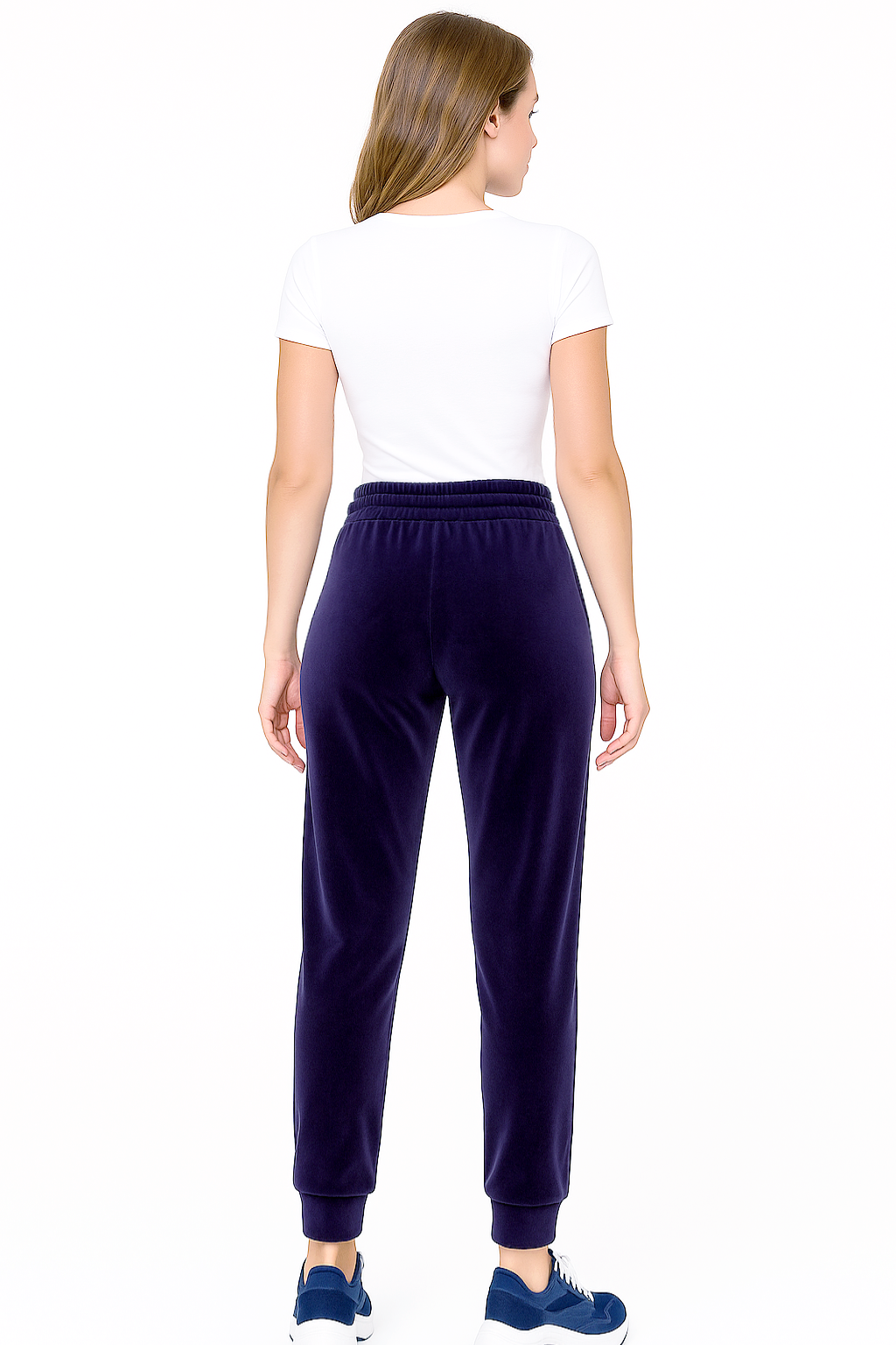 Spodnie Damskie Welurowe Dresowe Wysoki Stan Bawełna Fioletowe Indygo