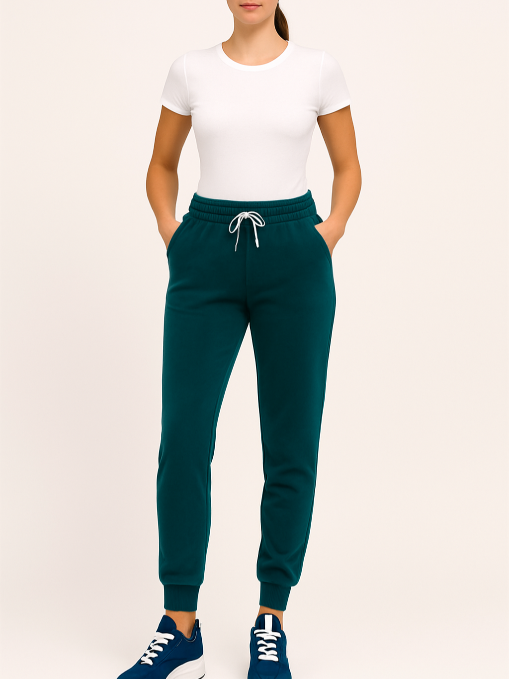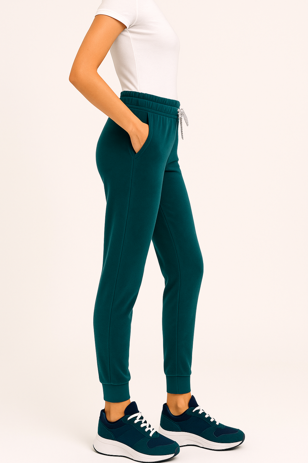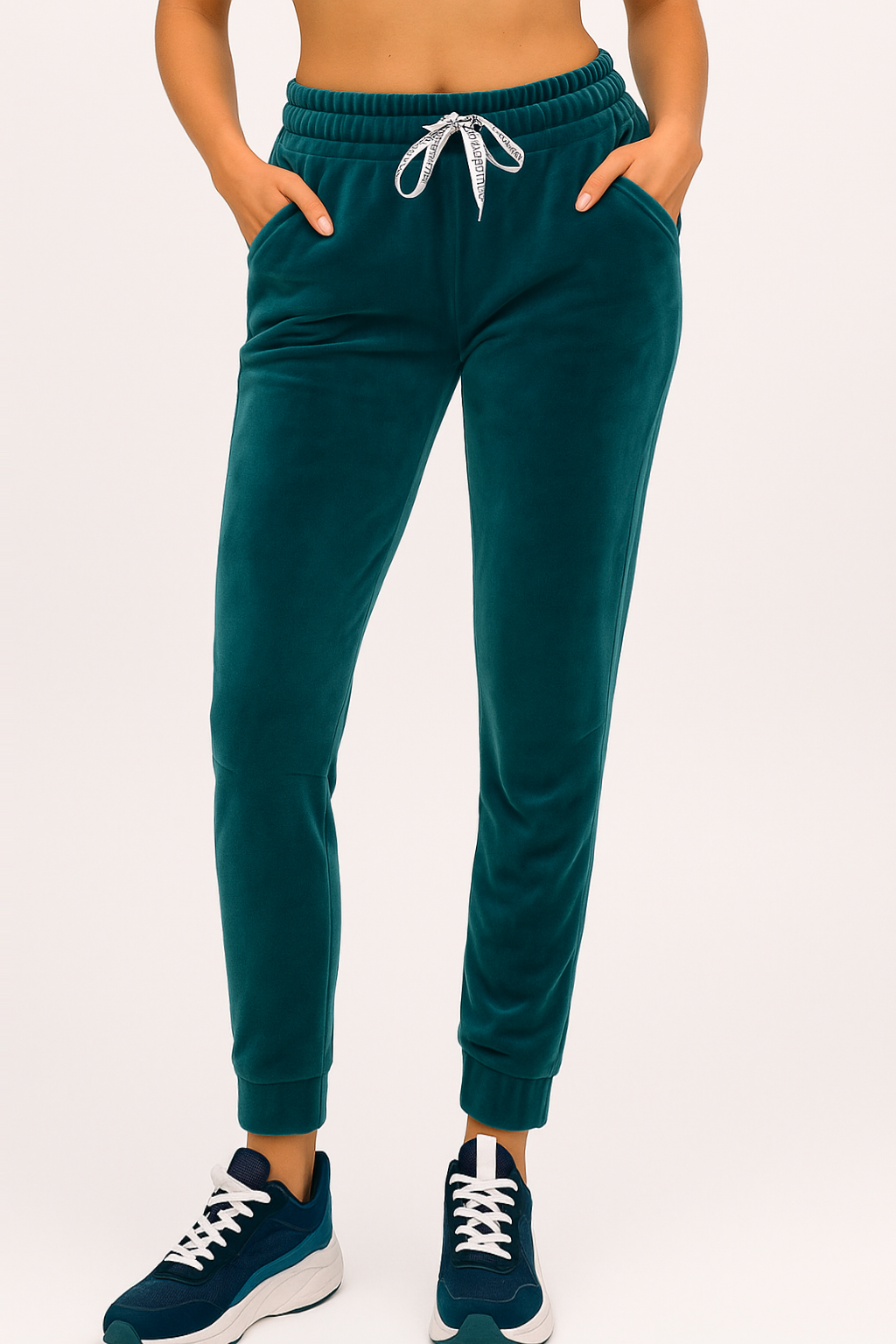 Spodnie Damskie Welurowe Dresowe Wysoki Stan Bawełna Turkusowe