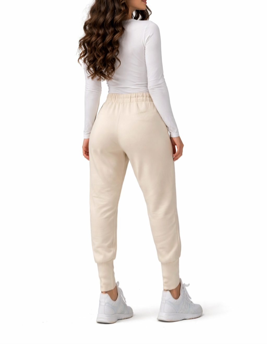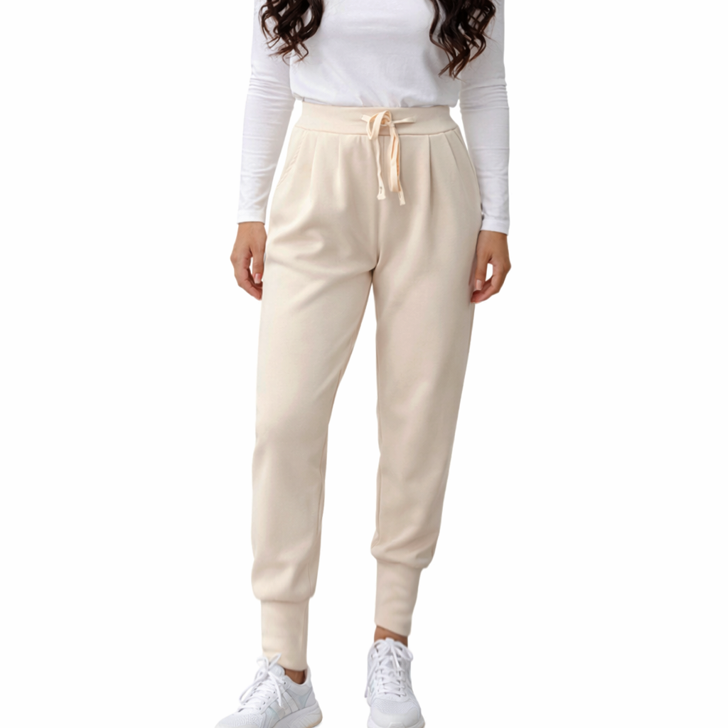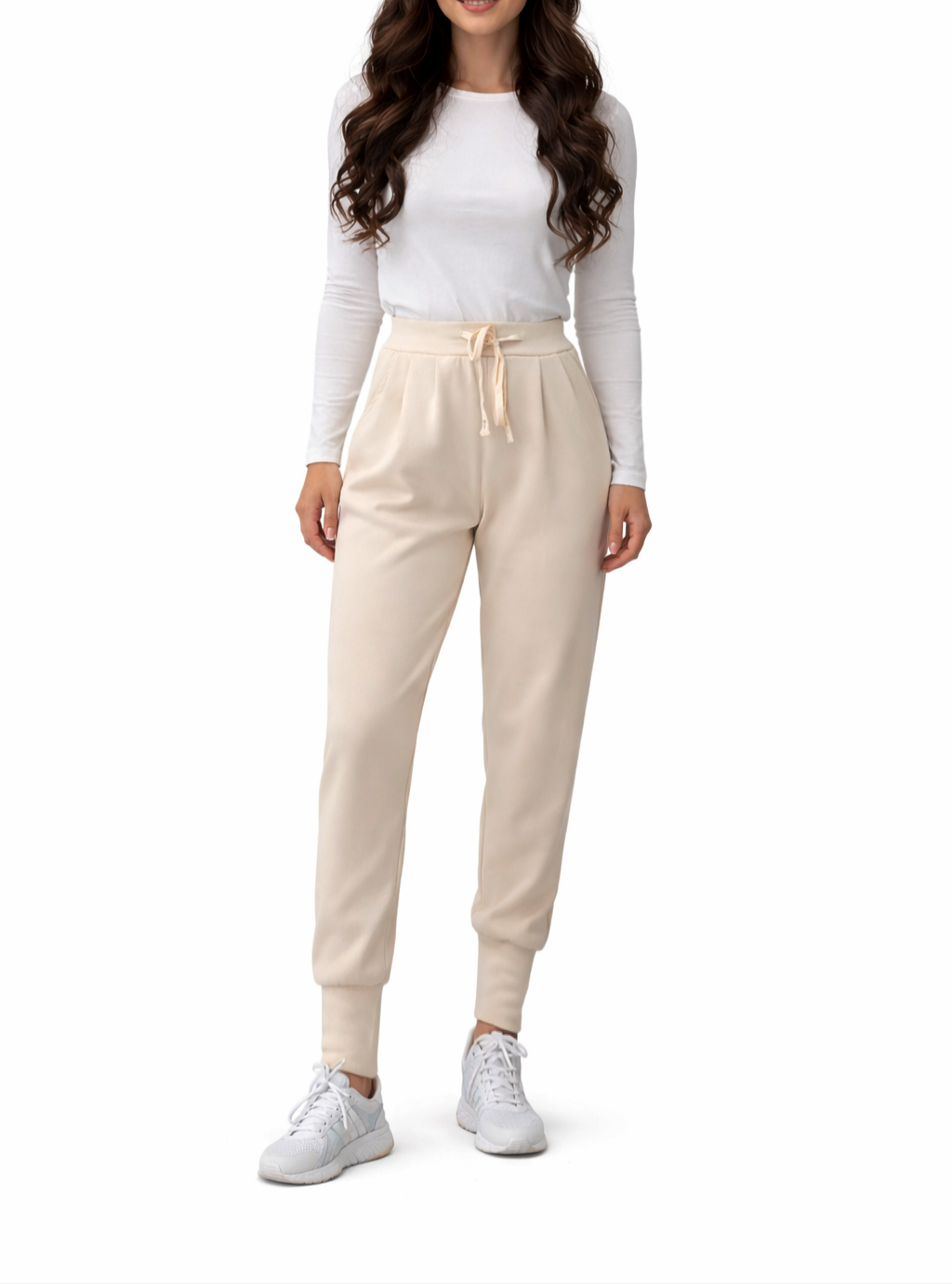 Spodnie Damskie z Materiału Dresowe Masełko Cygaretki Wiązane Luźne Beżowe