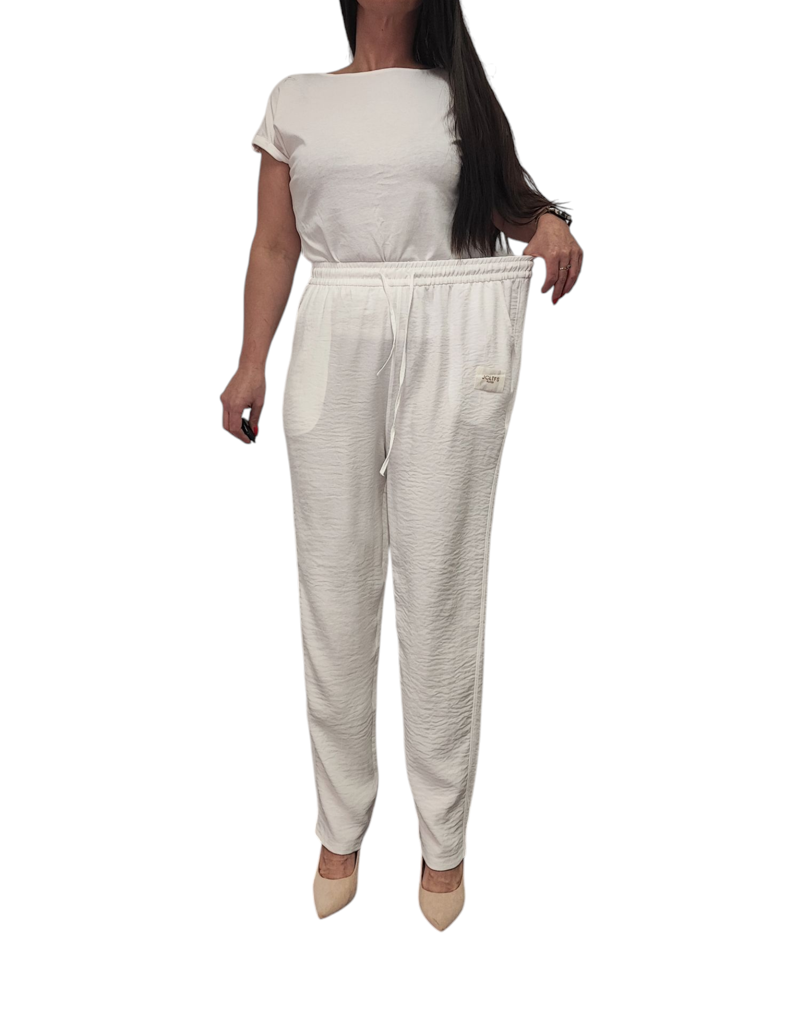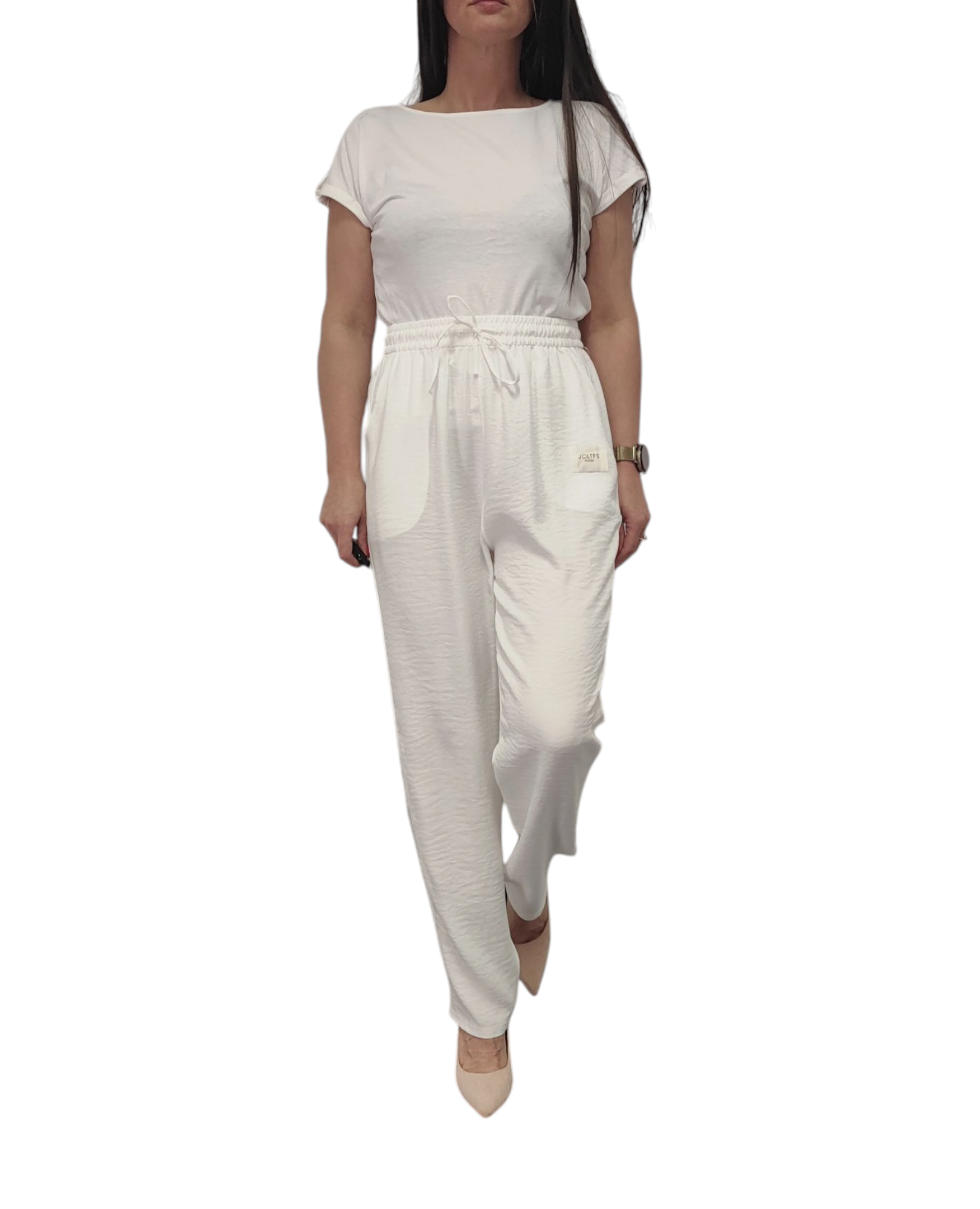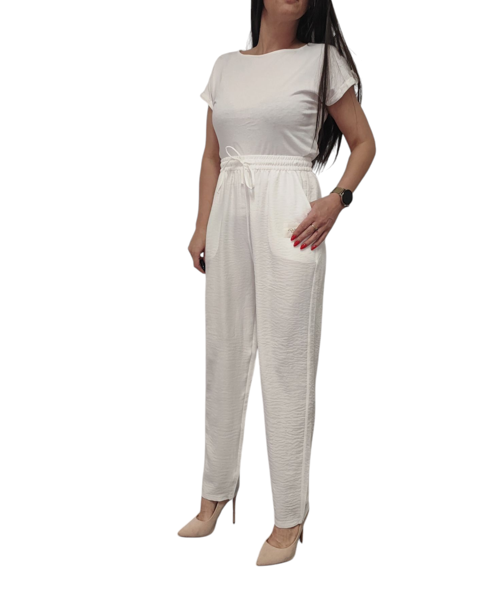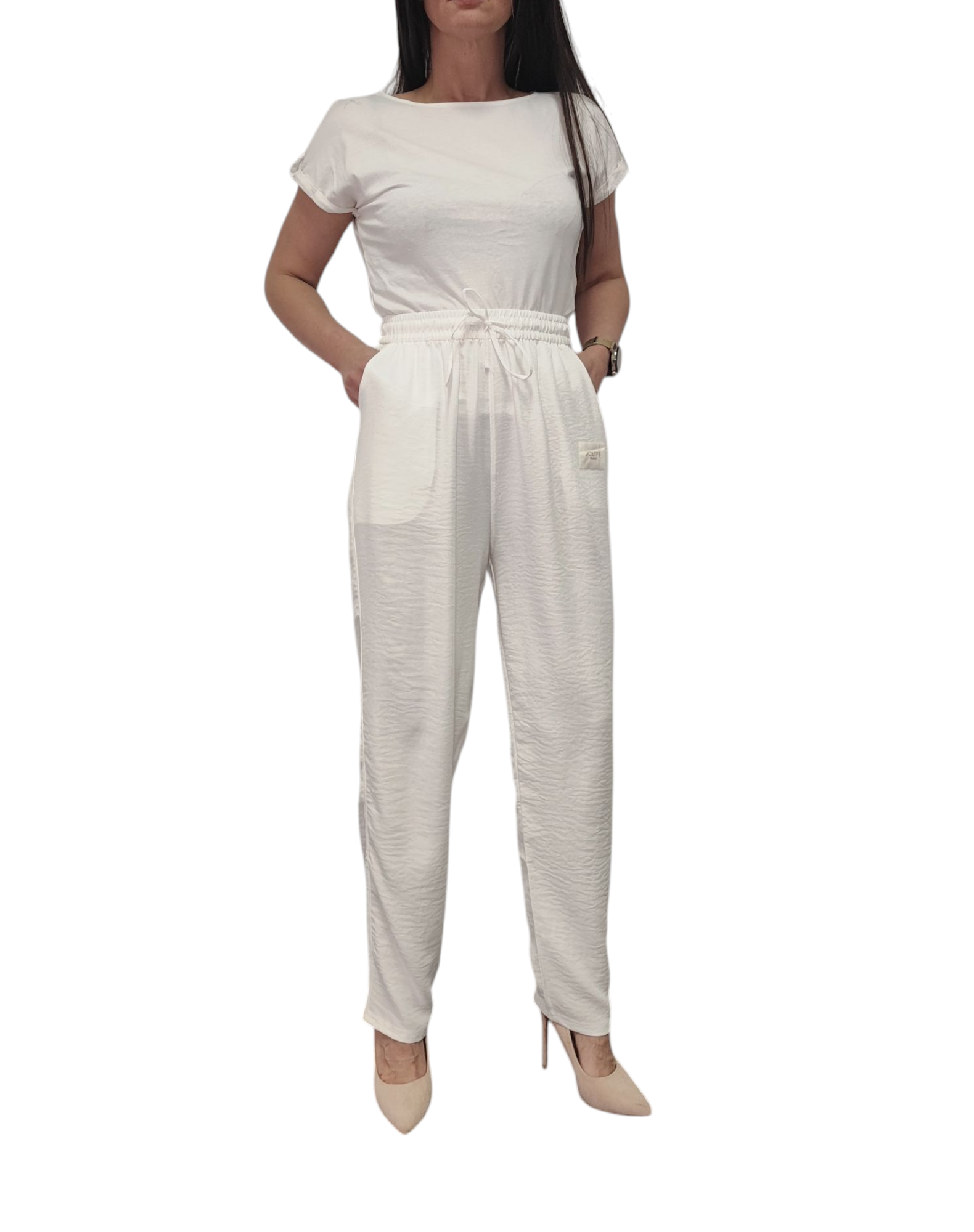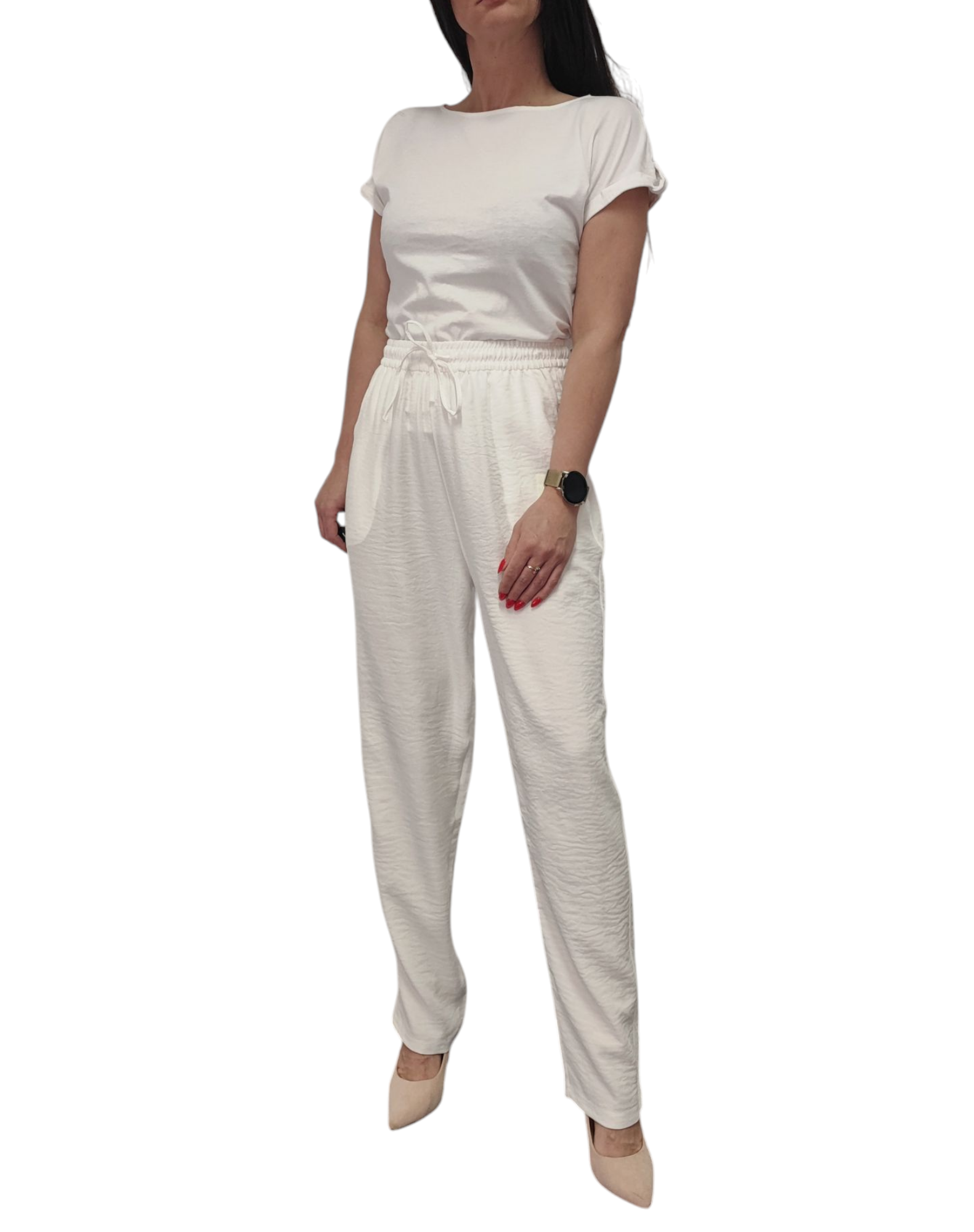 - gumka w pasie i wiązanie