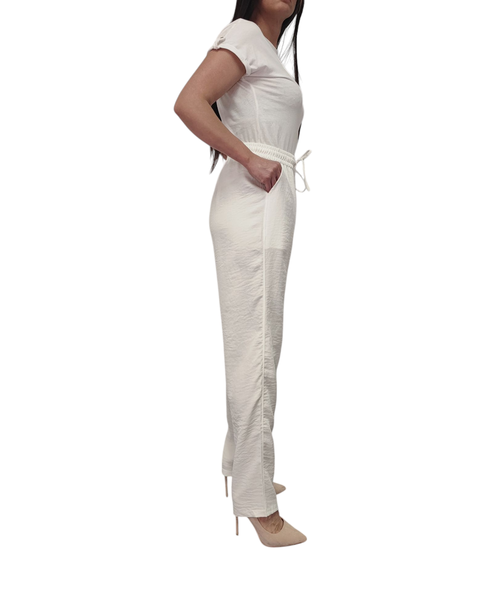 Spodnie Damskie z Materiału Szerokie Wysoki Stan Bawełna Lato Białe