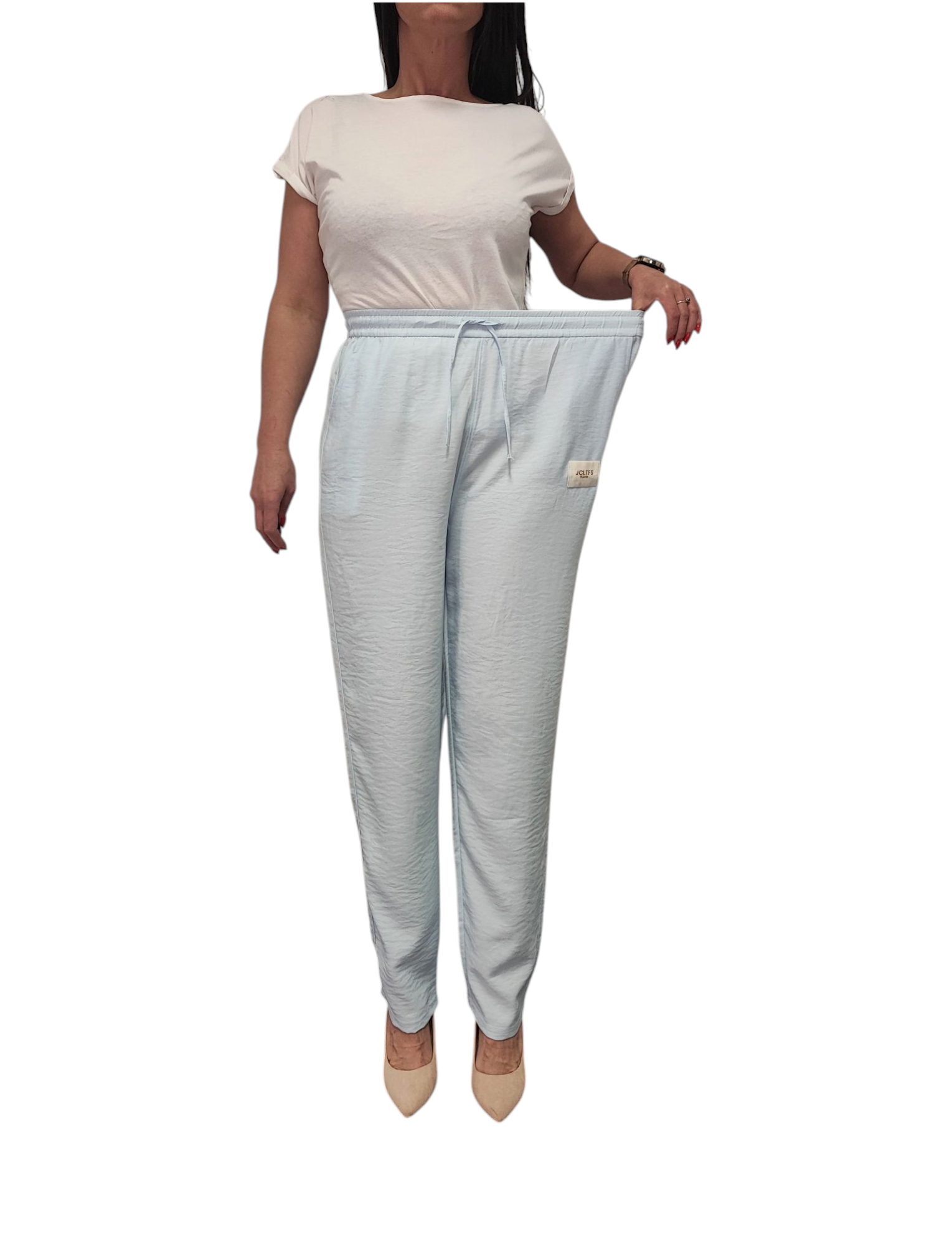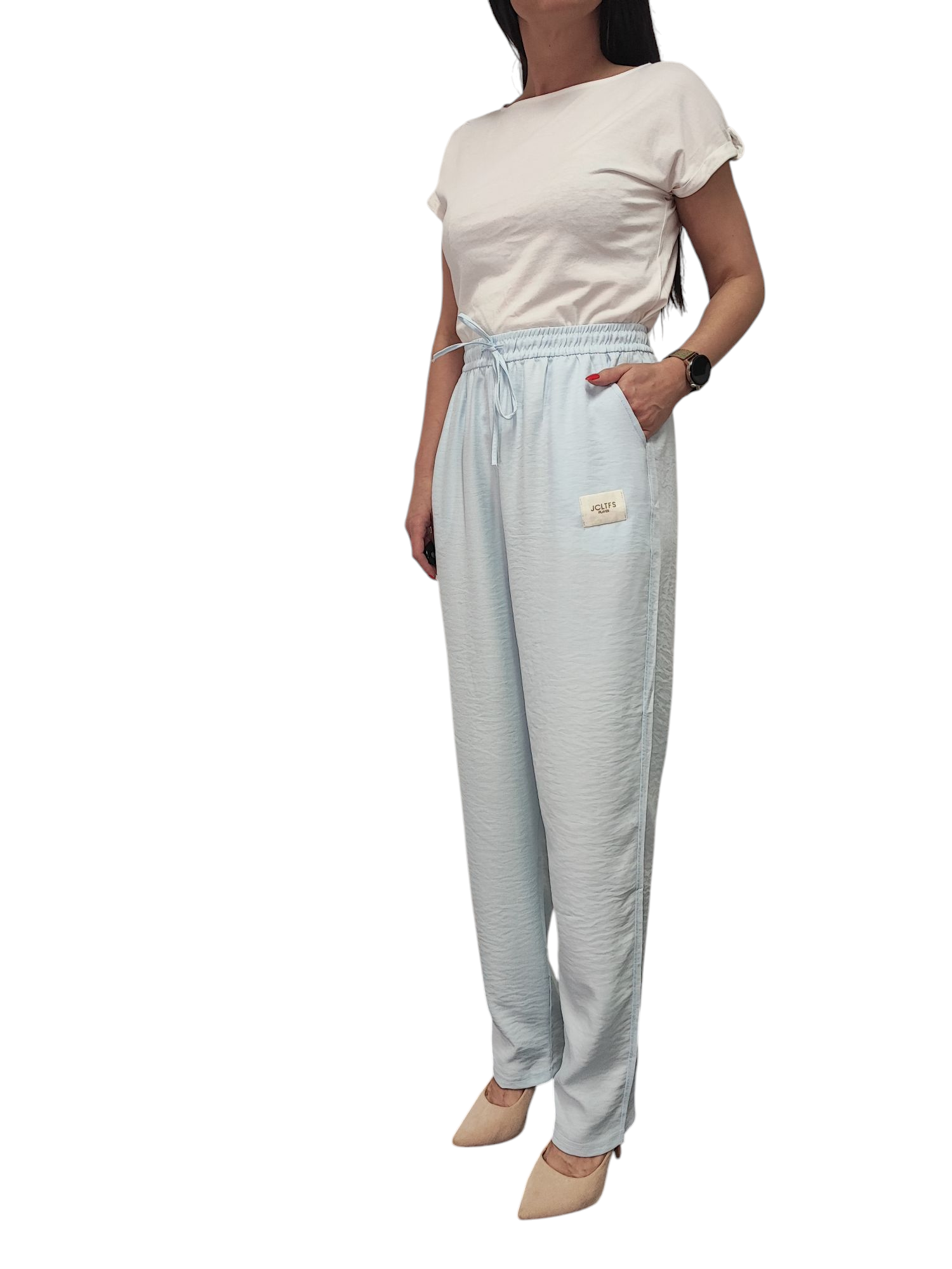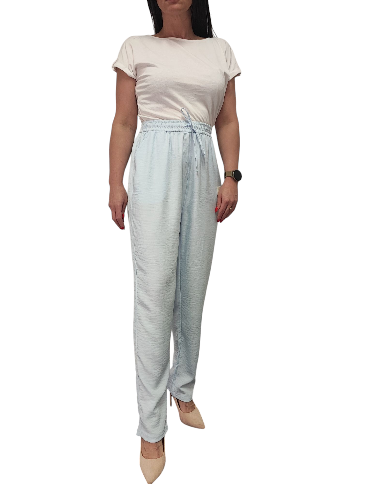 Spodnie Damskie z Materiału Szerokie Wysoki Stan Bawełna Lato Błękitne